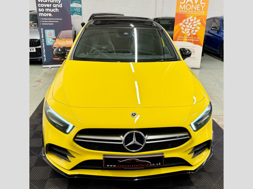JUST ARRIVED AWAITING PREPARATION TOP CARS TELFORD ARE THRILLED TO OFFER FOR SALE THIS AMAZING HIGHLY POPULAR&ATTRACTIVE FULLY LOADED MERCEDES A CLASS AMG A35 2.0 PREMIUM PLUS EDITION FINISHED IN ARGUABLY THE MOST DESIRABLE COLOUR SUN YELLOW WITH OUR IN-HOUSE UPGRADES INCLUDING A45 LOOKS AEROKIT STYLING PLUS £4490 POUNDS WORTH OF FACTORY FITTED EXTRAS, PLEASE CALL TO REGISTER YOUR INTREST OR RESERVE ONLINE £99 DEPOSIT FULLY REFUNDABLE SUBJECT TO VIEW IMMACULATE EXAMPLE, 1 OWNER FROM NEW VERY RARE NOT MANY ON THE MARKET WITH LOW OWNERS LOW MILEAGE FULL SERVICE HISTORY 3 SERVICES IN TOTAL JUST BEEN SERVICED AT MERCEDES MAINDEALER WELL MAINTAINED CREDIT TO ITS PREVIOUS OWNER, PRE DELIVERY INSPECTION INCLUDING NEW MOT PRIOR TO SALE FOR TOTAL PEACE OF MIND, HIGHLY POPULAR VERY STYLISH AND SLEEK, LUXARY AT ITS BEST EVERYTHING YOU CAN ASK FOR, %100 TICKS ALL THE BOXES UPGRADES INCLUDE PANORAMIC ROOF VIRTUAL DASH REV CAM, HEATED SEATS HIGHLY POPULAR AMBIENT LIGHTING AMG SPORT SEATS, 19IN BLACK AMG ALLOYS AND MUCH MORE,HPI CLEAR, 12 MONTH WARRANTY AVAILABLE FROM £499, £0 DEPOSIT LOW RATE FINANCE DRIVE AWAY TODAY FROM £80 P/ WEEK FINANCE SPECIALIST HP/PCP AVAILABLE FROM AS LITHLE AS 7.9%APR , CLICK AND COLLECT OR BUY ONLINE NATIONWIDE DELIVERY T&C APPLY OR DRIVE AWAY IN ONE HOUR, TRULY IN OUTSTANDING CONDITION VIEWING ESSENTIAL, STUNNING EYE CATCHING LOOKS DRIVE AROUND IN PURE COMFORT AND STYLE, ALL OF OUR CARS ARE SPECIALLY SOURCED AND WE STRIVE TO BE THE MOST COMPETITIVE AROUND WHEN COMPARED TO LIKE TO LIKE VEHICLES, COMES COMPLETE WITH 2 KEYS, Truly a Unique Opportunity At Exceptional Value At TopCarsTelford We Pride Ourselves in Only Selling Top Quality Cars That Are Fully inspected HPI Checked with report providing you with complete peace of mind, viewing highly recommended EXTENSIVE WARRANTY PACKAGES,BUILD YOUR OWN FINANCE PACKAGE APPLY DIRECTLY ON OUR WEBSITE, ALL MAJOR DEBIT/CREDIT CARDS ACCEPTED Please call to arrange test-drive indoor showroom, viewing available by appointment for online enquires please visit our website WWW.TOPCARSTELFORD.CO.UK for more info