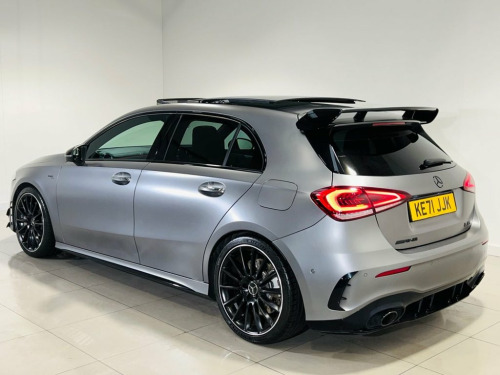 2021 Mercedes-AMG A35 Premium Plus – 35,000 Miles | 1 Former Keeper | Full Service History Registration: KE71 JJK Designo Selenite Grey Magno | Aero Pack | ULEZ Compliant | High Spec A striking and high-performance hatchback, this AMG A35 Premium Plus offers thrilling power, advanced tech, and everyday practicality. Finished in rare Designo Selenite Grey Magno matte paint and packed with factory options, it's a standout example with full spec and provenance. Performance & Driving: 2.0L Turbocharged Petrol Engine – 306 PS 7-Speed AMG SPEEDSHIFT DCT Automatic Transmission 4MATIC All-Wheel Drive System AMG Aero Package for Enhanced Styling & Aerodynamics AMG Dynamic Select Drive Modes Exterior Highlights: Factory Designo Selenite Grey Magno Matte Finish 19-Inch AMG Alloy Wheels Aero Pack with Enhanced Front Splitter & Rear Spoiler Privacy Glass (Rear Windows) LED High Performance Headlights AMG Styling with Gloss Black Accents Interior & Comfort: Premium Plus Package Panoramic Glass Sunroof Heated Front Seats Dual-Zone Climate Control Electric Memory Front Seats Ambient Interior Lighting – Multi-Colour Burmester Surround Sound System Technology & Features: MBUX Touchscreen Infotainment System Satellite Navigation with Live Traffic Apple CarPlay & Android Auto Bluetooth Media & Hands-Free Calls Reversing Camera with Parking Sensors Digital Cockpit with AMG Display Modes Keyless Start & Entry Additional Information: Two-Tone Leather - Titanium Grey Pearl-B, 19in Alloy Wheels - AMG Multi-Spoke - Pa, ABS - Anti-Lock Braking System with BAS , AMG Aerodynamics Package, AMG Bodystyling - AMG Front Apron with F, AMG Night Package, AMG Radiator Grille with Twin Blade Lame, AMG Suspension, ATTENTION Assist, Active Bonnet - Pedestrian Safety Measur, Active Brake ASSIST, Active Lane Keeping Assist, Adaptive Brake Assist with Hold Function, Adaptive Brake Lights, Air Conditioning - THERMOTRONIC Luxury A, Air Vents - Black with Silver Chrome Ele, Airbag - Kneebag for Driver, Airbags - Dual Stage - Driver and Front , Airbags - Head and Sidebags - Driver and, Airbags - Windowbags for Driver and Fron, Alarm System wit