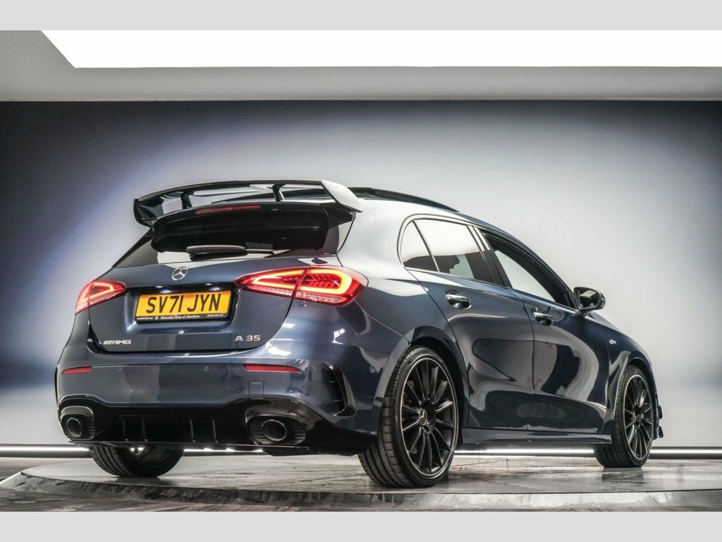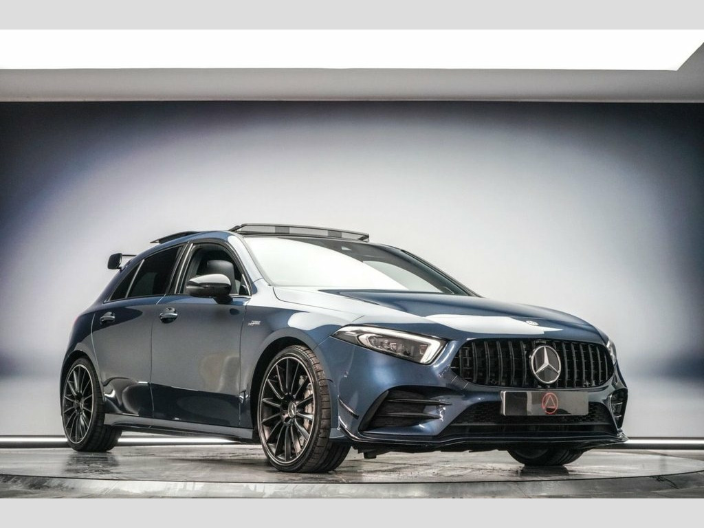 This 2021(71) Mercedes-Benz A35 AMG Premium Plus 4Matic is finished in Denim blue. FEATURES - Panoramic Glass Sunroof | Burmester Premium Sound | Ambient Interior Lighting Pack | Night Pack | Mercedes GT Styling Pack | AMG Aerodynamics Package | 19in Alloy Wheels - AMG Multi-Spoke - Painted in Matt Black with a High-Sheen Finish | Performance Exhaust | Parking Pack | Electric Heated memory Seating. HISTORY - Mercedes-Benz Digital Service History - 26.10.2022 Service at 3813 miles. 09.11.2023 Service A + Brake Fluid at 7841 miles. 07.03.2025 Service at 11892 miles. Denim Blue, Driving Assistance Package, 19in Alloy Wheels - AMG Multi-Spoke - Pa, ABS - Anti-Lock Braking System with BAS , AMG Aerodynamics Package, AMG Bodystyling - AMG Front Apron with F, AMG Night Package, AMG Radiator Grille with Twin Blade Lame, AMG Suspension, ATTENTION Assist, Active Bonnet - Pedestrian Safety Measur, Active Brake ASSIST, Active Lane Keeping Assist, Adaptive Brake Assist with Hold Function, Adaptive Brake Lights, Air Conditioning - THERMOTRONIC Luxury A, Air Vents - Black with Silver Chrome Ele, Airbag - Kneebag for Driver, Airbags - Dual Stage - Driver and Front , Airbags - Head and Sidebags - Driver and, Airbags - Windowbags for Driver and Fron, Alarm System with
