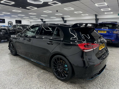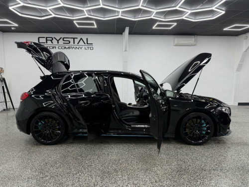 Crystal motor company are delighted to offer for sale this beautifully presented 2022 MERCEDES-BENZ A-CLASS 2.0 A35 AMG Edition (Premium Plus) Hatchback 5dr Petrol 7G-DCT 4MATIC Euro 6 (s/s) (306 ps) finished in BLACK. This car comes with TWO KEYS, ONE FORMER KEEPER, SERVICE HISTORY. This car is equipped with 19" MULTISPOKE ALLOY WHEELS, TIFFANY BLUE BRAKE CALLIPERS, FRONT AND REAR PARKING SENSORS, REAR REVERSING CAMERA, ELECTRIC FOLDING WING MIRRORS, LED MULTIBEAM HEADLIGHTS, OPENING PANORAMIC ROOF, BLACK LEATHER SEATS, ELECTRIC FRONT SEATS, MEMORY FRONT SEATS, HEATED FRONT SEATS, PADDLE SHIFT, CRUISE CONTROL, VIRTUAL COCKPIT, AMBIENT LIGHTING (64 COLOUR CHOICE), DAB RADIO, BLUETOOTH AUDIO, BLUETOOTH PHONE CONNECTION, SATNAV, APPLE CARPLAY, ANDROID AUTO. The car is 100% HPi clear. Part exchange and finance are available and all major credit and debit cards accepted. Crystal Motor Company Ltd Used Programme includes a full PDI inside and out, MOT, mileage certificate and a full inside and out valet. You can request a personalised video with attention given to any specifics you would like a better view of and we will be pleased to assist you. Likewise, we offer our customers a free collection service. Our journey began in 1996 with the aim to deliver the best possible customer experience, you will enjoy a completely hassle free approach, no pressure and great prices, values we stand by to this day. Looking to finance your next car? We have over 30 lenders on board to he 19in Alloy Wheels - AMG Multi-Spoke - Pa, ABS - Anti-Lock Braking System with BAS , Active Bonnet - Pedestrian Safety Measur, Active Brake ASSIST, Active Lane Keeping Assist, Adaptive Brake Assist with Hold Function, Adaptive Brake Lights, Air Conditioning - THERMOTRONIC Luxury A, Air Vents - Black with Silver Chrome Ele, Airbag - Kneebag for Driver, Airbags - Dual Stage - Driver and Front , Airbags - Head and Sidebags - Driver and, Airbags - Windowbags for Driver and Fron, Alarm System with Immobiliser and Interi, AMG Aerodynamics Package, AMG Bodystyling - AMG Front Apron with F, AMG Night Package, AMG Radiator Grille with Twin Blade Lame, AMG Spoiler Lip on the Roof Spoiler, AMG Suspensio