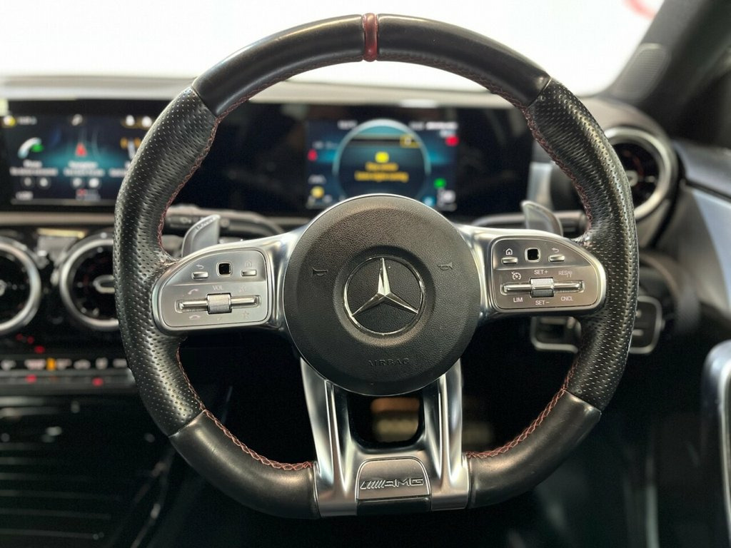 Mercedes-Benz A-Class 2.0 A35 AMG Hatchback 5dr Petrol SpdS DCT 4MATIC Euro 6 (s/s) (306 PS). Supplied with two keys and a Mercedes-Benz main dealer service history, with services recorded at 11,000 and 21,000 miles. This A35 AMG delivers sharp performance, sporty styling and the reassurance of 4MATIC all-wheel drive. The specification includes alloy wheels, privacy glass, satellite navigation, DAB radio, Bluetooth connectivity, reverse camera, cruise control, red seatbelts, AMG flat-bottom steering wheel and air conditioning. A well-presented hot hatch combining everyday usability with AMG power and presence. 18in Alloy Wheels - AMG 5 Twin Spoke Des, ABS - Anti-Lock Braking System with BAS , AMG Bodystyling - Front and Rear Apron, AMG Radiator Grille with Twin Blade Lame, AMG Suspension, ATTENTION Assist, Active Bonnet - Pedestrian Safety Measur, Active Brake ASSIST, Active Lane Keeping Assist, Adaptive Brake Assist with Hold Function, Adaptive Brake Lights, Air Conditioning - THERMOTRONIC Luxury A, Air Vents with Surround and Cruciform No, Airbag - Kneebag for Driver, Airbags - Dual Stage - Driver and Front , Airbags - Windowbags for Driver and Fron, Alarm System with Immobiliser and Interi, Automatic Child Seat Recognition Sensor, Beltline Strips - Chrome, Bodystyling - Side Skirts - Body-Colou