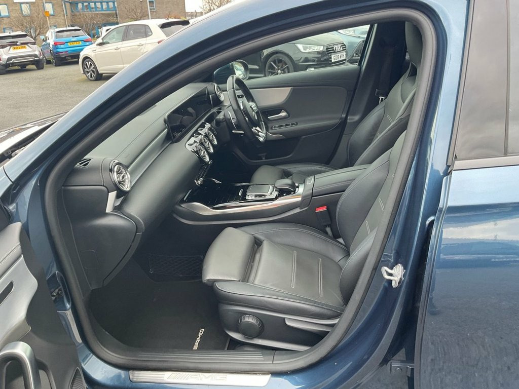 Here at Jim Walton Penrith we offer a wide range of models that have 12 months parts and labour, warranty and at least 6 months MOT. We are delighted to be able to offer for sale this 2019 (19) Mercedes A35 AMG Premium Auto 5 door. , Superbly presented throughout this car comes with alloy wheels, air conditioning, reverse camera, Sat nav,Cruise control, keyless entry and start, full leather, digital dash, heated electric seats plus much more. , We have video presentations of this vehicle too simply drop us a message if you would like it sent over., Finance offers available and part exchanges welcome., Proud to supply quality used cars from our dealership in Penrith, Jim Walton has an exceptional, choice of vehicles at affordable prices – just one of the reasons you should consider buying your next, car from us! Couple that with more than 50 years' experience with an MOT and servicing centre on, site, our reputation for providing excellent customer service is something we're extremely proud of. Denim Blue, Two-Tone Leather - Titanium Grey Pearl-B, 18in Alloy Wheels - AMG 5 Twin Spoke Des, ABS - Anti-Lock Braking System with BAS , AMG Bodystyling - Front and Rear Apron a, AMG Radiator Grille with Twin Blade Lame, AMG Suspension, ATTENTION Assist, Active Bonnet - Pedestrian Safety Measur, Active Brake ASSIST, Active Lane Keeping Assist, Adaptive Brake Assist with Hold Function, Adaptive Brake Lights, Air Conditioning - THERMOTRONIC Luxury A, Air Vents with Surround and Cruciform No, Airbag - Kneebag for Driver, Airbags - Dual Stage - Driver and Front , Airbags - Head and Sidebags - Driver and, Airbags - Windowbags for Driver and Fron, Alarm System with Immobiliser and Interi, Automat
