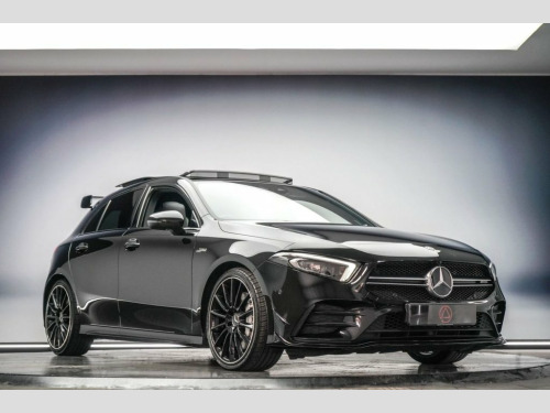 This 2021 Mercedes-Benz A35 AMG Premium Plus is finished in Cosmos Black. FEATURES - Mercedes AMG GT Styling Pack | AMG Aerodynamics Package | Night Pack | Panoramic Glass Sunroof | Burmester Premium Sound System | Interior Ambient Lighting | 19in Alloy Wheels - AMG Multi-Spoke - Painted in Matt Black with a High-Sheen Finish | 12" Display | Electric Heated Memory Seating HISTORY - Mercedes-Benz Digital Service History - 04.08.2022 Service at 15538 miles. 25.07.2023 Service & brake fluid at 29001 miles. 20.06.2024 Service at 36134 miles. Service parts invoice 26.06.2025. Pre delivery inspection & service 18.10.2025 at current mileage. MOT 20.06.2026 Leather - Black, Cosmos Black, Driving Assistance Package, 19in Alloy Wheels - AMG Multi-Spoke - Pa, ABS - Anti-Lock Braking System with BAS , AMG Aerodynamics Package, AMG Bodystyling - Front and Rear Apron, AMG Night Package, AMG Radiator Grille with Twin Blade Lame, AMG Suspension, ATTENTION Assist, Active Bonnet - Pedestrian Safety Measur, Active Brake ASSIST, Active Lane Keeping Assist, Adaptive Brake Assist with Hold Function, Adaptive Brake Lights, Air Conditioning - THERMOTRONIC Luxury A, Air Vents - Black with Silver Chrome Ele, Airbag - Kneebag for Driver, Airbags - Dual Stage - Driver and Front , Airbags - Windowbags for Driver and Fron, Alarm System with Immobiliser and Interi, A
