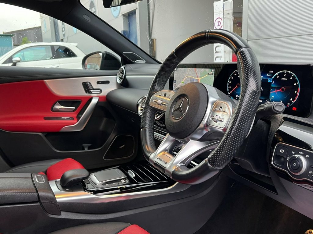 This 2021 Mercedes Benz A Class A35 AMG Premium Plus is a superb example, having had only one owner from new. This four wheel drive model features a powerful 2.0 litre petrol engine, meeting Euro 6 emission standards, and offers impressive acceleration, reaching 0 to 60 miles per hour in just 4.7 seconds. Its AMG trim ensures a sporty and refined driving experience, complemented by a generous boot space for practicality. The performance figures for this A35 AMG clearly set it apart from other vehicles in its class, demonstrating its dynamic capabilities. The combination of its potent engine, four wheel drive system, and rapid acceleration means it offers an engaging drive. Furthermore, the Premium Plus designation indicates a high level of specification, enhancing both comfort and convenience for the driver and passengers. Mountain Grey, Two-Tone Leather - Classic Red-Black, 19in Alloy Wheels - AMG Multi-Spoke - Pa, ABS - Anti-Lock Braking System with BAS , AMG Aerodynamics Package, AMG Bodystyling - Front and Rear Apron, AMG Night Package, AMG Radiator Grille with Twin Blade Lame, AMG Suspension, ATTENTION Assist, Active Bonnet - Pedestrian Safety Measur, Active Brake ASSIST, Active Lane Keeping Assist, Adaptive Brake Assist with Hold Function, Adaptive Brake Lights, Air Conditioning - THERMOTRONIC Luxury A, Air Vents - Black with Silver Chrome Ele, Airbag - Kneebag for Driver, Airbags - Dual Stage - Driver and Front , Airbags - Windowbags for Driver and Fron, Alarm System with Immobiliser and Interi, Automat