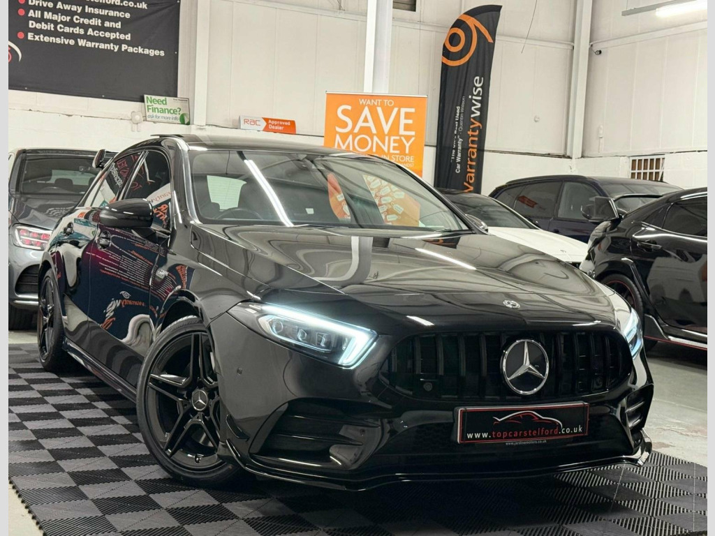 JUST ARRIVED AWAITING PREPARATION TOP CARS TELFORD ARE THRILLED TO OFFER FOR SALE THIS AMAZING MERCEDES A CLASS AMG A35 2.0 4MATIC PREMIUM PLUS EDITION FINISHED IN BEAUTIFUL COSMOS BLACK METALLIC WITH OUR IN-HOUSE UPGRADES INCLUDING A45 LOOKS AEROKIT STYLING PLUS £4490 POUNDS WORTH OF FACTORY FITTED EXTRAS, PLEASE CALL TO REGISTER YOUR INTREST OR RESERVE ONLINE £99 DEPOSIT FULLY REFUNDABLE SUBJECT TO VIEW IMMACULATE EXAMPLE, LOW MILEAGE FULL SERVICE HISTORY 3 SERVICES IN TOTAL LONG MOT, PRE DELIVERY INSPECTION INCLUDING NEW SERVICE PRIOR TO SALE FOR TOTAL PEACE OF MIND, HIGHLY POPULAR VERY STYLISH AND SLEEK, LUXARY AT ITS BEST EVERYTHING YOU CAN ASK FOR, %100 TICKS ALL THE BOXES UPGRADES INCLUDE PANORAMIC ROOF SATNAV REV CAM, HEATED SEATS HIGHLY POPULAR AMBIENT LIGHTING AMG SPORT SEATS, 19IN GLOSS BLACK AMG ALLOYS AND MUCH MORE,HPI CLEAR, 12 MONTH WARRANTY AVAILABLE FROM £399, £0 DEPOSIT LOW RATE FINANCE BUY NOW PAY LATER OR DRIVE AWAY TODAY FROM £70 P/ WEEK FINANCE SPECIALIST HP/PCP AVAILABLE FROM AS LITHLE AS 8.9%APR , CLICK AND COLLECT OR BUY ONLINE NATIONWIDE DELIVERY T&C APPLY OR DRIVE AWAY IN ONE HOUR, TRULY IN OUTSTANDING CONDITION WELL MAINTAINED CREDIT TO ITS PREVIOUS OWNER VIEWING ESSENTIAL, STUNNING EYE CATCHING LOOKS HIGHLY POPULAR AND ATTRACTIVE, DRIVE AROUND IN PURE COMFORT AND STYLE, NOT TO BE MISSED, ALL OF OUR CARS ARE SPECIALLY SOURCED AND WE STRIVE TO BE THE MOST COMPETITIVE AROUND WHEN COMPARED TO LIKE TO LIKE VEHICLES, COMES COMPLETE WITH 2 KEYS, Truly a Unique Opportunity At Exceptional Value At TopCarsTelford We Pride Ourselves in Only Selling Top Quality Cars That Are Fully inspected HPI Checked with report providing you with complete peace of mind, viewing highly recommended you will not be disappointed, EXTENSIVE WARRANTY PACKAGES,BUILD YOUR OWN FINANCE PACKAGE APPLY DIRECTLY ON OUR WEBSITE, ALL MAJOR DEBIT/CREDIT CARDS ACCEPTED Please call to arrange test-drive indoor showroom, viewing available by appointment for any online enquires including our 5 Star verified customer reviews please visit our website WWW.TOPCARSTELFORD.CO.UK