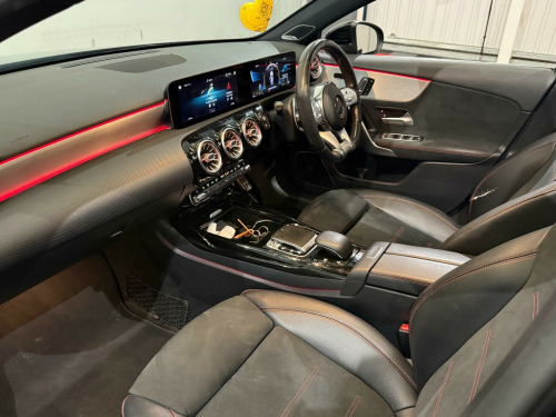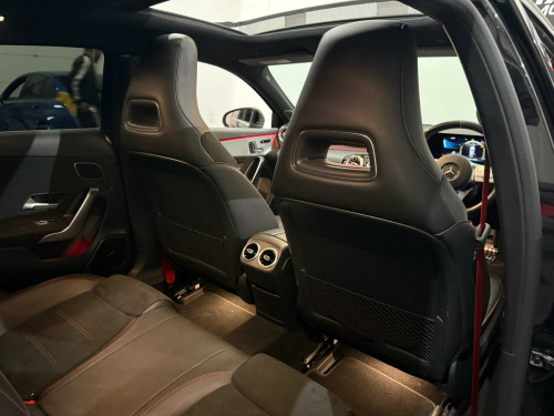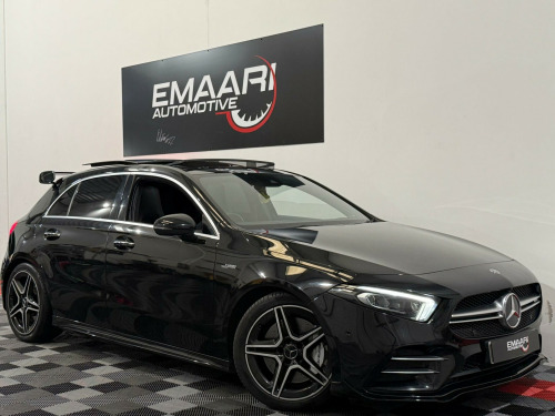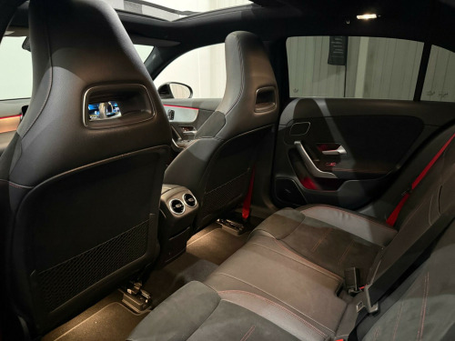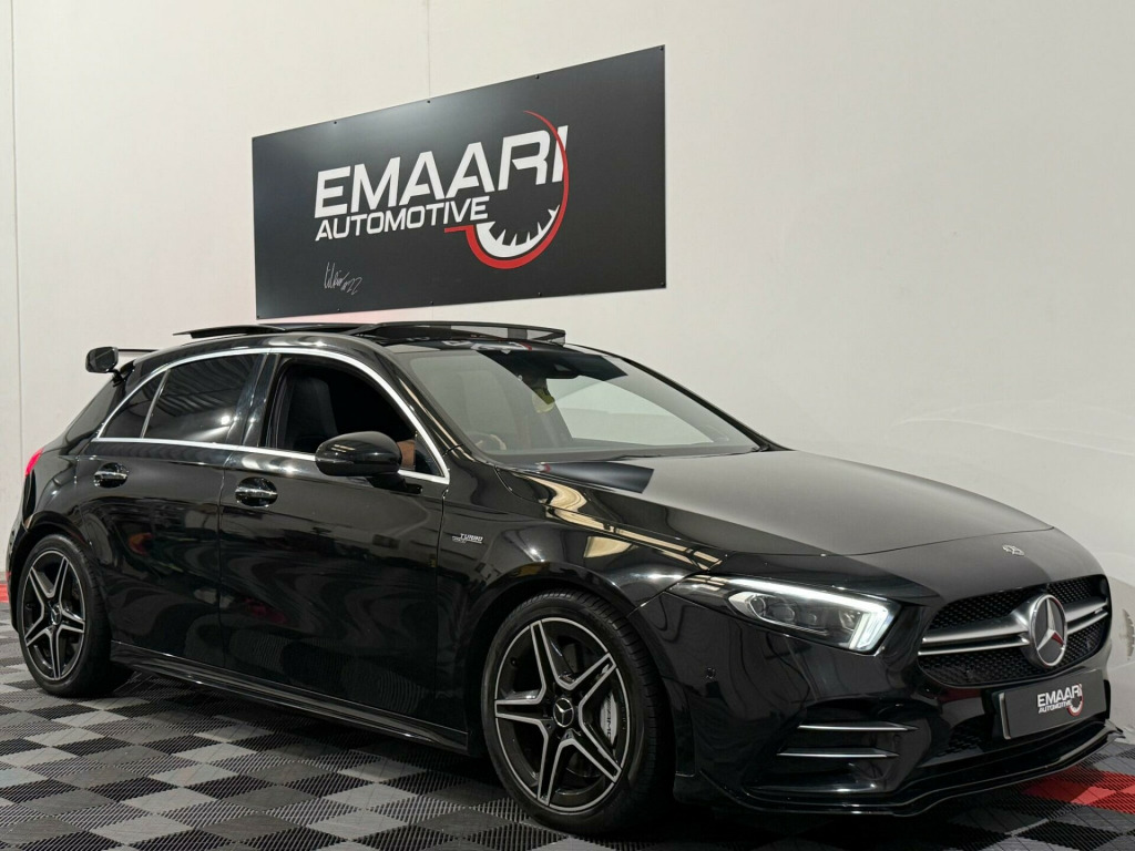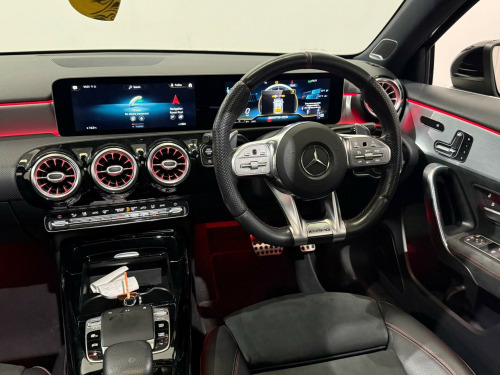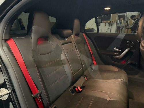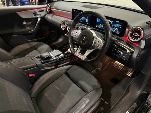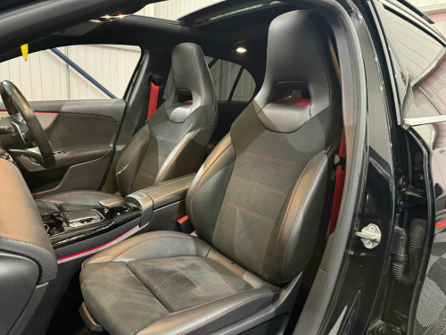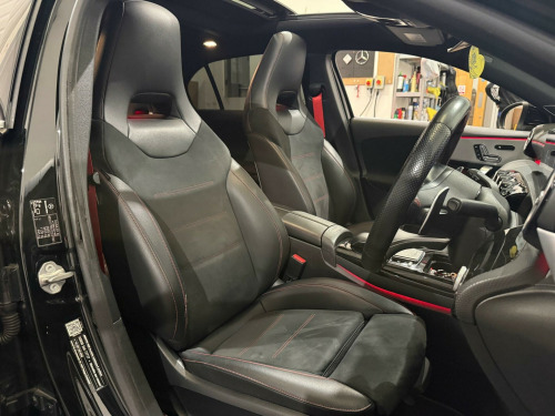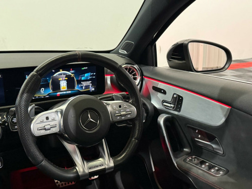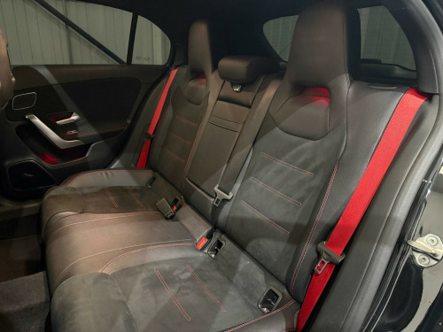 This 2019 Mercedes Benz A Class A35 AMG Premium Plus is a striking example of performance and luxury.  Finished in the AMG trim, this four wheel drive model boasts a potent 2.0 litre petrol engine, compliant with Euro 6 emissions standards.  Its impressive acceleration is evident with a 0-62mph time of just 4.7 seconds.  The Premium Plus package enhances the driving experience significantly, featuring LED High Performance Headlights with integrated LED Daytime Running Lights, a panoramic opening sunroof, and heated front seats with memory function for ultimate comfort.  Convenience is further assured with Keyless Entry, Parking Assistance including front and rear sensors, and a 180 degree reversing camera with parking guidelines.  Stay connected with the dual Bluetooth interface, offering two USB Type C ports.The spacious boot offers ample room for all your luggage, making it a practical choice for everyday use and longer journeys alike. The Headlamp Assist automatically activates the headlights, ensuring optimal visibility in varying conditions. These carefully selected features, from the advanced lighting systems to the comprehensive parking aids and the powerful yet efficient engine, demonstrate how this Mercedes Benz A Class A35 AMG Premium Plus offers a superior driving experience compared to other vehicles in its class. in alloy wheels - amg 5 twin spoke design - bi-colour finish, abs - anti-lock braking system with bas - brake assist, amg bodystyling - front and rear apron and side skirts, amg radiator grille with twin blade lamella, amg suspension, attention assist, active bonnet - pedestrian safety measure which detects an impact and raises bonnet by 65mm, active brake assist, active lane keeping assist, adaptive brake assist with hold function and hill start assist, adaptive brake lights, air conditioning - thermotronic luxury automatic climate control - two-zone with display, air vents with surround and cruciform nozzle in silver chrome, airbag - kneebag for driver, airbags - dual stage - driver and front passenger, airbags - head and sidebags - driver and front passenger, airbags - windowbags for driver and front passenger, alarm system with immobiliser and interior protection - thatcham category 1, automatic child seat recognition sensor, beltline strips - chrome, bodystyling - side skirts - body-coloured, brake calipers - mercedes-benz lettering on front, brake-pad wear warning indicator, brushed stainless steel sports pedals with rubber studs, bumpers - body coloured, centre armrest - front with stowage, childproof locks - manually operated for rear doors and electrically operated for rear power windows, crash-responsive emergency lighting, cruise control with limiter, cup holder - double - front, dab digital radio tuner, digital instrument cluster with three amg display styles and amg menu, direct steer speed-sensitive power steering, door handles - body coloured with a chrome accent, door mirrors - electrically adjustable and heated with integrated led indicators, dual bluetooth interface - 2 usb ports - type c, dynamic select with a choice of driving modes - comfort-sport-sport plus-slippery and individual, esp - electronic stability programme with asr - acceleration skid control, esp curve dynamic assist, electric parking brake, electric windows - 4, exhaust system - two round tailpipes attached to the rear apron, first aid kit and warning triangle, floor mats - red stitched edging - amg lettering, footwell lights in front, front door sills with mercedes-benz lettering, glass - rear windscreen - heated with timer control, glove compartment - illuminated, hard-disk navigation, headlamp assist - automatic headlamp activation, hey mercedes - voice activation, high level third brake light - led, isofix and top-tether child seat fixing points in rear - two outer seats, instrument cluster - fluid level warning indicator for fuel - oil - coolant and washer fluid, instrument cluster - outside temperature display, instrument cluster - service indicator assyst, instrument cluster - trip computer in multi-function display with current fuel consumption indicator, interior lighting - cup holder - stowage compartment lighting, interior lighting - handle recess - closing handle - front-rear-left-right, interior lighting - oddments tray, interior lighting - reading lamp in rear in support plate - rear-left-right, interior lighting - reading lamps - front-left-right - console downlighter, interior lighting - signal exit lamp - front-left-right, interior lighting - signal and ambient lamp, interior lighting - touchpad, interior lighting - vanity lights - front-left-right, keyless-go starting function, led high performance headlamps with integrated led daytime running lights, led tail lights, light failure indicator, live traffic information, luggage compartment cover, mbux multimedia system, mercedes me connect - standard services, pre-installation for mercedes-benz link, premium plus package, radio aerial roof spoiler, rain-sensing windscreen wipers with two sensitivity settings, rear fog light, rear windscreen wiper, remote central locking and crash sensor with emergency opening function, reversing camera with parking guidelines - 180 degree view, roof lining - black, seat belts - rear three-point - 3, seat belts - red, seat belts reminder - front and rear, seat comfort package, seat occupancy sensor - front passenger seat, seats - front cushion length adjustment, seats - front manually adjustable, seats - rear seat backrests - split folding 1-3 - 2-3, silver chrome trims on the louvres in the outer air intake, speed limit assist, spoiler lip on the roof, sports seats with integrated head restraints, steering column - manually adjustable for height and reach, steering wheel - amg performance black nappa leather, tirefit tyre-sealant kit, touchpad on centre console, trim - light longitudinal-grain aluminium, tyre pressure monitoring system, wider wheel arches for amg wheels