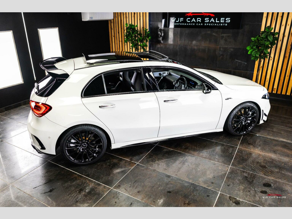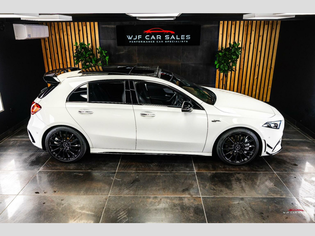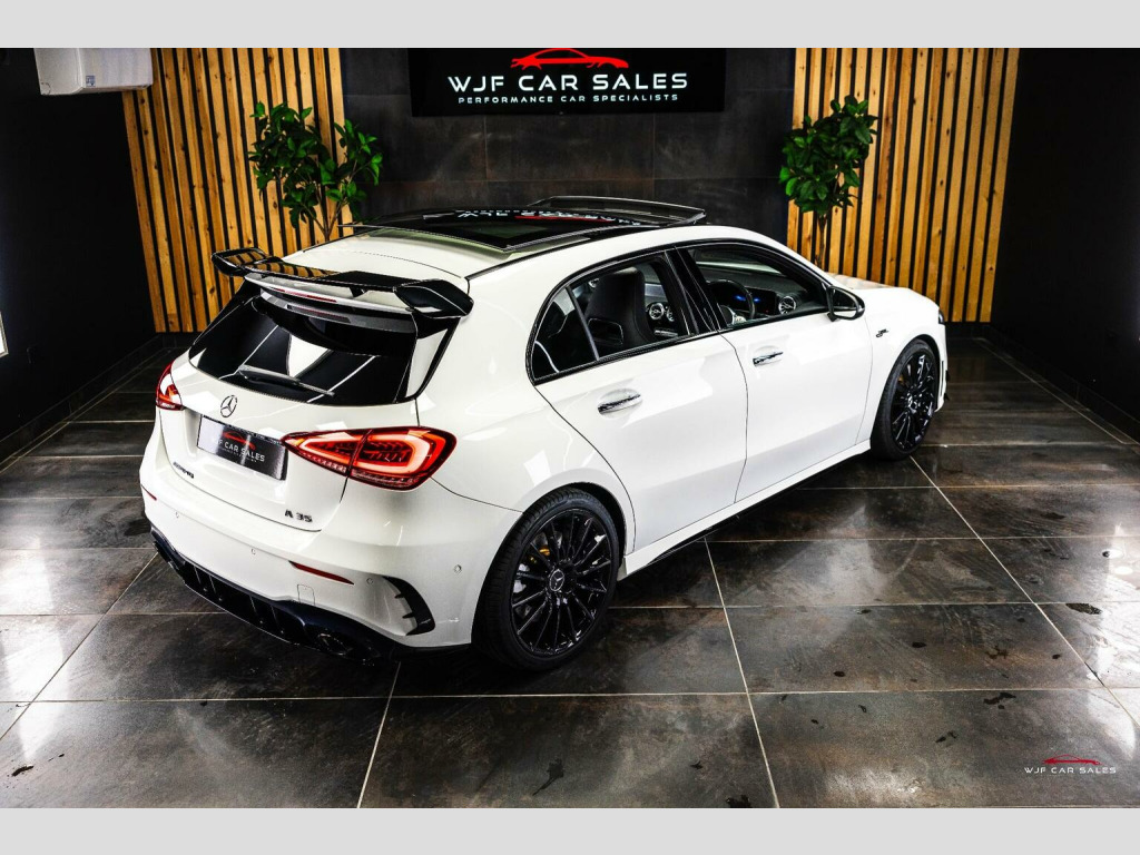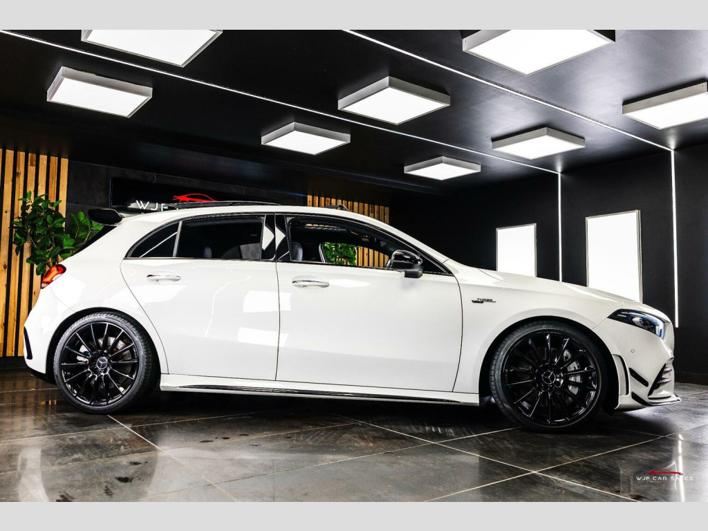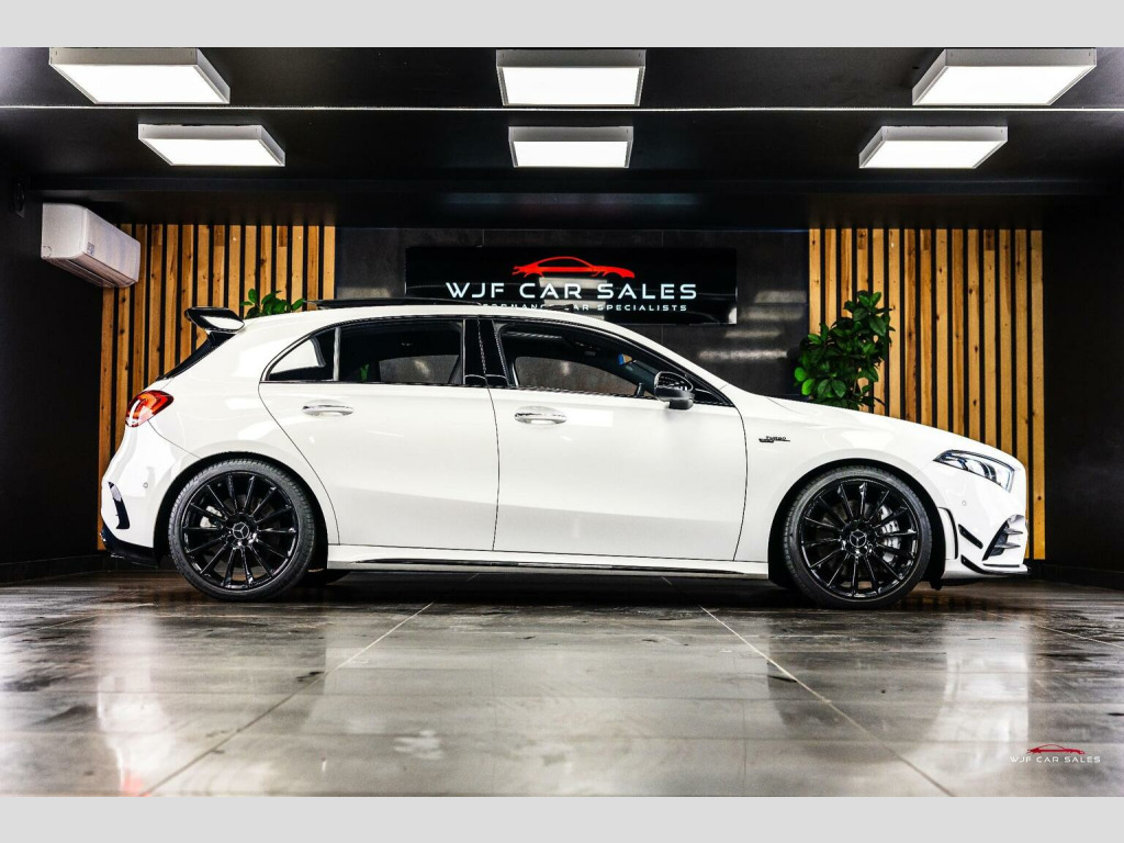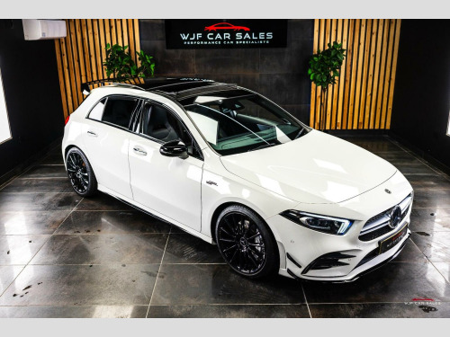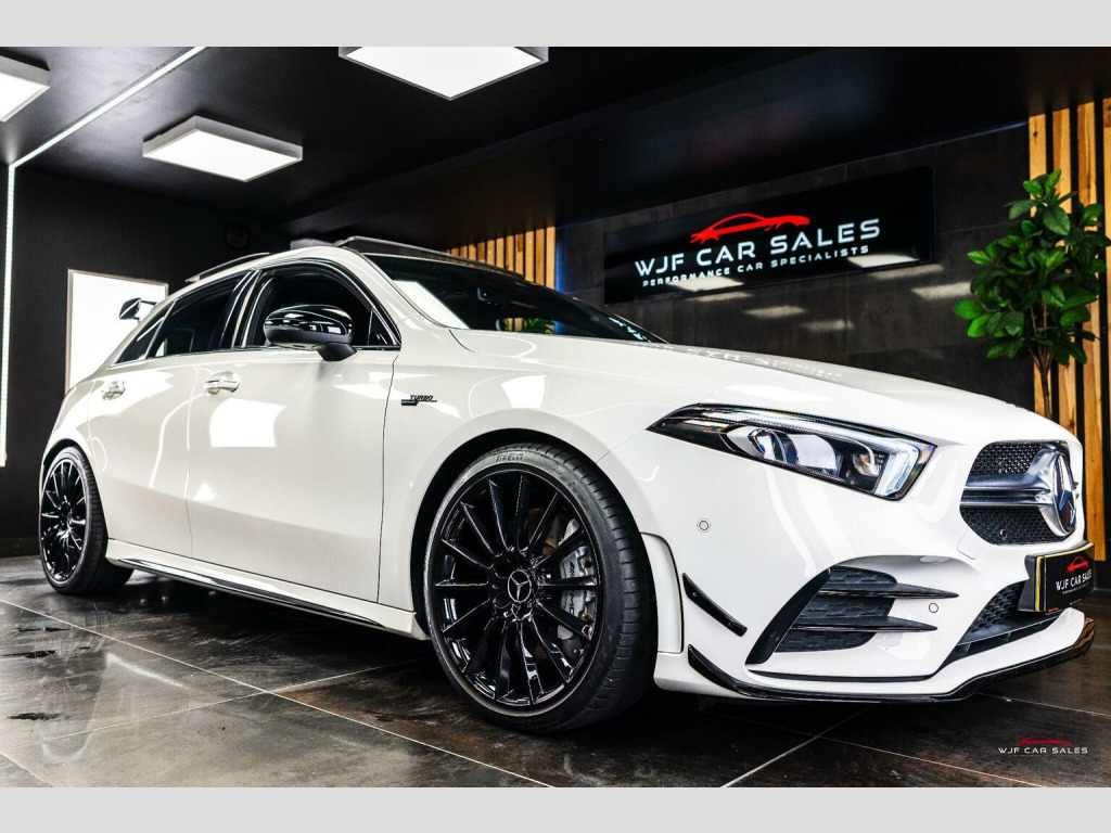 PLEASE SEE WEBSITE WWW.WJFCARSALES.CO.UK, WJF Car Sales Proudly Presents this March 2019 Registered, Mercedes Benz A35 AMG Premium Plus, Finished in Digital White Pearl Paint, Covering 29741 Miles, Full Service History, Just Had B Service, Advisory Free MOT, Supplied with 2 Keys, 6 Months Warranty and 6 Months Breakdown Cover - Extended Warranty and Service Plans Available. SPECIFICATION:, 19 Inch Alloys, Adaptive LED Headlights with Auto High Beam, Aero Pack, Ambient Lighting Package, Apple CarPlay, Bluetooth, Burmester Audio, Climate Control, Cruise Control, DAB Radio, Driving Modes, Electric Adjustable Front Seats with Memory, Electric Folding Mirrors, Gloss Black Trim, Heated Front Seats, ISOFIX, Keyless Entry, Keyless Start, Lane Departure Warning, Multi Function Steering Wheel, Memory Pack, Night Package, Panoramic Roof, Parking Sensors, Privacy Glass, Reversing Camera, Satellite Navigation, Style Pack, TPMS, USB C Ports. SERVICE HISTORY:, 1st Service: 08/08/2020 @ 6768 Miles - Service A - Mercedes, 2nd Service: 21/07/2021 @ 11888 Miles - Service B - Mercedes, 3rd Service: 11/08/2022 @ 15690 Miles - Service B - Mercedes, 4th Service: 18/08/2023 @ 19761 Miles - Service A - Mercedes , 5th Service: 16/01/2025 @ 23332 Miles - Service B - Mercedes, 6th Service: 17/11/2025 @ 29740 Miles - Service B - WJF Performance Automotive - On Digital Record , FINANCE:, Funding Options Available From 9.9% APR, **Viewings By Appointment ONLY**, Home Delivery Available on our Transporter , Finance Available, Part Exchange Welcome, Reserve for only £200 (refundable), Youtube Video we recommend to watch on your smart TV in 4K, We accept card payments up to £1,000.00, for larger payments it is BACS(bank transfer) so please bring anything you may need to access your online banking on the day including secure keys, card readers etc. We will not release cars without cleared funds, We accept cash payments up to £8000 which are subject to a 1% banking fee. Please note a £350 admin fee is applicable for purchases funded by third party finance lenders.