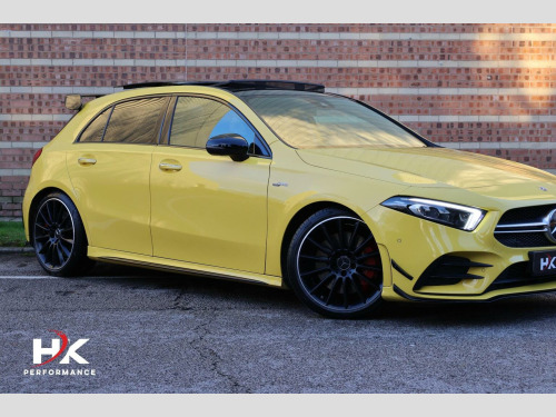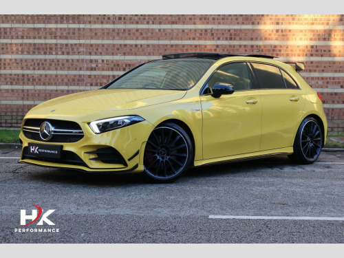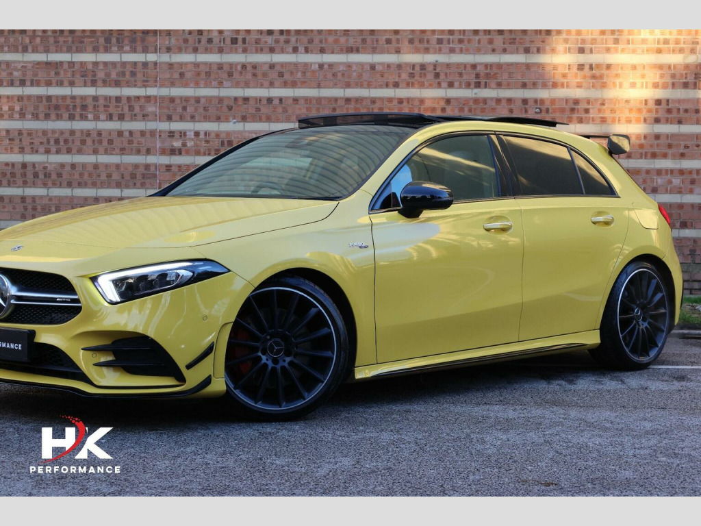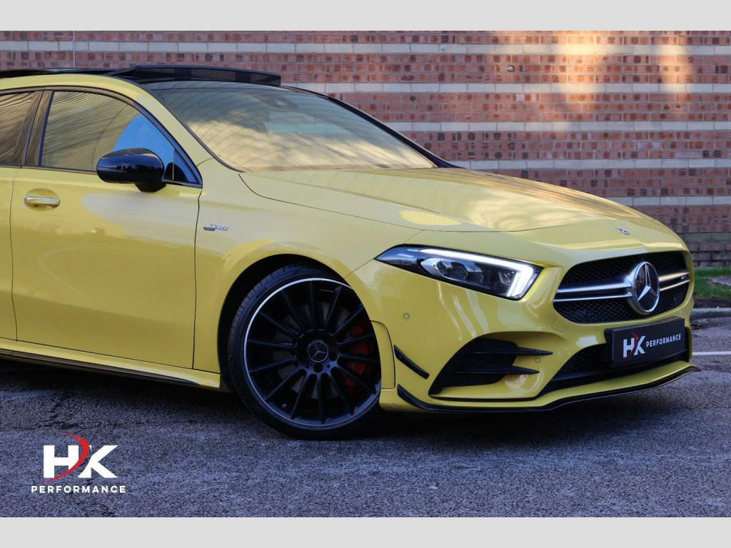 2019 (69) MERCEDES A35 AMG PREMIUM PLUS FINISHED OFF IN SUN YELLOW, 1 FORMER KEEPER, ALL SERVICING CARRIED OUT AT MERCEDES INCLUDING RECENT MAJOR SERVICE (GEARBOX, DIFF, SPARK PLUGS), OPTIONAL EXTRAS INCLUDE; ELECTRIC SLIDING PANORAMIC SUNROOF, BURMESTER PREMIUM SOUND SYSTEM, GENUINE AMG AERO PACK, TWO TONE RED AND BLACK LEATHER, ELECTRIC SEATS WITH MEMORY FUNCTION, HEATED SEATS, REVERSE CAMERA, LANE KEEP ASSIST, KEYLESS GO & ENTRY, AMG NIGHT PACK, AMBIENT LIGHTING PACK, MBUX MULTIMEDIA, APPLE CAR PLAY, PARKING PACK, GENUINE 19 MULTISPOKE WHEELS, RES DELETE, THROUGH LOADING FEATURE, ADMIN FEE APPLIES £199