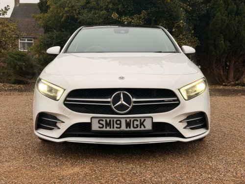 This 2019 Mercedes-Benz A Class A35 AMG boasts exceptionally low mileage for its age, having covered just 35,062 miles. This premium hatchback features a powerful 2.0L petrol engine paired with a four wheel drive system, ensuring dynamic performance and excellent traction. As a Euro 6 compliant vehicle, it meets stringent emission standards. The AMG trim and Premium Plus package elevate the driving experience with a host of desirable features. Experience superior comfort and convenience with the THERMOTRONIC luxury automatic climate control, offering two zone climate control with a clear display. Stay connected and entertained with the dual Bluetooth interface and two USB Type C ports. Maneuvering is made easier with the 180 degree reversing camera and parking assistance sensors. The Premium Plus package further enhances this A35 AMG with a branded sound system, LED high performance headlamps with integrated daytime running lights, keyless entry, a panoramic opening sunroof, and heated front seats with memory function. Its impressive acceleration, reaching 0-62mph in just 4.7 seconds, sets it apart from many similar vehicles, while the generous boot space provides practicality for everyday use. FULL SERVICE HISTORY:, 02/07/2020 - 9084 miles, 23/07/2021 - 14523 miles, 12/07/2022 - 19307 miles, 19/07/2023 - 23060 miles, 24/07/2024 - 26538 miles, 01/08/2025 - 32487 miles, 23/12/2025 - 34575 miles, Richtoy has been selling cars for over 20 years working to exceptionally high standards. We review our car prices daily to ensure our customers are always getting the best value when purchasing from Richtoy. All part exchanges are welcome. All our cars are fully service checked by our Main Dealer Trained Technicians, and will have 12 months MOT. In addition, a Data Check (HPI) as standard. All cars come with a minimum of 3 months Warranty. We offer great finance packages and should you wish to discuss after hours, please call Richard on 07768 061748.