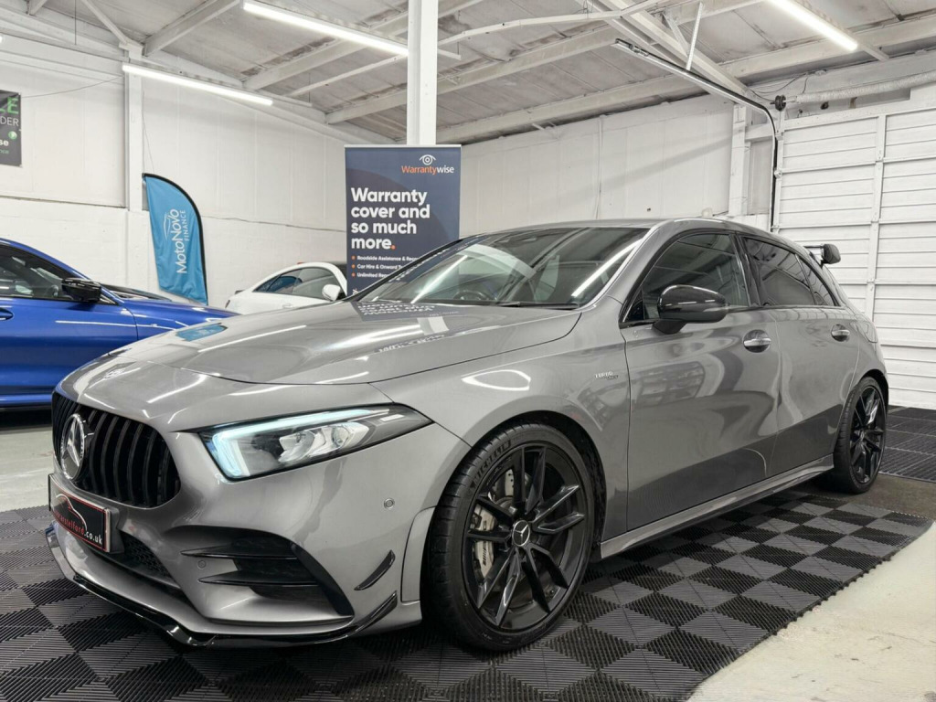 JUST ARRIVED AWAITING PREPARATION TOP CARS TELFORD ARE THRILLED TO OFFER FOR SALE THIS AMAZING MERCEDES A CLASS AMG A35 2.0 4MATIC PREMIUM EDITION FINISHED IN BEAUTIFUL MOUNTAIN GREY, MORE A35 AVAILABLE ONLINE,IN-HOUSE UPGRADES INCLUDING A45 LOOKS AEROKIT STYLING PLUS HUGE FACTORY FITTED EXTRAS, PLEASE CALL TO REGISTER YOUR INTREST OR RESERVE ONLINE £99 DEPOSIT FULLY REFUNDABLE SUBJECT TO VIEW IMMACULATE EXAMPLE, LOW MILEAGE, SERVICE HISTORY 3 SERVICES IN TOTAL LONG MOT, PRE DELIVERY INSPECTION INCLUDING NEW SERVICE PRIOR TO SALE FOR TOTAL PEACE OF MIND, HIGHLY POPULAR VERY STYLISH AND SLEEK, LUXARY AT ITS BEST EVERYTHING YOU CAN ASK FOR, %100 TICKS ALL THE BOXES UPGRADES INCLUDE A45s Styling SATNAV REV CAM, HEATED SEATS HIGHLY POPULAR AMBIENT LIGHTING AMG FULL LEATHER SPORT SEATS, UPGRADED 19IN GLOSS BLACK AMG ALLOYS BURMESTER SOUND SYSTEM AND MUCH MORE,HPI CLEAR, 12 MONTH WARRANTY AVAILABLE FROM £399, £0 DEPOSIT LOW RATE FINANCE BUY NOW PAY LATER OR DRIVE AWAY TODAY FROM £70 P/ WEEK FINANCE SPECIALIST HP/PCP AVAILABLE FROM AS LITHLE AS 7.9%APR , CLICK AND COLLECT OR BUY ONLINE NATIONWIDE DELIVERY T&C APPLY OR DRIVE AWAY IN ONE HOUR, TRULY IN OUTSTANDING CONDITION WELL MAINTAINED CREDIT TO ITS PREVIOUS OWNER VIEWING ESSENTIAL, STUNNING EYE CATCHING LOOKS HIGHLY POPULAR AND ATTRACTIVE, DRIVE AROUND IN PURE COMFORT AND STYLE, ALL OF OUR CARS ARE SPECIALLY SOURCED AND WE STRIVE TO BE THE MOST COMPETITIVE AROUND WHEN COMPARED TO LIKE TO LIKE VEHICLES, COMES COMPLETE WITH 2 KEYS, Truly a Unique Opportunity At Exceptional Value At TopCarsTelford We Pride Ourselves in Only Selling Top Quality Cars That Are Fully inspected HPI Checked with report providing you with complete peace of mind, viewing highly recommended you will not be disappointed, EXTENSIVE WARRANTY PACKAGES,BUILD YOUR OWN FINANCE PACKAGE APPLY DIRECTLY ON OUR WEBSITE, ALL MAJOR DEBIT/CREDIT CARDS ACCEPTED Please call to arrange test-drive indoor showroom, viewing available by appointment for any online enquires including our 5 Star verified customer reviews please visit our website WWW.TOPCARSTELFORD.CO.UK