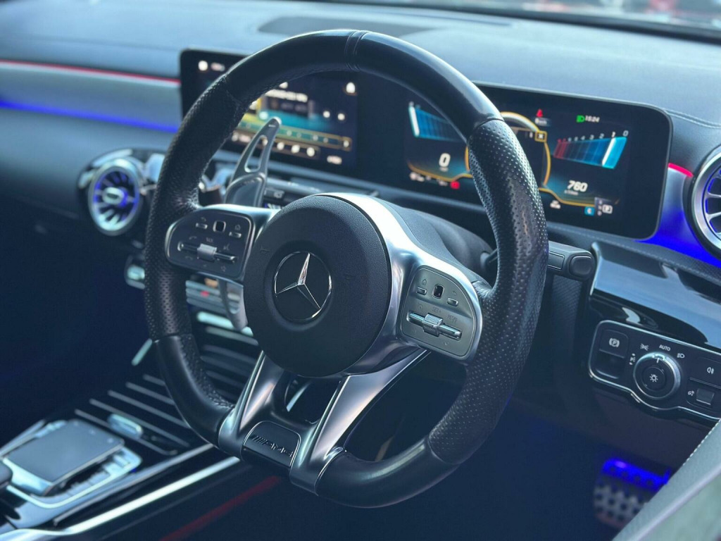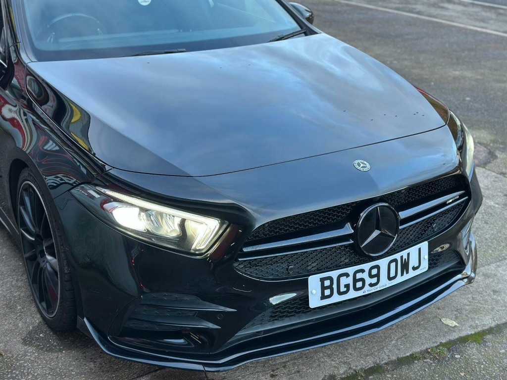 2 KEYS! FULL HISTORY! 3 OWNERS! NEW SERVICE AND MOT AT POS This 2019 Mercedes Benz A Class A35 AMG (Premium) is a Euro 6 compliant vehicle, offering an impressive 0-62mph acceleration in just 4.7 seconds. Powered by a 2.0L petrol engine and featuring four wheel drive, this AMG trim model comes equipped with the Premium Package, which includes keyless entry, front and rear parking assistance, and heated seats for added comfort. Further enhancing its appeal, this A Class boasts a reversing camera with 180 degree parking guidelines, automatic headlamp activation, and LED high performance headlamps with integrated daytime running lights. Connectivity is made simple with a dual Bluetooth interface offering two USB Type C ports. The spacious boot provides ample room for your luggage, making this Mercedes Benz A Class a practical yet exhilarating choice. All our vehicles come with new oil service, new mot, 3 months engine and gearbox in house warranty. Third party extended warranty is avaliable to purchase through us. , Driving licenses are required for any test drives.