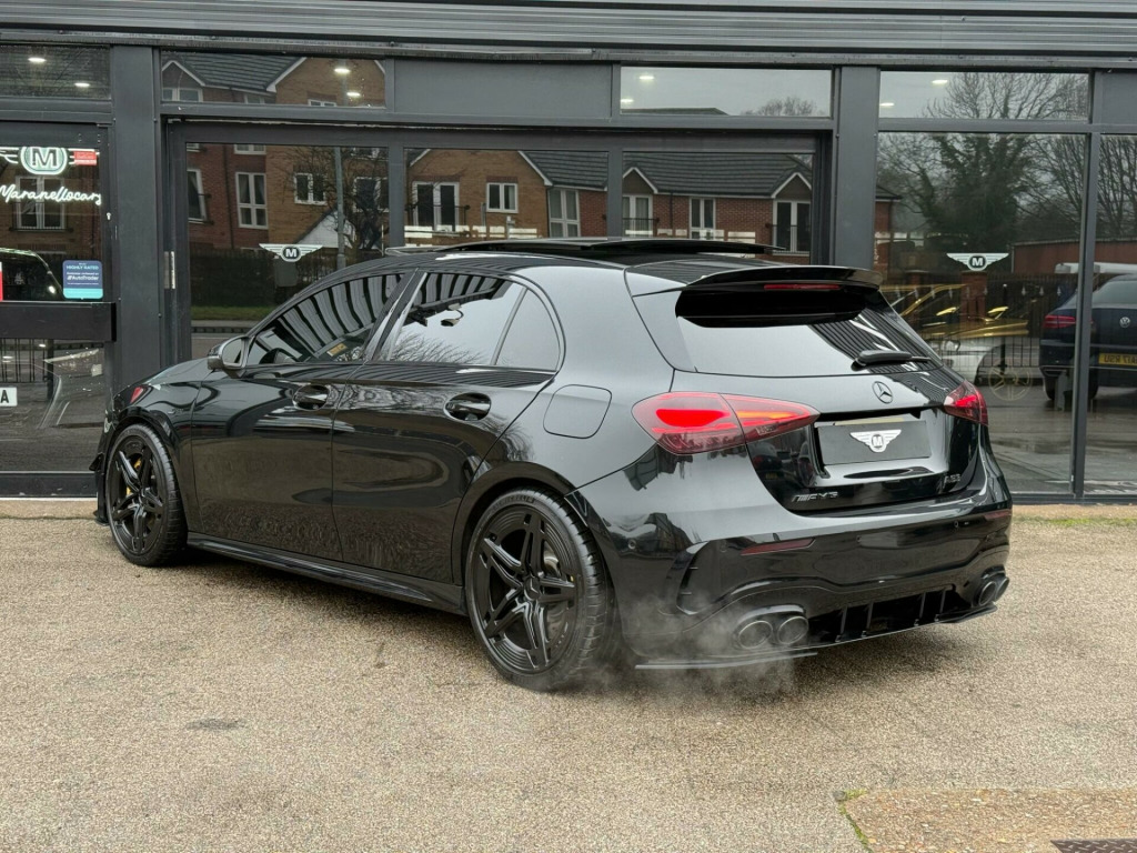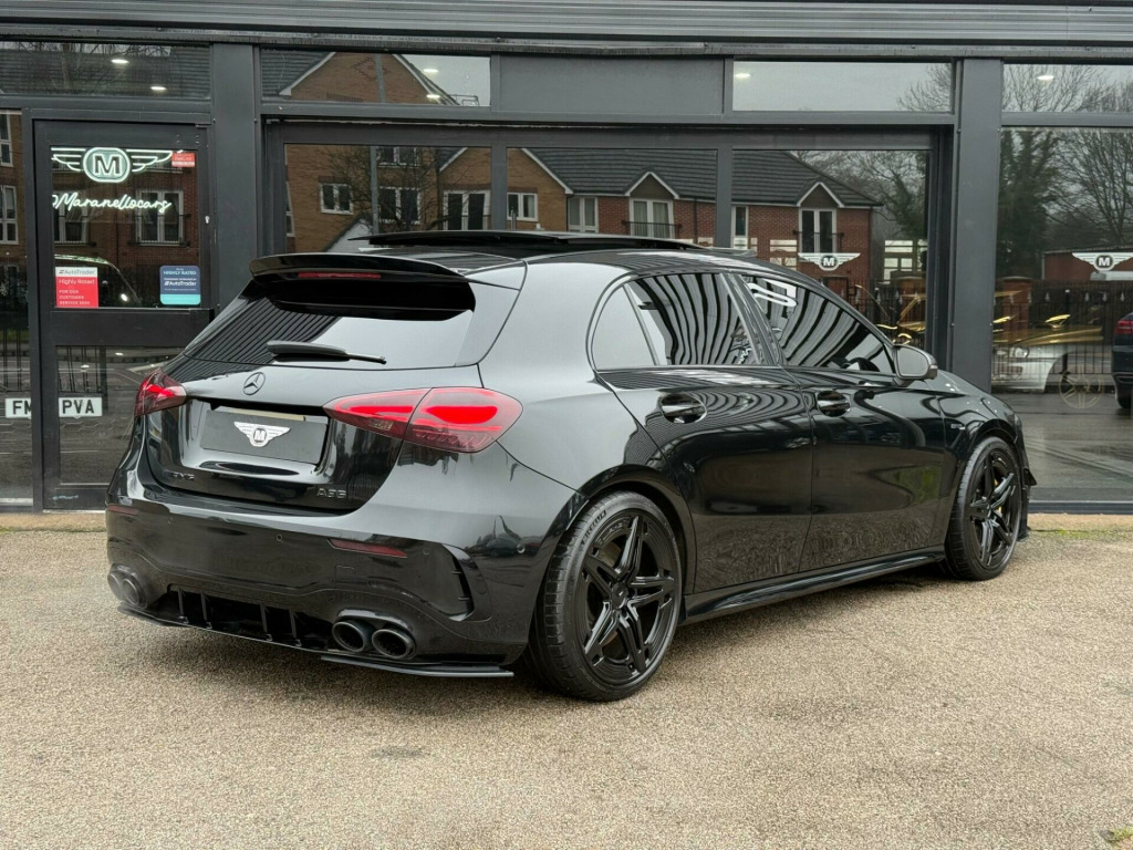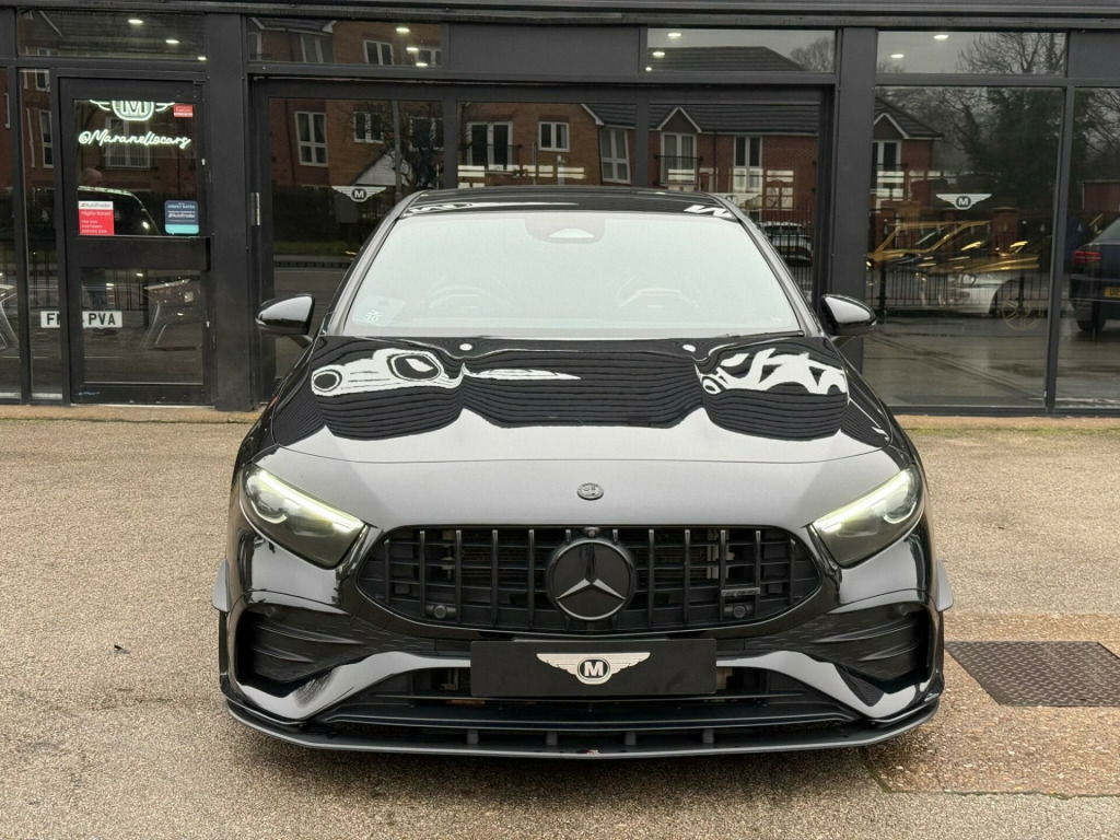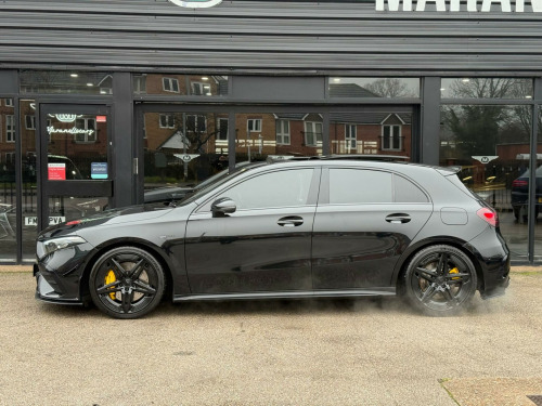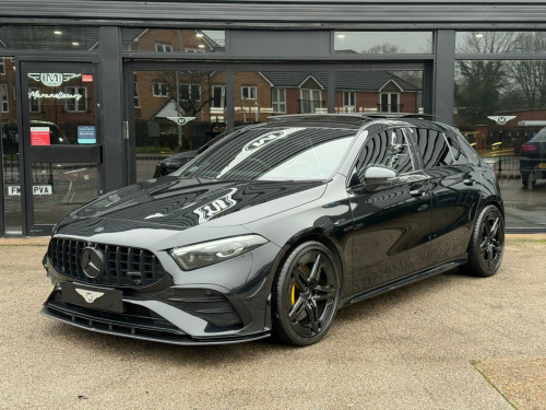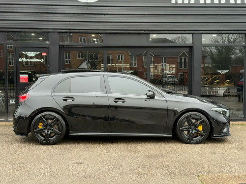 2 Keys, Full Service History, Just Had Major Service. Heads up Display, Heated Seats, Multi Function Steering Wheel & Full Digital Dash, A45 Sports Bucket Seats with matching Calipers, Milltek Exhaust System, Upgraded Alloy Wheels. This 2023 Mercedes Benz A Class A35h AMG Premium Plus offers an exhilarating driving experience with its powerful 2.0L Petrol Hybrid engine and four wheel drive system. As a Euro 6 compliant vehicle, it combines performance with efficiency. This AMG trim model comes equipped with advanced MULTIBEAM LED Headlamps featuring Adaptive Highbeam Assist, ensuring optimal visibility. Inside, you'll find the convenience of Wireless Charging, Heated Front Seats for comfort, and THERMOTRONIC Automatic Climate Control for a personalised cabin environment. The Parking Package, including a 360 Degree Camera, makes manoeuvring effortless.Experience the thrill of rapid acceleration, reaching 0-62mph in just 4.7 seconds, a testament to the performance engineered into this vehicle. This impressive speed, combined with the large boot space, demonstrates how this Mercedes Benz A Class offers a superior blend of dynamic capability and everyday practicality compared to other vehicles in its class. in alloy wheels - amg 5-twin-spoke design - aerodynamically optimised - painted matt black with a high-sheen rim flange, abs - anti-lock braking system with bas - brake assist, amg aerodynamics package, amg bodystyling - amg front apron with front splitter and amg rear apron with visible tailpipe trim elements, amg illuminated door sills with amg lettering and with exchangable cover, amg night package, amg spoiler lip on the roof spoiler, attention assist, active bonnet - pedestrian safety measure which detects an impact and raises bonnet by 65mm, active brake assist, active lane keeping assist, adaptive brake assist with hold function and hill start assist, adaptive brake lights, air conditioning - air vents black with surround in silver chrome, air conditioning - thermotronic automatic climate control - two-zone with display, airbag - kneebag for driver, airbags - dual stage - driver and front passenger, airbags - windowbags for driver and front passenger, alarm system with immobiliser and interior protection - thatcham category 1, automatic child seat recognition sensor, beltline strips - high gloss black, blind spot assist, bodystyling - side skirts - body-coloured, bonnet with power domes, brake calipers with amg lettering on front, brake-pad wear warning indicator, brushed stainless steel sports pedals with rubber studs, bumpers - body coloured, car wash mode, centre armrest - front with stowage, childproof locks - manually operated for rear doors and electrically operated for rear power windows, crash-responsive emergency lighting, cruise control with limiter, dab digital radio tuner, direct steer speed-sensitive steering, door handles - body coloured, door mirrors - electrically adjustable and heated with integrated led indicators, driving modes - dynamic select with drive programs - slippery - comfort - sport - sport plus - individual, dual bluetooth interfaces, esp - electronic stability programme with asr - acceleration skid control, esp curve dynamic assist, electric parking brake, electric windows - 4, exhaust system - amg sports exhaust system with two round tailpipes attached to the rear apron, exit warning assist, first aid kit and warning triangle, floor mats - with stitched edging and amg lettering, front apron with flics as air deflector elements on the outer air intakes, front splitter and trim elements on the louvres in the outer air inlets, front wings with turbo 4matic lettering, guard 360 vehicle protection with anti-theft alarm system, glass - rear windscreen - heated with timer control, hard-disk navigation, head-up display, headlamp assist - automatic headlamp activation, heated front seats, hey mercedes - voice activation, high level third brake light - led, isofix and top-tether child seat fixing points in rear - two outer seats, instrument cluster - outside temperature display, instrument cluster - service indicator assyst, instrument cluster - trip computer in multi-function display with current fuel consumption indicator, instrument display - 10.25in digital display, interior lighting - 64-colour ambient lighting, interior lighting - light and sight package, interior mirror - reading lamps in black - frameless, keyless-go - lock-unlock doors only, keyless-go - starting function, led tail lamps, leather package, light failure indicator, live traffic information, luggage compartment cover, luggage nets on driver and front passengers backrests, mbux augmented reality for navigation, mbux interior assistant with 3d camera in the overhead control panel, mbux multimedia system, multibeam led headlamps with adaptive highbeam assist, media display - 10.25-inch with touchscreen, memory package - drivers seat electrically adjustable with memory function, mercedes me - remote services, mercedes me connect - standard services, mirror package, owners manual - english, panoramic glass sunroof, parking package, pre-installation for private car sharing, privacy glass, radiator grille - amg radiator grille with twin blade lamella and amg lettering, radio aerial roof spoiler, rain-sensing windscreen wipers with two sensitivity settings, rear armrest with two cup holders, rear axle - multi-link, rear fog light, rear windscreen wiper, remote central locking and crash sensor with emergency opening function, roof lining - black, seat belts - black, seat belts - rear three-point - 3, seat belts reminder - front and rear, seat comfort package, seat occupancy sensor - front passenger seat, seats - 4-way lumbar support adapts the seat contour to your lower back and provides support, seats - rear seat backrests - split folding 40-20-40, smartphone integration, sound system - advanced mercedes-benz sound system - 225w, speed limit assist, speed-sensitive power steering, sports seats w