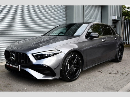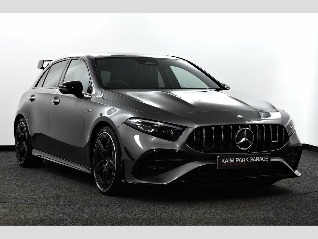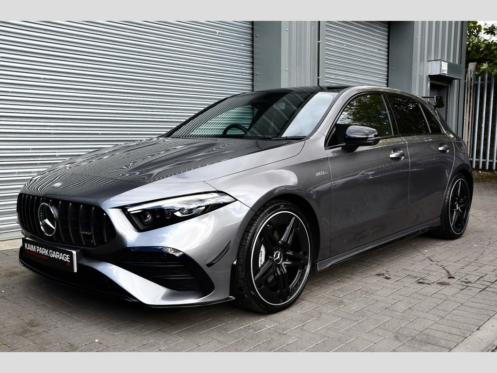Mountain Grey metallic with Leather Pack - Black with contrast stitching, 1 Owner from New covered only 12k miles & backed with Full Mercedes Service History, We are delighted to bring to the market this Gorgeous new model A35h AMG with Massive Spec including the all important Premium Plus package! SPECIFICATION INCLUDES - Panoramic sliding sunroof, Head up Display, Aerodynamic pack, AMG night pack, Light and sight package, Parking pack with 360 degree camera, DYNAMIC SELECT with driving programs (Slippery, Comfort, Sport, Sport+ and Individual), Easy pack tailgate hands-free access, AMG suspension, Suspension with adaptive damping system, AMG body styling, AMG spoiler lip on roof, Beltline strips in High gloss Black, Electric adjustable and heated door mirrors with integrated LED side indicators, Headlamp assist automatic headlamp activation, Multibeam LED headlamps with adaptive highbeam assist and cornering function, Heat insulating dark tinted rear and rear side windows, Heated glass rear windscreen + timer control, Privacy glass, Surround lighting with logo projection, Wider wheel arches for AMG wheels, 19" AMG 5 twin spoke light alloy wheels aerodynamically optimised painted in matt black with high sheen rim flange, Keyless go, Front brake calipers with AMG lettering, 10.25" Digital instrument cluster display screen, 10.25 inch touchscreen central media display, Fingerprint scanner, Hard-disk navigation, Hey Mercedes Voice activation, MBUX augmented reali Leather - Black, Mountain Grey