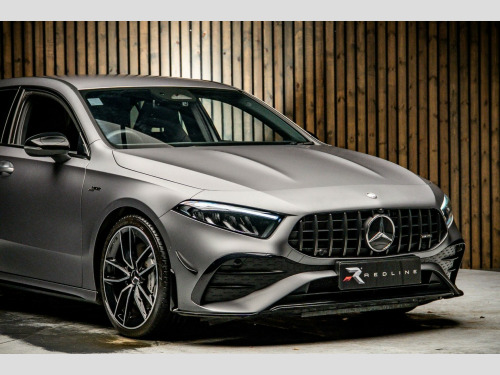 This 2024 Mercedes-Benz A35h AMG Touring Edition presents an exceptional opportunity with remarkably low mileage for its year, having covered just 10,199 miles. This four-wheel-drive model boasts a powerful 2.0L petrol hybrid engine, meeting the Euro 6 emission standards. Convenience is key with features like Headlamp Assist for automatic light activation, THERMOTRONIC two-zone automatic climate control, and wireless phone charging. Accessing and starting the vehicle is effortless thanks to KEYLESS-GO, while the Mercedes-Benz 100W sound system ensures an enjoyable audio experience.The AMG Touring Edition trim level offers a dynamic driving experience, highlighted by its impressive 0-62mph acceleration in just 4.7 seconds, demonstrating its performance capabilities. This acceleration figure is a clear indicator of how this vehicle surpasses many others in its class. Furthermore, this Mercedes-Benz A Class provides generous boot space, making it a practical choice for everyday use and longer journeys alike.. 19in Alloy Wheels - AMG Cross-Spoke Design - Painted in Matt Black with a High-Sheen Rim Flange, ABS - Anti-Lock Braking System with BAS - Brake Assist, AMG Aerodynamics Package, AMG Bodystyling - AMG Front Apron with Front Splitter and AMG Rear Apron with Visible Tailpipe Trim Elements, AMG Night Package, AMG Night Package II, AMG Spoiler Lip on the Roof Spoiler, AMG Suspension, ATTENTION Assist, Active Bonnet - Pedestrian Safety Measure which Detects an Impact and Raises Bonnet by 65mm, Active Brake ASSIST, Active Lane Keeping Assist, Adaptive Brake Assist with Hold Function and Hill Start Assist, Adaptive Brake Lights, Air Conditioning - Air Vents Black with Surround in Silver Chrome, Air Conditioning - THERMOTRONIC Automatic Climate Control - Two-Zone with Display, Airbag - Kneebag for Driver, Airbags - Dual Stage - Driver and Front Passenger, Airbags - Windowbags for Driver and Front Passenger, Alarm System with Immobiliser and Interior Protection - Thatcham Category 1, Automatic Child Seat Recognition Sensor, Beltline Strips - High Gloss Black, Bodystyling - Side Skirts - Body-Coloured, Bonnet with Power Domes, Brake Calipers with AMG Lettering on Front, Brake-Pad Wear Warning Indicator, Brushed Stainless Steel Sports Pedals with Rubber Studs, Bumpers - Body Coloured, Car Wash Mode, Centre Armrest - Front with Stowage, Childproof Locks - Manually Operated for Rear Doors and Electrically Operated for Rear Power Windows, Collision Prevention Assist, Crash-Responsive Emergency Lighting, Cruise Control with Limiter, DAB Digital Radio Tuner, Direct Steer Speed-Sensitive Power Steering, Direct-Steer System, Door Handles - Body Coloured, Door Mirrors - Electrically Adjustable and Heated with Integrated LED Indicators, Door Sills - Front Door Sills with AMG Lettering, Driving Modes - DYNAMIC SELECT with Drive Programs - Slippery - Comfort - Sport - Sport Plus - Individual, Dual Bluetooth Interfaces, ESP - Electronic Stability Programme with ASR - Acceleration Skid Control, ESP Curve Dynamic Assist, Electric Parking Brake, Electric Windows - 4, Exhaust System - AMG Sports Exhaust System with Two Round Tailpipes Attached to the Rear Apron, Exit Warning Assist, First Aid Kit and Warning Triangle, Floor Mats - AMG, Floor Mats - with Stitched Edging and AMG Lettering, Front Apron with Flics as Air Deflector Elements on the Outer Air Intakes, Front Splitter and Trim Elements on the Louvres in the Outer Air Inlets, GUARD 360 Vehicle Protection with Anti-theft Alarm System, Glass - Rear Windscreen - Heated with Timer Control, Hard-Disk Navigation, Headlamp Assist - Automatic Headlamp Activation, Heated Front Seats, Hey Mercedes - Voice Activation, High Level Third Brake Light - LED, ISOFIX and Top-Tether Child Seat Fixing Points in Rear - Two Outer Seats, Instrument Cluster - Fluid Level Warning Indicator for Fuel - Oil - Coolant and Washer Fluid, Instrument Cluster - Outside Temperature Display, Instrument Cluster - Service Indicator ASSYST, Instrument Cluster - Trip Computer in Multi-Function Display with Current Fuel Consumption Indicator, Instrument Display - 10.25in Digital Display, Interior Lighting - 64-Colour Ambient Lighting, Interior Lighting - Light and Sight Package, Interior Mirror - Reading Lamps in Black - Frameless, KEYLESS-GO - Lock-Unlock Doors Only, KEYLESS-GO - Starting Function, LED High Performance Headlamps with Integrated LED Daytime Running Lights and Adaptive High Beam Assist, LED Tail Lamps, Lamp Failure Indicator, Leather Package, Live Traffic Information, Luggage Compartment Cover, Luggage Nets on Driver and Front Passengers Backrests, MBUX Augmented Reality for Navigation, MBUX Multimedia System, Media Display - 10.25-inch with Touchscreen, Mercedes Me - Remote Services, Mercedes Me Connect - Standard Services, Mirror Package, Parking Package, Pre-Installation for Private Car Sharing, Privacy Glass, Radiator Grille - AMG Specific Grille - Darkened, Radio Aerial Roof Spoiler, Rain-Sensing Windscreen Wipers w.