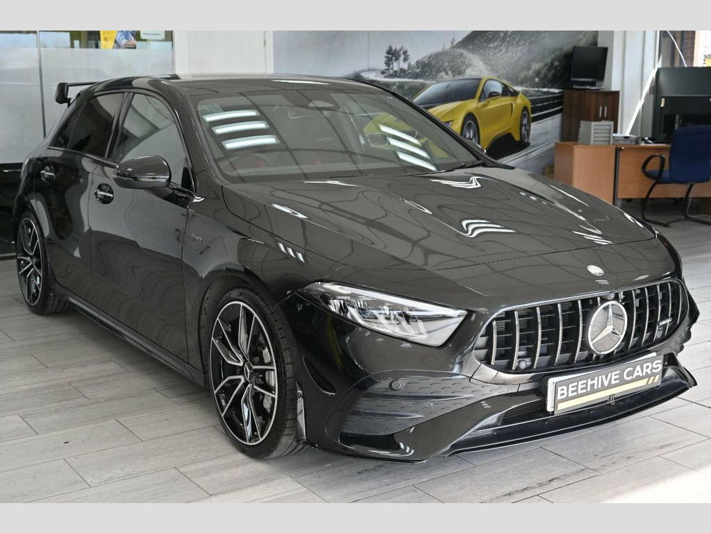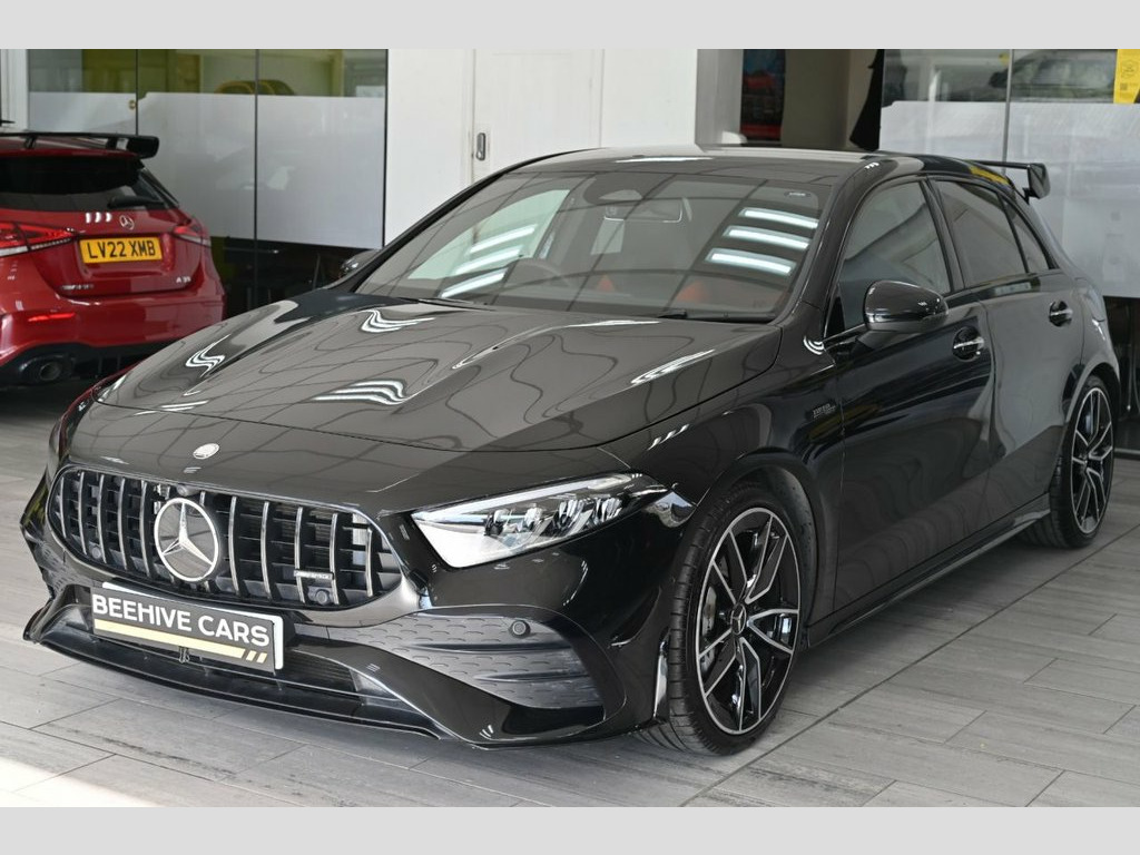 DRIVE AWAY TODAY OR HOME DELIVERY TO YOUR DOORSTEP FINANCE & PART EXCHANGE ARRANGED ONLINE** 7 DAY MONEY BACK GUARANTEE** Lovely Mercedes A-Class A35h mhev amg touring edition petrol hybrid plus factory fitted aero kit 4matic in metallic 1 owner from new sat nav dab radio bluetooth usb media reverse camera red and black full leather seats with leather armrest heated seats electric seats electric folding door mirrors front and rear parking aid sensors xenon lights flat bottom amg steering wheel with f1 style paddleshifts push button start stop moderate basic comfort dynamic sport advanced driving mode alloys privacy 19in Alloy Wheels - AMG Cross-Spoke Desi, ABS - Anti-Lock Braking System with BAS , Active Bonnet - Pedestrian Safety Measur, Active Brake ASSIST, Active Lane Keeping Assist, Adaptive Brake Assist with Hold Function, Adaptive Brake Lights, Air Conditioning - Air Vents Black with , Air Conditioning - THERMOTRONIC Luxury A, Airbag - Kneebag for Driver, Airbags - Dual Stage - Driver and Front , Airbags - Head and Sidebags - Driver and, Airbags - Windowbags for Driver and Fron, Alarm System with Immobiliser and Interi, AMG Aerodynamics Package, AMG Bodystyling - AMG Front Apron with F, AMG Night Package, AMG Night Package II, AMG Spoiler Lip on the Roof Spoiler, AMG Suspension, ATTENTION Assist,