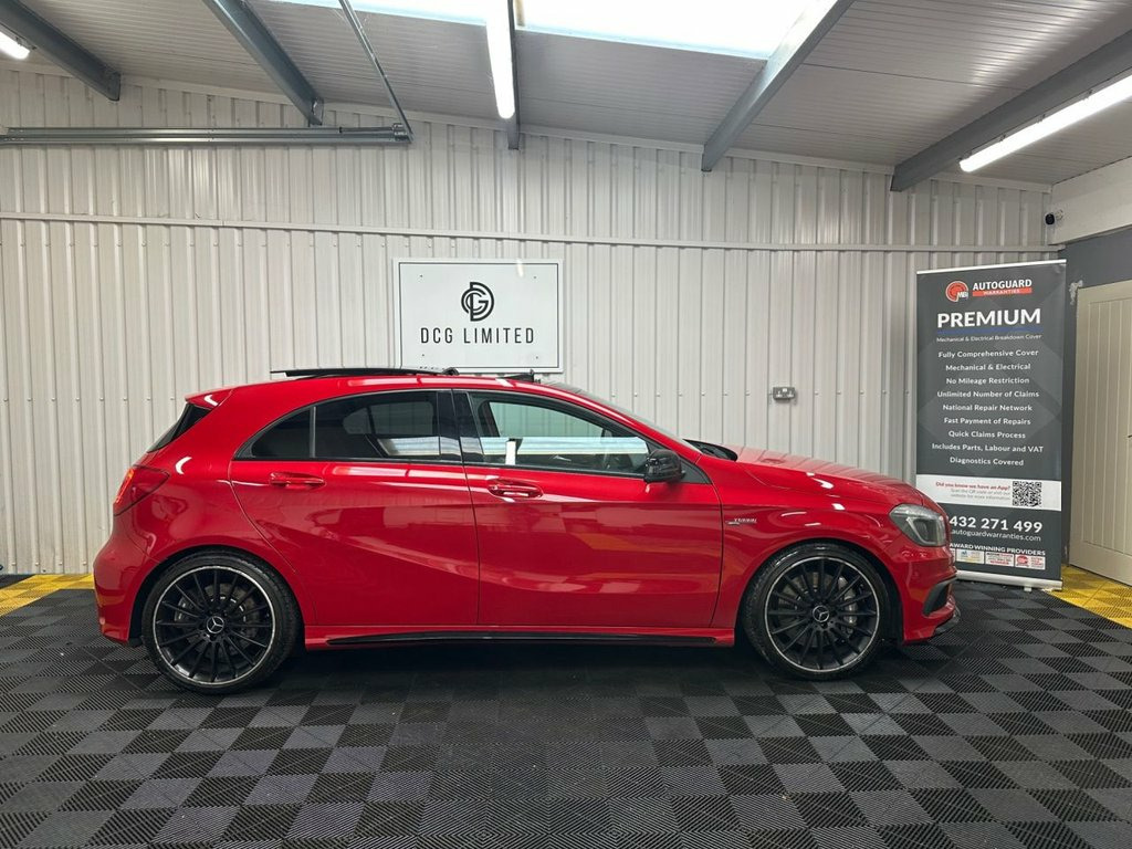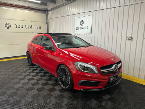 Mercedes-Benz A-Class 2.0 A45 AMG Hatchback 5dr Petrol SpdS DCT 4MATIC Euro 6 (s/s) (360 PS) (2015) £14,998 | 81,350 miles | Automatic (SpdS DCT) | Petrol | Hatchback | Euro 6 Available Now at DCG Limited – AA Approved Dealer in Reading This high-performance Mercedes-Benz A45 AMG delivers thrilling power, premium refinement, and everyday practicality in a compact 5-door format. Finished in Red, with 10 recorded services, 2 keys, and 2 owners from new, it's been exceptionally maintained and is ready to impress. Backed by AA Dealer Approval, HPI Clear status, a 6-month warranty, and 12 months AA Breakdown Cover, it's a standout choice for enthusiasts and professionals alike. Vehicle Highlights: 2.0L Turbocharged Petrol Engine (360 PS) – Explosive performance with AMG tuning SpdS DCT Automatic Transmission – Lightning-fast gear changes 4MATIC All-Wheel Drive – Confident handling in all conditions Euro 6 Emissions Standard – ULEZ compliant Finished in Red – Bold and sporty Panoramic Glass Roof – Bright, premium cabin feel AMG Styling – Sports seats, body kit, twin exhausts, and 18" alloy wheels Heated Front Seats & Dual-Zone Climate Control Rear Parking Sensors COMAND Infotainment – Sat nav, Bluetooth, USB, DAB radio ISOFIX Mounts – Child-seat ready Split-Folding Rear Seats – Flex 18in Alloy Wheels - 5-Twin-Spoke Design, 5.8-inch Tablet-Style Colour Display, ABS - Anti-Lock Braking System, Active Bonnet - Pedestrian Safety Measur, Active Park Assist with Parktronic, Adaptive Brake Assist with Hold Function, Adaptive Brake Lights, Air Vents with High Gloss Black Surround, Airbag - Drivers Knee, Airbag - Dual-Stage - Front Passenger, Airbags - Dual-Stage - Driver, Airbags - Head for Driver and Front Pass, Airbags - Windowbags for Driver and Fron, Alarm System with Interior Protection, Ambient Lighting in the Four Door Recess, AMG Bodystyling - Front Apron with Split, AMG Bodystyling - Rear Apron with Trim S, AMG Bodystyling - Side Sill Panels with , AMG Drive Unit with