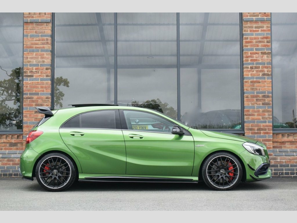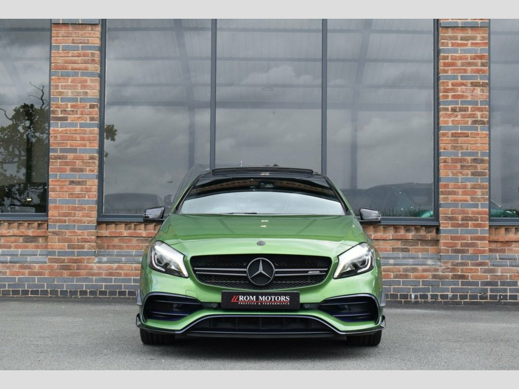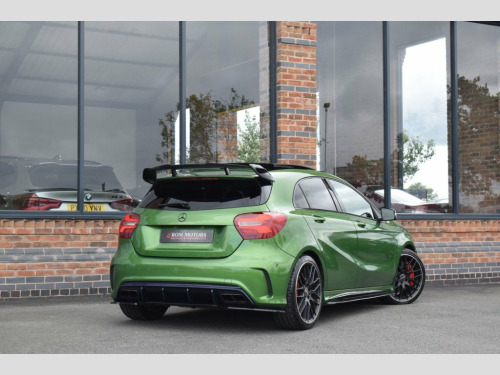 Rom Motors are delighted to present this stunning Mercedes-Benz A45 AMG for sale. Finished in the rare and sought after Elbaite Green metallic this car is kitted out with a huge selection of option extras on top of its huge standard specification. First of all that all important Panoramic Glass Sunroof, Harman Kardon Surround Sound & AMG Bucket Seats (in full black leather) on top of the Exterior AMG Aero Pack. Upgraded Matt Black 10-Spoke AMG Alloys really set the car off from the outside. That's without mentioning the amazing power output through Mercedes 4-Matic drive system. 380bhp through all 4 wheels, all packed into the A-Class platform makes this a real 'hot hatch'; especially when you open up the sports exhaust for the distinctive pops and crackles! Full service history with Mercedes in its early life, then later with independents, most recently only a few months ago alongside its MOT. This is not one to miss, these don't come round often! Exclusive Package - Leather - Lava Black, Elbaite Green, Exhaust System - AMG Performance, Privacy Glass, AMG Night Package, AMG Aerodynamics Package, 12 High Performance Speakers, 18in Alloy Wheels - AMG 10 Spoke Design , 4MATIC Badge on Boot Lid, 8-inch Tablet-Style Colour Display, 9-channel DSP Amplifier, ABS - Anti-Lock Braking System, AMG A-wing Front Air Intake, AMG Bodystyling - Front and Rear Apron, AMG Bodystyling - Side Skirts, AMG Diffuser-Look Rear Apron, AMG Drive Unit including AMG Dynamic Sel, AMG Instrument Cluster with Colour Displ, AMG Performance Seats - Contoured Seat S, AMG Radiator Grille with Twin Louvre in , ASR - Acceleration Skid Control, ATTENTION Assist, Active Bo