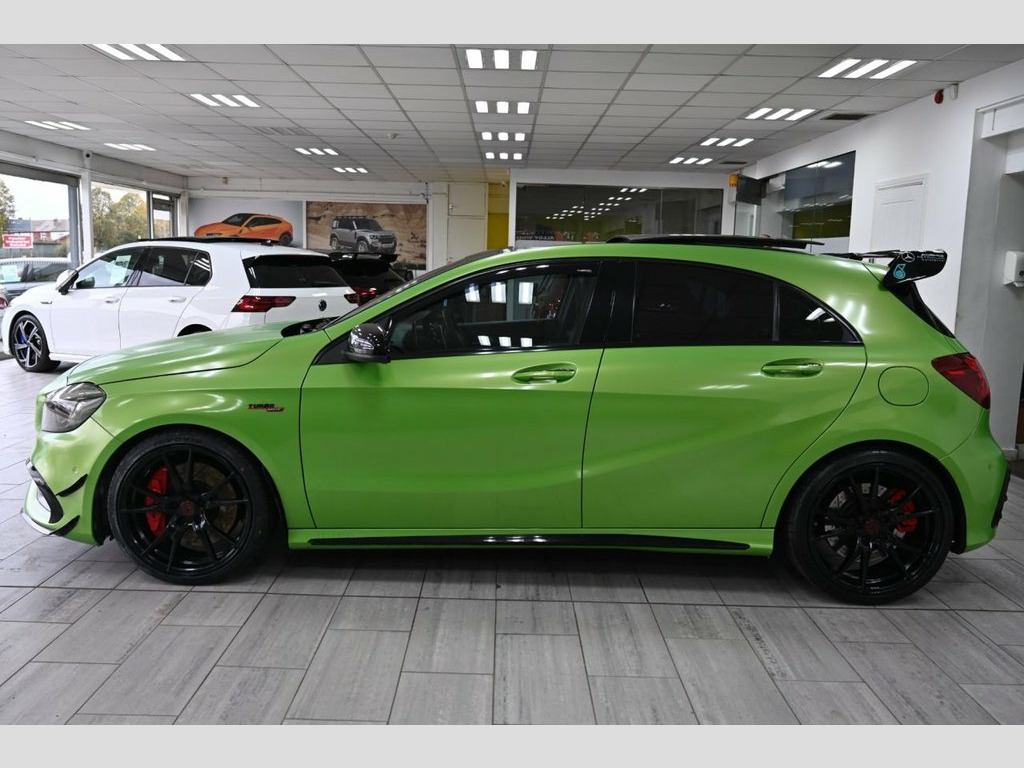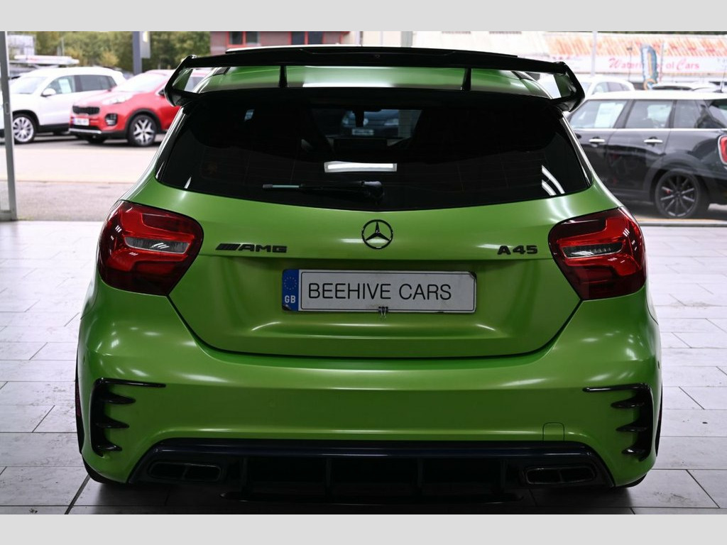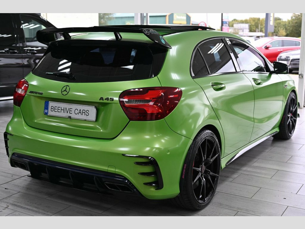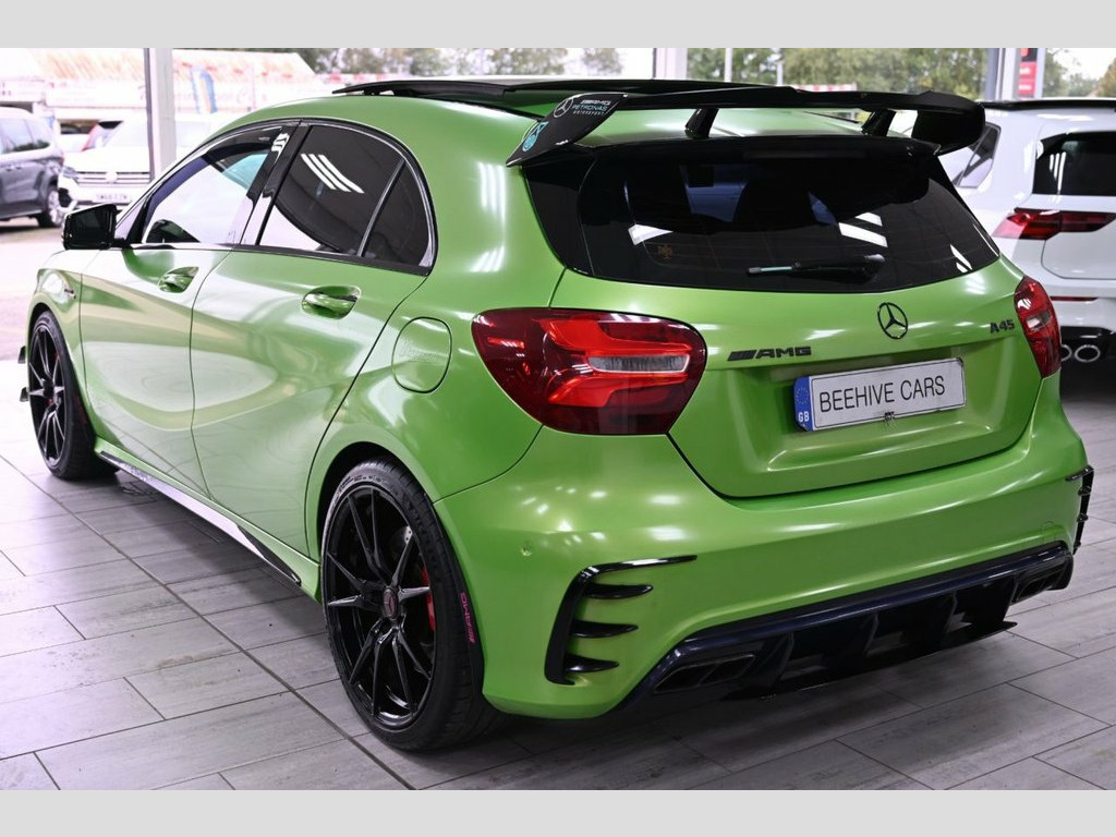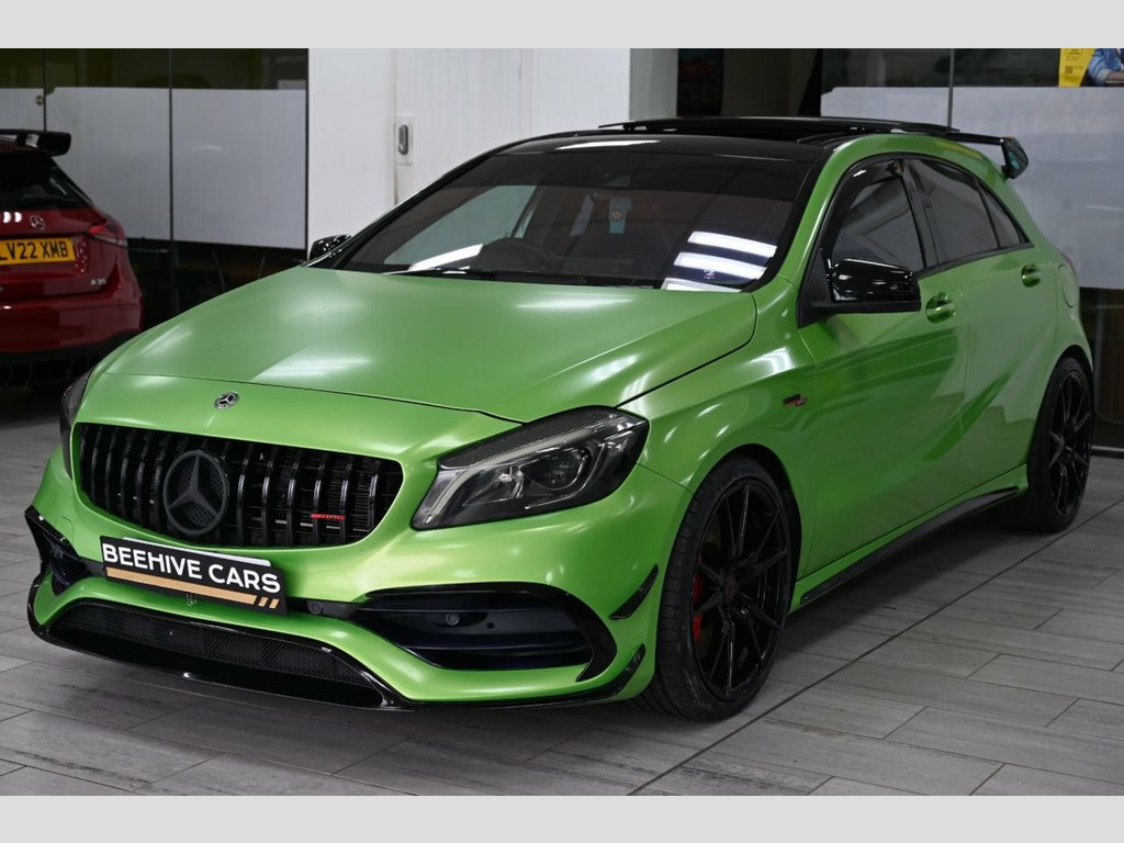 DRIVE AWAY TODAY OR FREE HOME DELIVERY TO YOUR DOORSTEP FINANCE & PART EXCHANGE ARRANGED ONLINE** 7 DAY MONEY BACK GUARANTEE** STAND OUT FROM THE CROWD - Lovely Mercedes A-Class A45 amg premium dct 4matic in metallic viper green wrapped also has been professionally tuned to stage 2 450bhp millet exhaust thousands spent on upgrade with full service history (8 mercedes stamp) REALLY nice well looked after example and not abused sat nav cd dab radio bluetooth media usb harman kardon surround sound system panoramic glass roof reverse camera half leather amg exclusive perforated black and red leather seats with leather armrest heated seats electric memory seats electric folding door mirrors front and rear parking aid sensors xenon lights flat bottom amg steering wheel with f1 style paddleshifts push button start stop button comfort sport race individual driving modes amg ride controls comfort and sport modes amg performance exhaust amg aerodynamic bodystyling package alloys privacy 12V Socket, 12V Socket in Luggage Compartment, 18in Alloy Wheels - AMG 10 Spoke Design , 8-inch Frameless Tablet-style Colour Dis, ABS - Anti-Lock Braking System with BAS , Active Bonnet - Pedestrian Safety Measur, Active Braking Assist, Adaptive Brake Assist with Hold Function, Adaptive Brake Lights, Air Vents with Black Surround - Red Inse, Airbags - Dual Stage - Driver and Front , Airbags - Head and Sidebags - Driver and, Airbags - Windowbags for Driver and Fron, Alarm System with Immobiliser and Interi, AMG A-wing Front Air Intake, AMG Bodystyling - Front and Rear Apron a, AMG Diffuser-Look Rear Apron, AMG Drive Unit including AMG Dynamic Sel, AMG Dynamic Select with a Choice of Driv, AM