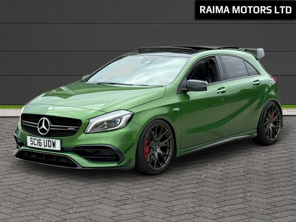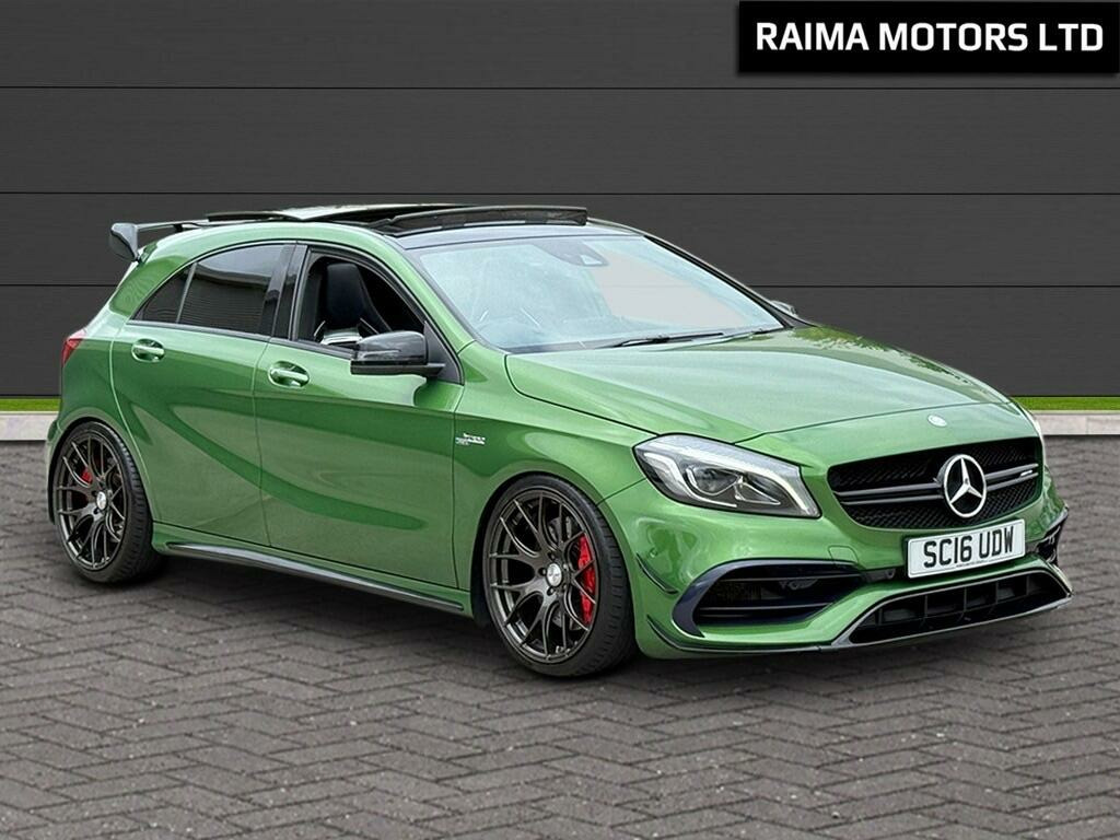 Boasting exceptionally low mileage for its year, this 2016 Mercedes-Benz A45 AMG presents a superb opportunity. This four wheel drive model is powered by a potent 2.0L petrol engine, meeting Euro 6 emissions standards. It comes with a clear vehicle history check and an MOT valid until March 2026, offering peace of mind. The AMG trim is enhanced by the Exclusive Package, featuring luxurious black leather upholstery. For convenience and safety, it includes front and rear parking sensors, and Bluetooth connectivity for seamless audio and calls.Experience exhilarating performance with this A45 AMG, capable of accelerating from 0 to 62mph in a remarkable 4.2 seconds, a figure that truly sets it apart from other vehicles in its class. The LED headlights provide excellent visibility, while the generous boot space ensures practicality for everyday use and longer journeys. This combination of high performance, premium features, and low mileage makes this Mercedes-Benz A Class a compelling choice.EXCELLENT CONDITION, RECOMMENDED SELLER BY AUTO-TRADER READ OUR 5 STAR REVIEWS, #MUST#BE#VIEWED#TO#BE#APPRECIATED# + FINANCE AVAILABLE + EXTENDED WARRANTY AVAILABLE + HPI CLEAR + £300 DEPOSIT SECURES ANY VEHICLE + BEST PRICES PAID FOR PART EXCHANGE + NATIONWIDE DELIVERY SERVICE AVAILABLE CALL FOR A QUOTE + DEBIT CARD PAYMENTS ACCEPTED + VIEWING BY APPOINTMENTS ONLY +