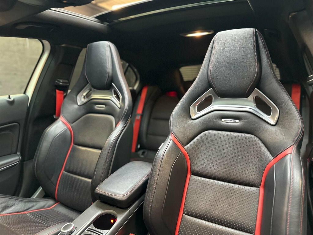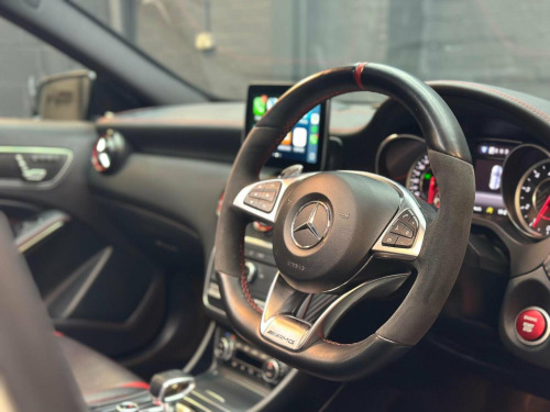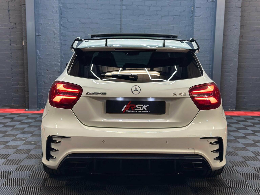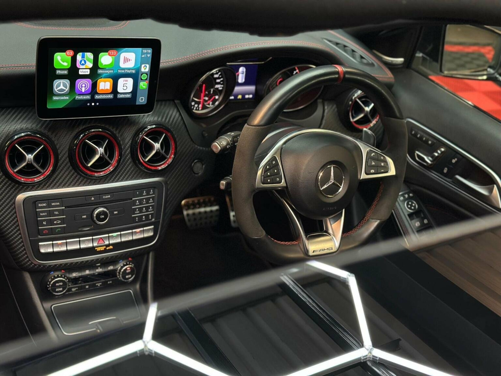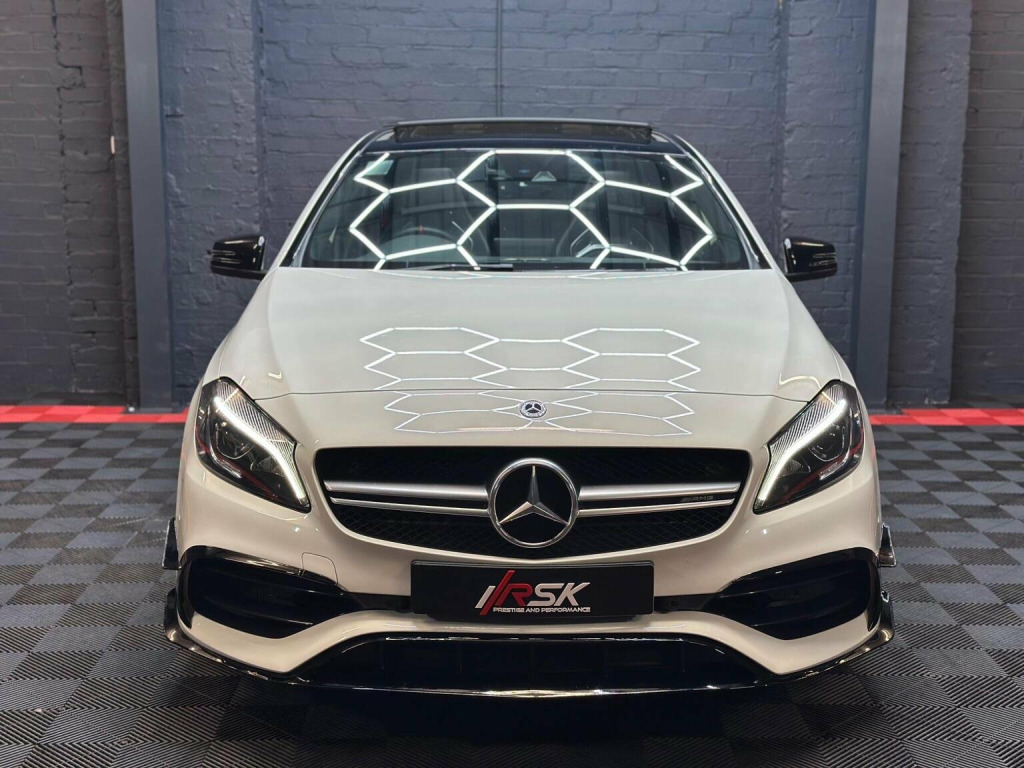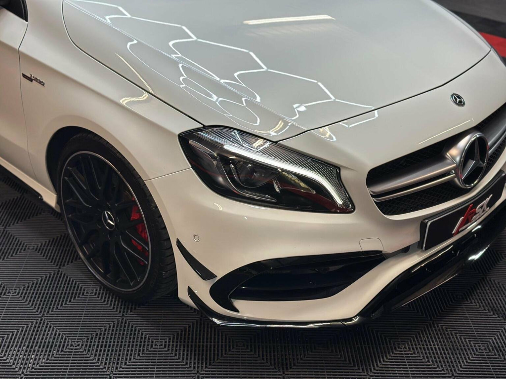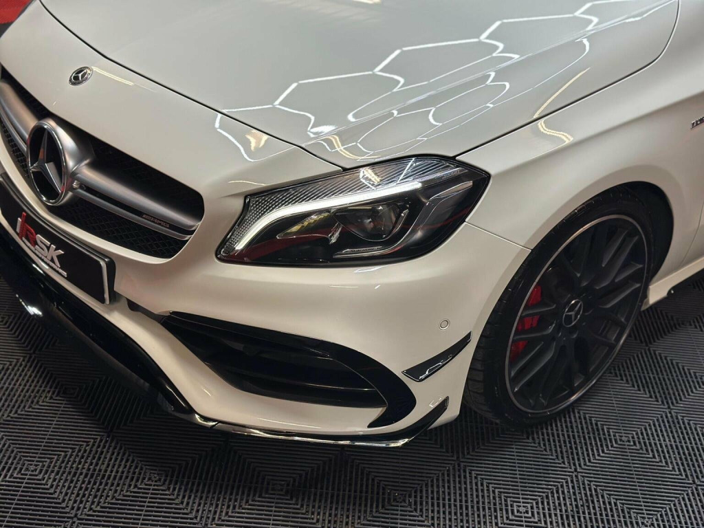 Low Rate Finance Available, Get in touch! Stunning Mercedes A45 fitted with all the optional extras there is available, hard to come by an example like this with Full Service History from Mercedes Main Dealer along with the immaculate body condition. All 4 Tyres are on Michellin Pilot Sport 4s. Has every option ticked such as the Leather Bucket Seats, Car Play, Electric Mmeory Seats, AMG Exhaust with button, AMG Suspension button, rare race mode with driving selection, Reverse Camera, Front and Rear Sensors, AMG Aero Kit, Upgraded 19 inch AMG Alloys, Red AMG Brake Callipers and much more in the spec list below! This stunning example has also already been polished and ceramic coated by the previous owner. We will also be carrying out a Vehicle Inspection and fresh 12 Months MOT prior to sale for your own peace of mind.