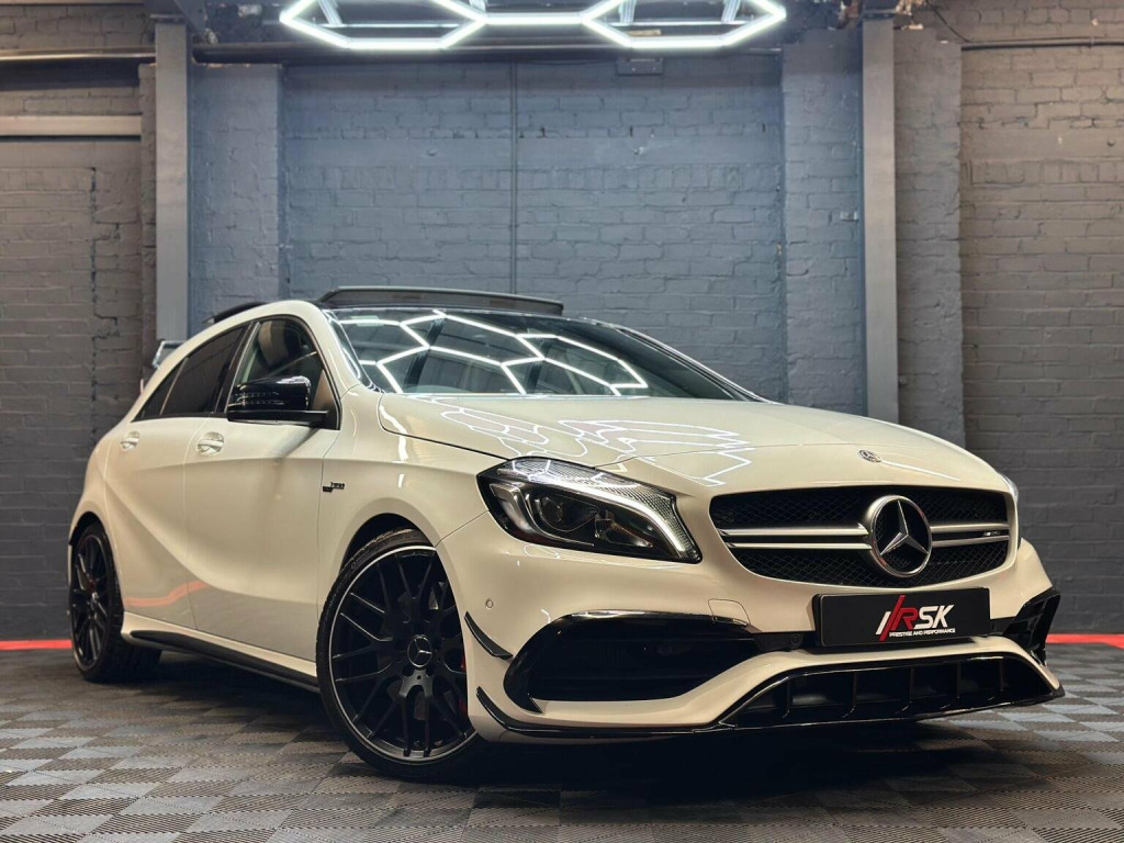 This 2017 Mercedes-Benz A-Class 2.0 A45 AMG (Premium) SpdS DCT 4MATIC Euro 6 (s/s) 5dr Hatchback is currently available for £23,975 in West Midlands with Petrol engine and Auto Clutch Manual gearbox. For more information or to arrange a viewing, click here to send us an email using form below.