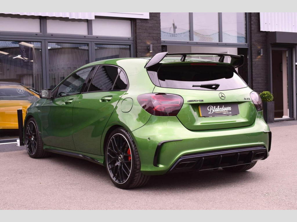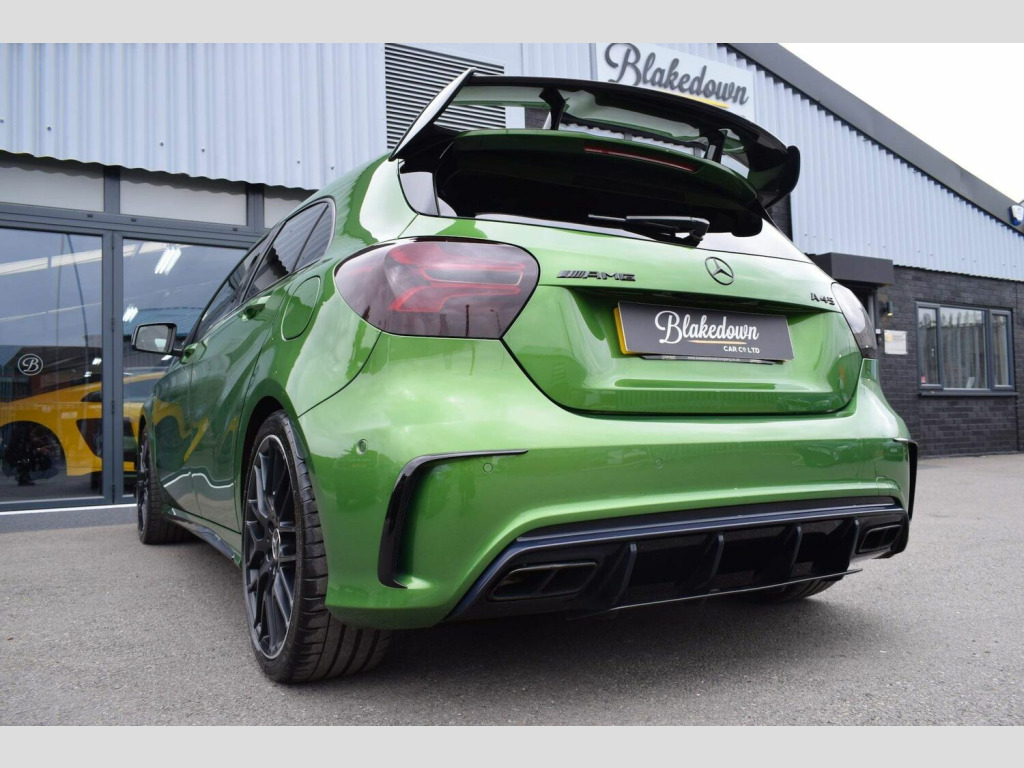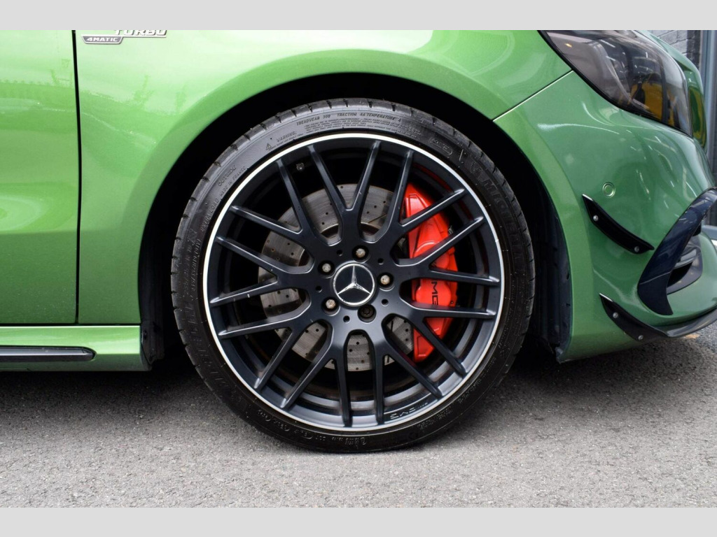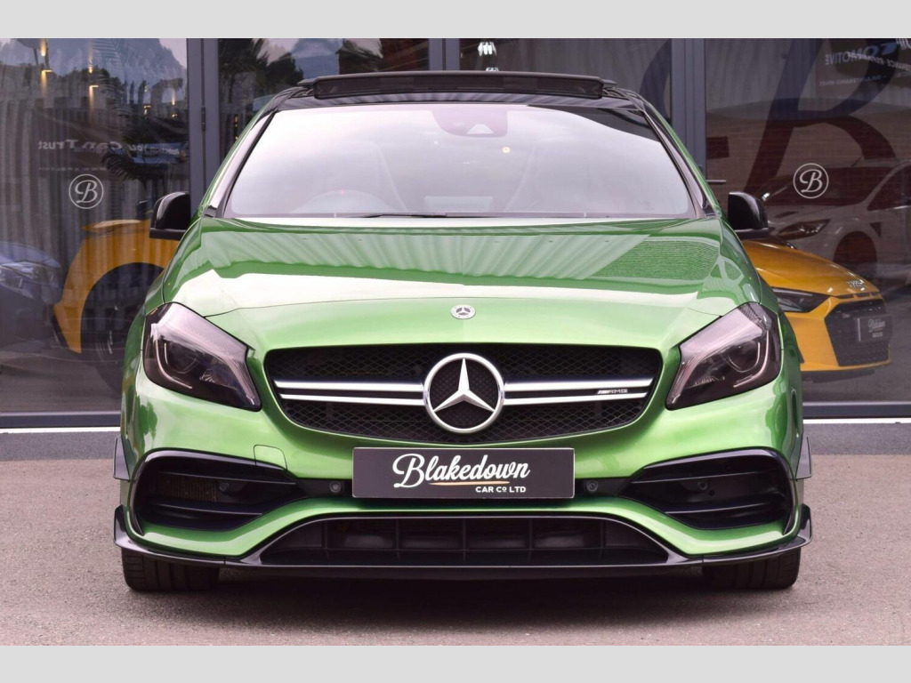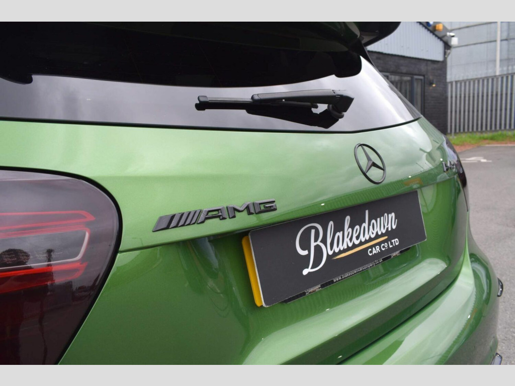 2017 67 Mercedes-Benz 2.0 A45 AMG (Premium) 4MATIC finished in rare and highly sought after Elbaite Green Metallic with black part leather interior and upgraded 19 AMG Multi-Spoke Diamond Turned alloys. Just 33700 miles covered which is supported by full service history with invoices present. Huge spec on this A45 with a host of desirable optional extras. The Premium package itself includes: Electric Memory Seats, Harman Kardon Logic 7 Surround Sound System, KEYLESS-GO and Panoramic Glass Sunroof. On top of the Premium spec this example features a host of essential options totalling almost £5000 which includes: AMG Aero Package, AMG Night Package, AMG Performance Exhaust, Privacy Glass and 19in Alloy Wheels - AMG Cross-Spoke - Painted in Titanium Grey with a High Sheen Finish. Beautifully presented in showroom condition as you would expect both inside and out. This A45 has been tastefully modified with a safe stage 2 tune by GAD tuning to 430bhp with dyno printout to support and a Pipercross induction kit and sports cat as supporting hardware. Other equipment includes: AMG Sports Exhaust System with Two Chrome-plated Tailpipes, AMG Sports Suspension, Brake Calipers - Front and Rear Painted Red with AMG Lettering, Cruise Control with Limiter, DAB, Door Mirrors - Electrically Folding and Auto-Dimming on Drivers Side, Garmin Map Pilot Navigation System, Automatic Headlamp Activation, Heated Front Seats, LED High Performance Headlights with Integrated LED Daytime Running Lights and Adaptive High Beam Assist, LED Tail Lights, Reversing Camera with Parking Guidelines - 180 Degree View, Smartphone Integration, Tyre Pressure Monitoring System and more. FINANCE FROM 6.9% APR | GTECHNIQ DETAILING & CERAMIC COATINGS | XPEL PAINT PROTECTION FILM