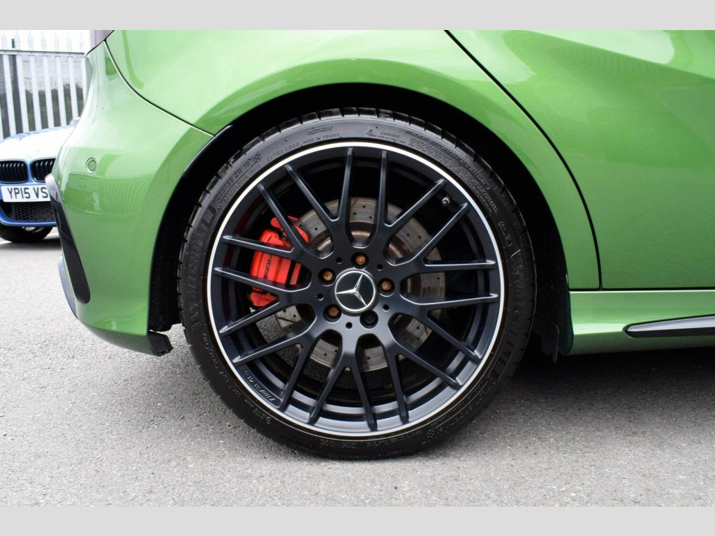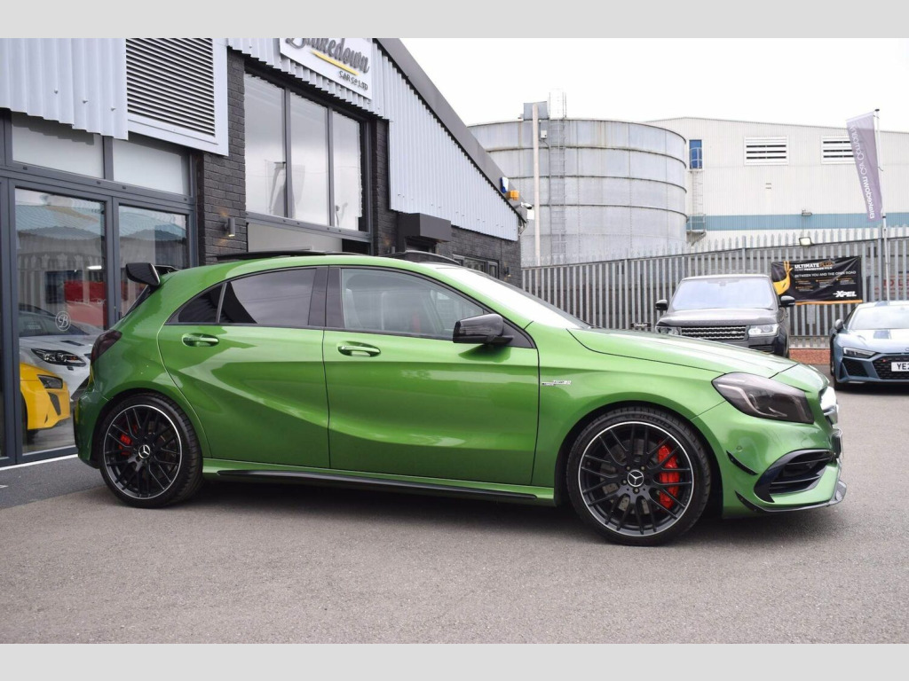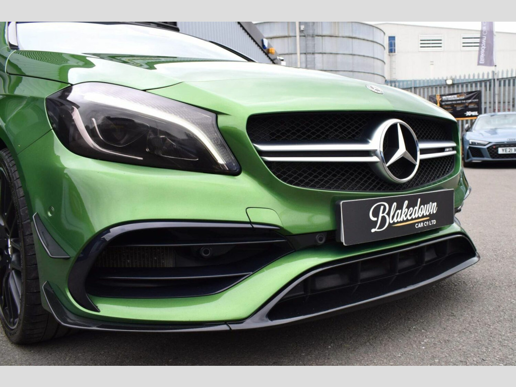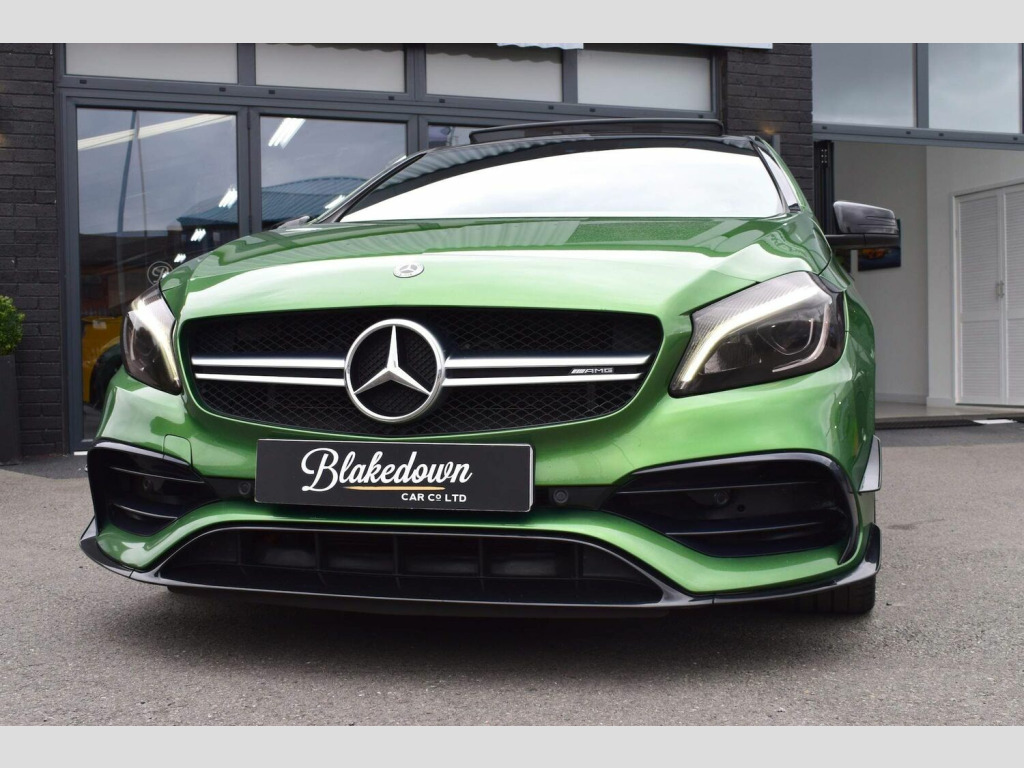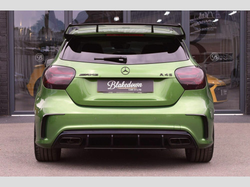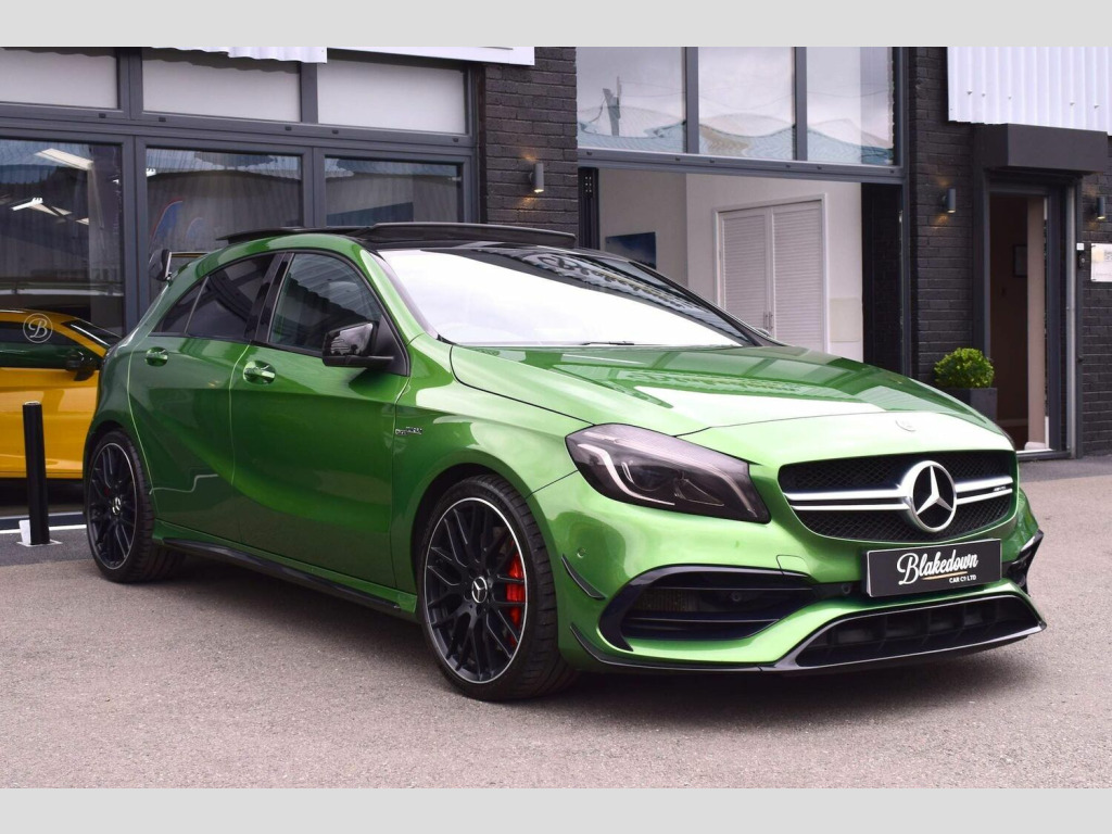 2017 67 Mercedes-Benz 2.0 A45 AMG (Premium) 4MATIC finished in rare and highly sought after Elbaite Green Metallic with black part leather interior and upgraded 19 AMG Multi-Spoke Diamond Turned alloys. Just 33700 miles covered which is supported by full service history with invoices present. Huge spec on this A45 with a host of desirable optional extras. The Premium package itself includes: Electric Memory Seats, Harman Kardon Logic 7 Surround Sound System, KEYLESS-GO and Panoramic Glass Sunroof. On top of the Premium spec this example features a host of essential options totalling almost £5000 which includes: AMG Aero Package, AMG Night Package, AMG Performance Exhaust, Privacy Glass and 19in Alloy Wheels - AMG Cross-Spoke - Painted in Titanium Grey with a High Sheen Finish. Beautifully presented in showroom condition as you would expect both inside and out. This A45 has been tastefully modified with a safe stage 2 tune by GAD tuning to 430bhp with dyno printout to support and a Pipercross induction kit and sports cat as supporting hardware. Other equipment includes: AMG Sports Exhaust System with Two Chrome-plated Tailpipes, AMG Sports Suspension, Brake Calipers - Front and Rear Painted Red with AMG Lettering, Cruise Control with Limiter, DAB, Door Mirrors - Electrically Folding and Auto-Dimming on Drivers Side, Garmin Map Pilot Navigation System, Automatic Headlamp Activation, Heated Front Seats, LED High Performance Headlights with Integrated LED Daytime Running Lights and Adaptive High Beam Assist, LED Tail Lights, Reversing Camera with Parking Guidelines - 180 Degree View, Smartphone Integration, Tyre Pressure Monitoring System and more. FINANCE FROM 6.9% APR | GTECHNIQ DETAILING & CERAMIC COATINGS | XPEL PAINT PROTECTION FILM