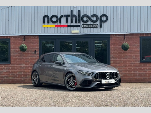 Finished in Mountain Grey with Artico Leather-Dinamica Microfibre - Black with Contrast Top stitching and Yellow Stripes Interior throughout. --- FACTORY SPEC --- This particular example boasts a very high spec with the added features consisting of; Exhaust System with Valve Control Dependant on Drive Program / 19in Alloy Wheels - AMG 5 Twin Spoke Design / AMG A 45 S Bodystyling / AMG Drivers Package with Top Speed of 170mph / AMG Night Package / AMG Performance Seat Package / AMG Sports Suspension / Reversing Camera with Parking Guidelines - 180 Degree View / Light and Sight Package / Active Lane Keeping Assist / Adaptive Brake Assist with Hold Function and Hill Start Assist / ABS - Anti-Lock Braking System / AMG High-Performance Braking System with Red Brake Calipers and Black AMG Lettering at the Front / Cruise Control with Limiter / Heated Front Seats / KEYLESS-GO - Keyless Locking-Unlocking / LED High Performance Headlamps with Integrated LED Daytime Running Lights / Privacy Glass, plus so much more. --- SERVICE HISTORY --- Very well maintained, with Service History. 4 services so far from Mercedes with the most recent carried out on 25,005 miles and included the Rear Axle service, the service before that was carried out on 20,945 miles and was a Major with Brake Fluid. Independent Multi-Point check showing a clean bill of health, with tyres averaging 5.6 mm. Mot till 05/05/2026. Artico Leather-Dinamica Microfibre - Bla, Mountain Grey, 10.25in Media Display, 19in Alloy Wheels - AMG 5 Twin Spoke Des, ABS - Anti-Lock Braking System with BAS , AMG A 45 S Bodystyling, AMG Bodystyling - Front and Rear Apron, AMG Centre Console - Decidedly Sporty wi, AMG Drive Unit including AMG Dynamic Sel, AMG Drivers Package with Top Speed of 17, AMG Dynamic Select with a Choice of Driv, AMG High-Performance Braking System with, AMG Instrument Cluster with Colour Displ, AMG Night Package, AMG Performance Seat Package, AMG Speed-Sensitive Steering with Two Se, AMG Sports Pedals in Brushed Stainless S, AMG Sports Suspension, AMG Track Pace - Records Lap Times on th, ATTENTION Assist, Acti
