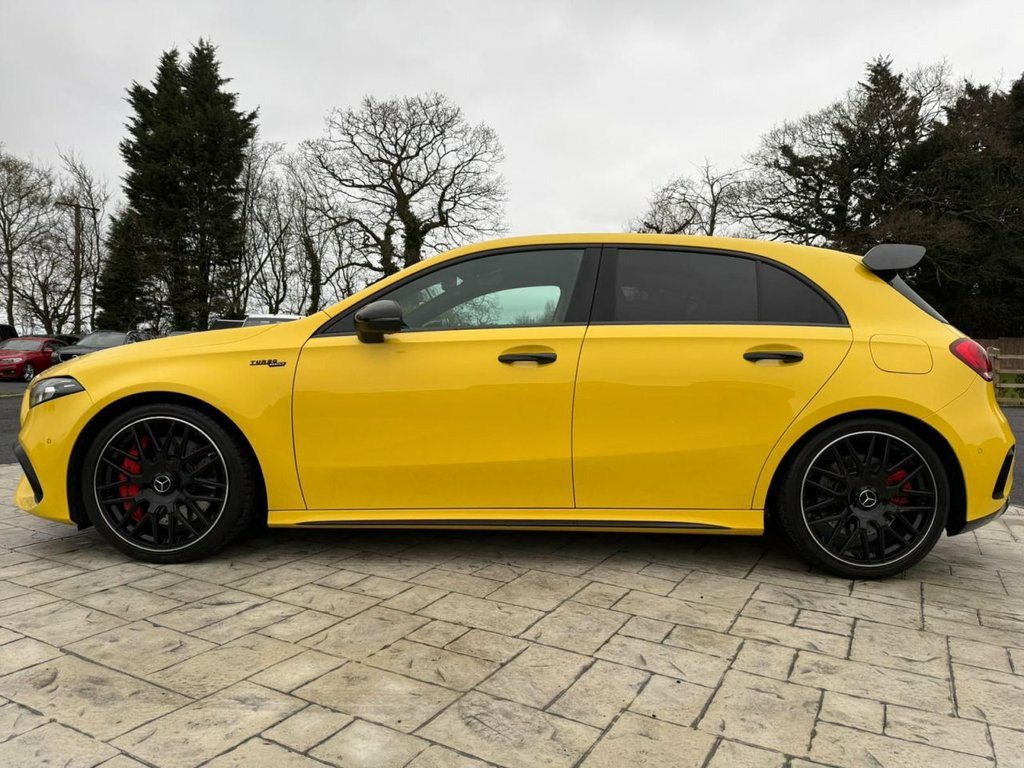 Just Landed Into Stock - Here We Have The Mercedes A45 AMG S What A Stunning Rare Example, Finished In Sun Yellow With Only One Former Keeper From New. Find The Full List Of Details And Specification Below: EXTERIOR SPECIFICATION: - Finished In Sun Yellow - 19" Black Gloss Alloys With Silver Rim - Red Brake Calipers - Front And Rear Parking Sensors - Reversing Camera - Rear Tinted Privacy Glass - Xenon Headlights - LED Daytime Running Lights - Black Gloss Wing Mirrors - Carbon Style Rear Spoiler INTERIOR SPECIFICATION: - Switchable Sports Exhaust - Black Leather/Suede Seats With Red Contrast Stitching - Red Seat Belts - Heated Seats - Multifunctional Leather Steering Wheel - Cruise Control - Paddle-Shift Gear Change - DAB Radio - Full Screen Sat Nav - Blue Tooth Connection - Dual Digital Climate Control - Keyless Start - Automatic Stop/Start Technology Service History Carried Out At: @ 8,961 miles - Mercedes, Milton Keynes @ 17,625 miles - Mercedes Northampton @ 23,812 miles - Mercedes Ulverston Then Finally On 11.02.2026 @ 30,146 miles. The Current Mileage Is 30,152 miles All HPI Clear. Comes With 2X Keys. Will Come With MOT Until 10th February 2027 With NO Advisories. Tyres In Great condition With 6mm Tread Remaining All Round. Contact Us Today To Arrange A Viewing! 10.25in Media Display, 19in Alloy Wheels - AMG - 5-Twin-Spoke D, ABS - Anti-Lock Braking System with BAS , Active Bonnet - Pedestrian Safety Measur, Active Brake ASSIST, Active Lane Keeping Assist, Adaptive Brake Assist with Hold Function, Adaptive Brake Lights, Air Conditioning - THERMOTRONIC Luxury A, Air Vents - Black with Silver Chrome Ele, Airbag - Kneebag for Driver, Airbags - Dual Stage - Driver and Front , Airbags - Windowbags for Driver and Fron, Alarm System with Immobiliser and Interi, AMG A 45 S Bodystyling, AMG Bodystyling - Front and Rear Apron, AMG Centre Console - Decidedly Sporty wi, AMG Drive Unit including AMG Dynamic Sel, AMG Drivers Package, AMG Dynamic Select with a Cho