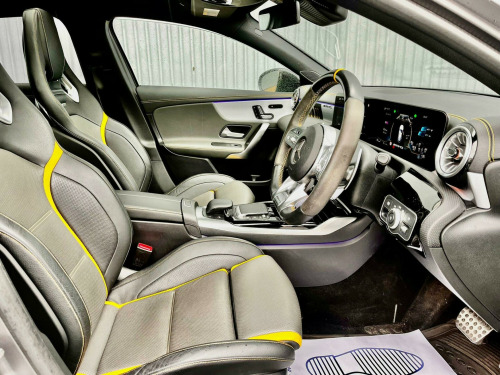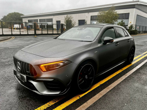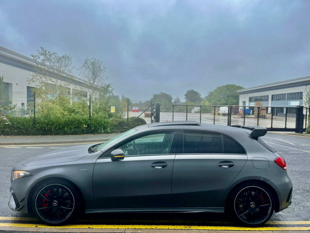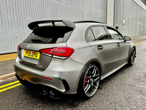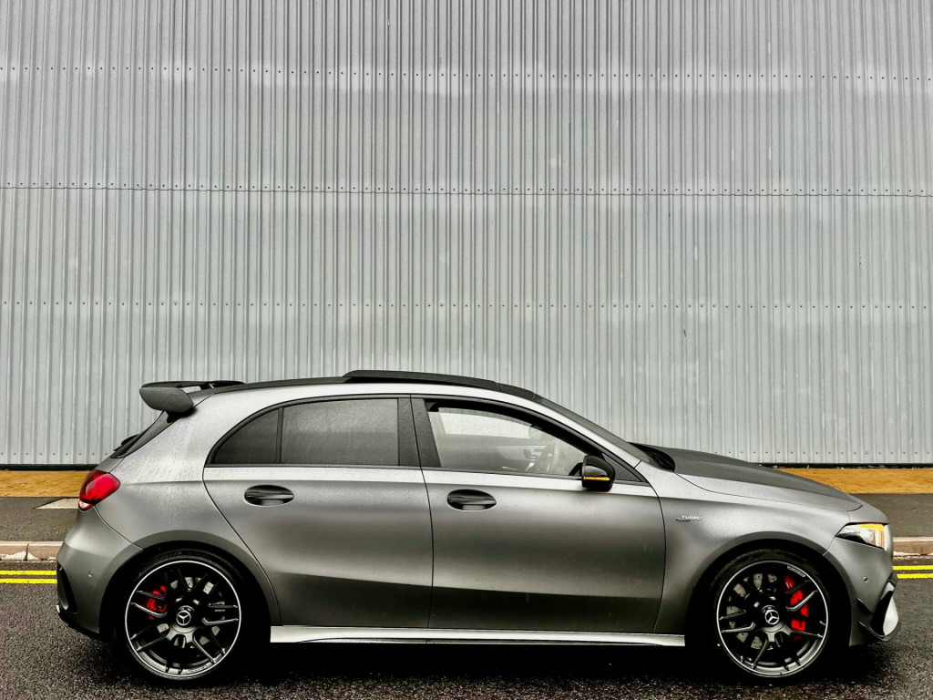 FULL PANORAMIC GLASS SLIDING ROOF, PARKING CAMERA, NIGHT PACK, PERFORMANCE PACK, SAT NAV, 19'' ALLOYS, UPGRADED SOUND SYSTEM, DAB RADIO, BLUETOOTH, APPLE VAR PLAY, ANDROID AUTO, SPORT EXHAUST, CRUISE CONTROL, WIRELESS CHARGER, SAT NAV, AMBIENT LIGHTING, LANE ASSIST, COLLISION PACK, PARKING SENSORS, FACTORY MAGNO FROZEN GREY COLOUR, FULL ELECTRIC WINDOWS & FOLDING MIRRORS, ELECTRIC + HEATED MMEORY SPORT SEATS, DRL LED PACK, XENONS, 2 KEYS & MUCH MORE, DRIVES FAULTLESS, LONG MOT, HPI CLEAR, READY TO GO, CALL US TO ARRANGE DELIVERY, ANY INSPECTIONS ARE WELCOME, PART EX WELCOME. 10.25in Media Display, 19in Alloy Wheels - AMG Forged Cross-Spoke - Painted Matt Black with a High-Sheen Rim Flange, ABS - Anti-Lock Braking System with BAS - Brake Assist, AMG A 45 S Bodystyling, AMG Aerodynamics Package, AMG Bodystyling - Front and Rear Apron, AMG Centre Console - Decidedly Sporty with Raised Front Section, AMG Centre Console is Finished with Trim in Silver Chrome, AMG Drive Unit including AMG Dynamic Select Controller, AMG Drivers Package, AMG Dynamic Select with a Choice of Driving Modes, AMG Instrument Cluster with Colour Display and AMG Menu, AMG Leather Package, AMG Night Package, AMG Sports Pedals in Brushed Stainless Steel with Rubber Studs, AMG Sports Suspension, AMG Track Pace - Records Lap Times on the Racetrack, ATTENTION Assist, Active Bonnet - Pedestrian Safety Measure which Detects an Impact and Raises Bonnet by 65mm, Active Brake ASSIST, Active Lane Keeping Assist, Adaptive Brake Assist with Hold Function and Hill Start Assist, Adaptive Brake Lights, Air Conditioning - THERMOTRONIC Luxury Automatic Climate Control - Two-Zone with Display, Air Vents - Black with Silver Chrome Elements, Airbag - Kneebag for Driver, Airbags - Dual Stage - Driver and Front Passenger, Airbags - Windowbags for Driver and Front Passenger, Alarm System with Immobiliser and Interior Protection - Thatcham Category 1, Automatic Child Seat Recognition Sensor, Beltline Strips - High Gloss Black, Blind Spot Assist, Bonnet with Power Domes, Brake Calipers - Front and Rear Painted Red with AMG Lettering on Front and Rear Calipers, Brake-Pad Wear Warning Indicator, Bumpers - Body Coloured, Burmester Surround Sound System, Centre Armrest - Front with Stowage, Childproof Locks - Manually Operated for Rear Doors and Electrically Operated for Rear Power Windows, Crash-Responsive Emergency Lighting, Cruise Control with Limiter, DAB Digital Radio Tuner, Door Handles - Body Coloured, Door Mirrors - Electrically Adjustable and Heated with Integrated LED Indicators, Dual Bluetooth Interfaces, ESP - Electronic Stability Programme - Three-Stage, ESP - Electronic Stability Programme with ASR - Acceleration Skid Control, ESP Curve Dynamic Assist, Electric Parking Brake, Electric Windows - 4, Exhaust System - AMG Real Performance Sound, Exhaust System - Two Round Twin Tailpipe Trim Elements, Exhaust System with Valve Control Dependant on Drive Program, Exit Warning Assist, First Aid Kit and Warning Triangle, Floor Mats - AMG, Glass - Rear Windscreen - Heated with Timer Control, Hard-Disk Navigation, Headlamp Assist - Automatic Headlamp Activation, Heated Front Seats, Hey Mercedes - Voice Activation, High Level Third Brake Light - LED, ISOFIX and Top-Tether Child Seat Fixing Points in Rear - Two Outer Seats, Illuminated Front Door Sills with Mercedes-Benz Lettering, Instrument Cluster - Outside Temperature Display, Instrument Cluster - Service Indicator ASSYST, Instrument Cluster - Trip Computer in Multi-Function Display with Current Fuel Consumption Indicator, Instrument Display - 10.25in Display, Integrated Radio Aerial, Interior 64-Colour Ambient Lighting, KEYLESS-GO - Keyless Locking-Unlocking, KEYLESS-GO Starting Function, LED Tail Lights, Light Failure Indicator, Light and Sight Package, Live Traffic Information, Luggage Compartment Cover, MBUX Augmented Reality for Navigation, MBUX Multimedia System, MULTIBEAM LED Headlights with Adaptive Highbeam Assist Plus, Mercedes Me Connect - Standard Services, Mirror Package, Multi-Contour Seat Package, Panoramic Glass Sunroof, Parking Package, Power Steering - AMG Speed Sensitive Sports, Pre-Installation for Mercedes-Benz Link, Pre-Installation for Private Car Share, Pre-Installation for Vehicle Monitoring, Pre-Installation for Vehicle Set-Up, Privacy Glass, Radiator Grille - AMG-Specific Radiator Grille in High-Gloss Chrome with AMG Lettering, Rain-Sensing Windscreen Wipers with Two Sensitivity Settings, Rear Armrest with Two Cup Holders, Rear Axle - Multi-Link, Rear Fog Light, Rear Windscree. Full service history