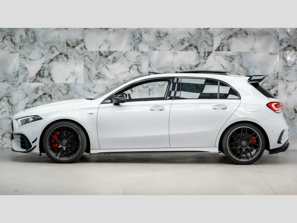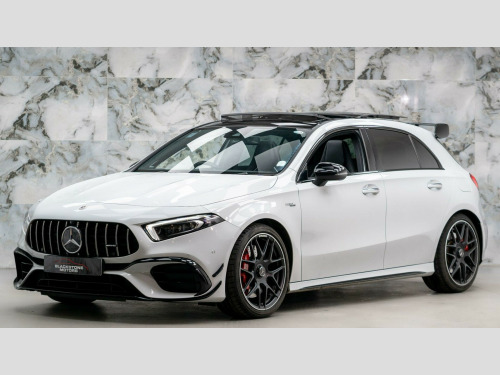 This particular example is finished in Polar White paintwork with Black leather interior. It benefits with a FULL Mercedes Benz service history and will come with a 6 month warranty.The high specification of this Mercedes includes:- Panoramic/Sliding Sunroof- Aero Pack- Reversing Camera- Electric Folding Mirrors- Heated Seats- Touch Pad8.9% Low rate finance packages available, HP available, LP available, ****Apply for finance on our website for an instant decision****, 5 days driveway insurance available.Take advantage of our full bespoke in house detailing package to suit your needs, inclusive of Paint Protection Film (XPEL), Paint Correction, Nano Ceramic Coating, Trackers, Immobilisers and Bodykits. All of our work can be found on our social media Instagram blackstonemotorsuk & limitlessdetailinguk .25in media display, 19in alloy wheels - amg forged cross-spoke, abs - anti-lock braking system with bas - brake assist, amg a 45 s bodystyling, amg aerodynamics package, amg bodystyling - amg front apron with front splitter - amg side sill panels and amg rear apron with visible exhaust tailpipe trim elements, amg centre console - decidedly sporty with raised front section, amg centre console is finished with trim in silver chrome, amg drive unit including amg dynamic select controller, amg drivers package, amg dynamic select with a choice of driving modes, amg high-performance braking system with red brake calipers and black amg lettering at the front, amg instrument cluster with colour display and amg menu, amg leather package, amg night package, amg performance 4matic plus with torque control, amg performance seats, amg sports pedals in brushed stainless steel with rubber studs, attention assist, active bonnet - pedestrian safety measure which detects an impact and raises bonnet by 65mm, active brake assist, active lane keeping assist, adaptive brake assist with hold function and hill start assist, adaptive brake lights, air conditioning - thermotronic luxury automatic climate control - two-zone with display, air vents - black with silver chrome elements, airbag - kneebag for driver, airbags - dual stage - driver and front passenger, airbags - head and sidebags - driver and front passenger, airbags - windowbags for driver and front passenger, alarm system with immobiliser and interior protection - thatcham category 1, automatic child seat recognition sensor, beltline strips - high gloss black, blind spot assist, bonnet with power domes, brake-pad wear warning indicator, bumpers - body coloured, car wash mode, centre armrest - front with stowage, childproof locks - manually operated for rear doors and electrically operated for rear power windows, crash-responsive emergency lighting, cruise control with limiter, dab digital radio tuner, direct steer speed-sensitive steering, door handles - body coloured, door mirrors - electrically adjustable and heated with integrated led indicators, door sills - illuminated front door sills with changeable cover and amg lettering, dual bluetooth interfaces, esp - electronic stability programme - three-stage, esp - electronic stability programme with asr - acceleration skid control, esp curve dynamic assist, electric parking brake, electric windows - 4, exhaust system - amg real performance sound, exhaust system - two round twin tailpipe trim elements, exhaust system with valve control dependant on drive program, exit warning assist, first aid kit and warning triangle, floor mats - amg, glass - rear windscreen - heated with timer control, hard-disk navigation, headlamp assist - automatic headlamp activation, heated front seats, hey mercedes - voice activation, high level third brake light - led, isofix and top-tether child seat fixing points in rear - two outer seats, instrument cluster - fluid level warning indicator for fuel - oil - coolant and washer fluid, instrument cluster - outside temperature display, instrument cluster - service indicator assyst, instrument cluster - trip computer in multi-function display with current fuel consumption indicator, instrument display - 10.25in display, interior 64-colour ambient lighting, interior mirror with reading lamps in black and frameless, keyless-go - keyless locking-unlocking, keyless-go starting function, led tail lamps, light failure indicator, light and sight package, live traffic information, mbux multimedia system, multibeam led headlights with adaptive highbeam assist plus, mercedes me - remote services, mercedes me connect - standard services, mercedes-benz sound system - 100w, mirror package, multi-contour seat package, owners manual - english, panoramic glass sunroof, parking package, pre-installation for mercedes-benz link, pre-installation for private car share, privacy glass, radiator grille - amg-specific radiator grille in high-gloss chrome with amg lettering, radio aerial roof spoiler, rain-sensing windscreen wipers with two sensitivity settings, rear armrest with two cup holders, rear axle - multi-link, rear fog light, rear windscreen wiper, remote central locking and crash sensor with emergency opening function, roof lining - black, seat belts - black, seat belts - rear three-point - 3, seat belts reminder - front and rear, seat comfort package, seat occupancy sensor - front passenger seat, seats - amg performance, seats - amg performance high-end package, seats - rear seat backrests - split folding 40-20-40, smartphone integration, speed limit assist, steering column - manually adjustable for height and reach, steering wheel - amg performance in nappa leather - dinamica microfibre sporty 3-spoke with flattened lower section - silver-coloured aluminium gearshift paddles, stowage compartment in centre console with retractable cover, summer tyres, sun visors with illuminated vanity mirrors, suspension with adaptive damping system, tirefit tyre-sealant kit, touchpad on centre console, traffic sign assist, trim - light longitudinal-grain aluminium, tyre pressure monitoring system, urban guard 