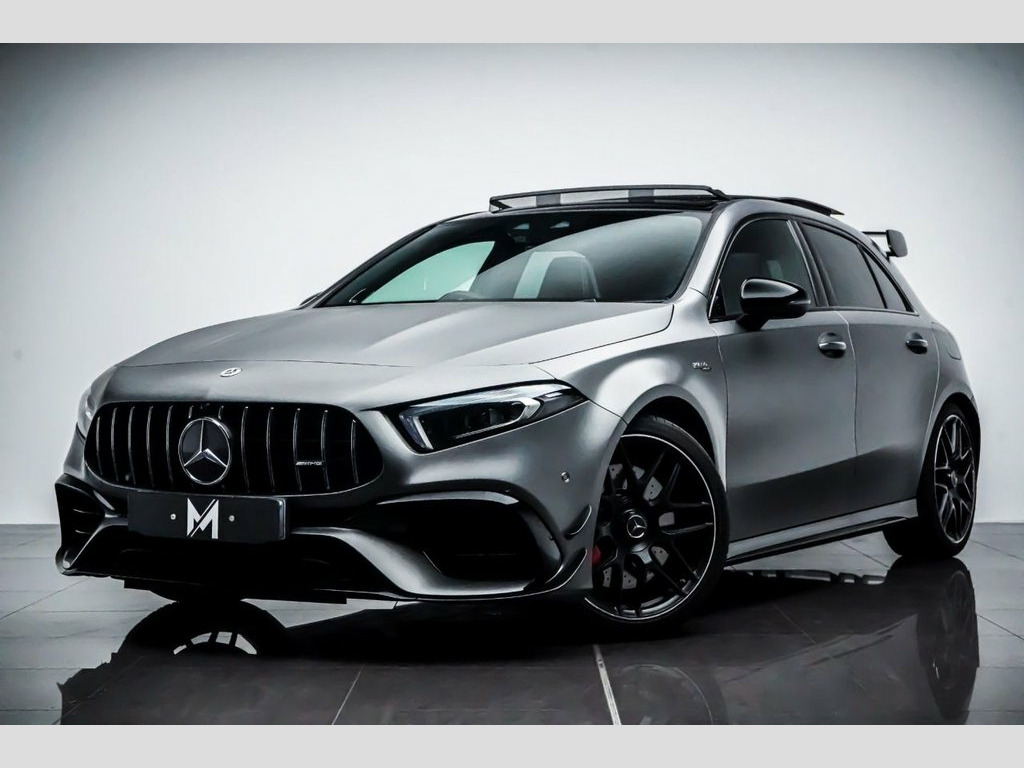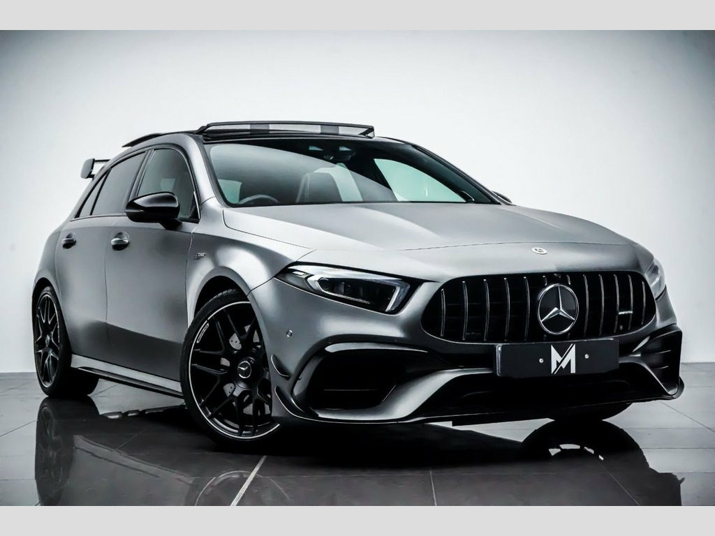 This Mercedes A45s is finished in Mountain Grey, Magno paint and this vehicle comes with the following specification - SLIDING PANORAMIC ROOF | APPLE CARPLAY | ACTIVE PARKING ASSIST | REAR-VIEW CAMERA | ACTIVE LANE KEEPING ASSIST | AMG DRIVER'S PACKAGE | MEMORY PACKAGE | ELECTRICALLY FOLDING EXTERIOR MIRRORS | FRONT WIRELESS TELEPHONE CHARGING | AMG EXCLUSIVE PACKAGE | AMG EXTERIOR NIGHT PACKAGE. 10.25in Media Display, 19in Alloy Wheels - AMG Forged Cross-Spo, ABS - Anti-Lock Braking System with BAS , Active Bonnet - Pedestrian Safety Measur, Active Brake ASSIST, Active Lane Keeping Assist, Adaptive Brake Assist with Hold Function, Adaptive Brake Lights, Air Conditioning - THERMOTRONIC Luxury A, Air Vents - Black with Silver Chrome Ele, Airbag - Kneebag for Driver, Airbags - Dual Stage - Driver and Front , Airbags - Head and Sidebags - Driver and, Airbags - Windowbags for Driver and Fron, Alarm System with Immobiliser and Interi, AMG A 45 S Bodystyling, AMG Aerodynamics Package, AMG Bodystyling - AMG Front Apron with F, AMG Centre Console - Decidedly Sporty wi, AMG Centre Console is