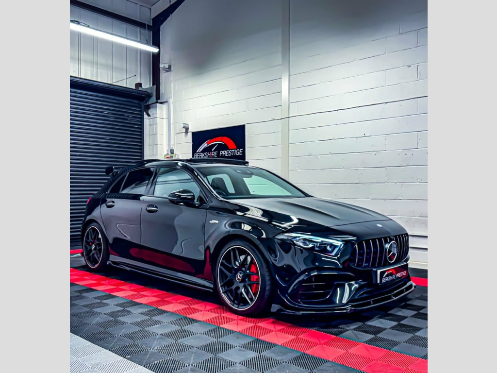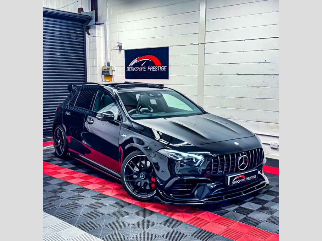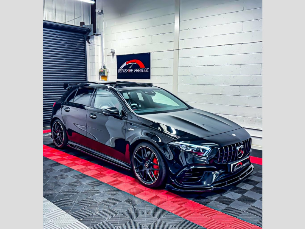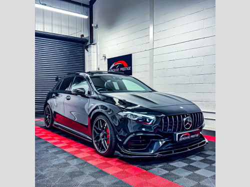 MERCEDES A45S AMG PLUS FINISHED IN COSMOS BLACK, AMAZING SPEC, MAXTON DESIGN KIT, PANORAMIC GLASS SUNROOF,HEAD UP DISPLAY, TRACK PACK, AMG SPORTS EXHAUST, BURMESTER SOUND, ADAPTIVE RADER CRUISE CONTROL, 360 CAMERA, RACE MODE/DRIFT MODE, RED LEATHER AMG BUCKET SEATS, EVENTURI INTAKE PLUS MUCH MORE, THIS CAR COMES WITH MANUFACTURES WARRANTY UNTIL JULY 2026 AND HAS 1 SERVICE PACK REMAINING ON THE CAR, FULL SERVICE HISTORY AND COMES WITH 2 KEYS 19in Alloy Wheels - AMG Cross-Spoke Forg, ABS - Anti-Lock Braking System with BAS , AMG A 45 S Bodystyling, AMG Aerodynamics Package, AMG Bodystyling - AMG Front Apron with F, AMG Brushed Stainless Steel Sports Pedal, AMG Centre Console - Decidedly Sporty wi, AMG Centre Console is Finished with Trim, AMG Drivers Package, AMG Illuminated Door Sills with AMG Lett, AMG Leather Package, AMG Menu with Sporty Additional Informat, AMG Night Package, AMG Performance 4MATIC Plus with Torque , AMG Speed-Sensitive Steering with Two Se, AMG Suspension, AMG Track Pace, ATTENTION Assist, Active Bonnet - Pedestrian Safety Measur, Active Brake ASSIST, Active Lane Keeping Assist, Adaptive Brake Assist with H