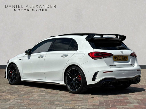 SLIDING PANORAMIC SUNROOF | APPLE CARPLAY | REVERSING CAMERA | BURMESTER SOUND SYSTEM | HEATED SEATS | WHITE | 12 MONTH MOT | FULL SERVICE HISTORY | FINANCE AVAILABLE FROM 9.9% APR SUBJECT TO STATUS | 10.25in Media Display, 19in Alloy Wheels - AMG Forged Cross-Spo, ABS - Anti-Lock Braking System with BAS , AMG A 45 S Bodystyling, AMG Aerodynamics Package, AMG Bodystyling - Front and Rear Apron, AMG Centre Console - Decidedly Sporty wi, AMG Centre Console is Finished with Trim, AMG Drive Unit including AMG Dynamic Sel, AMG Drivers Package with Top Speed of 17, AMG Dynamic Select with a Choice of Driv, AMG High-Performance Braking System with, AMG Instrument Cluster with Colour Displ, AMG Leather Package, AMG Night Package, AMG Speed-Sensitive Steering with Two Se, AMG Sports Pedals in Brushed Stainless S, AMG Sports Suspension, AMG Track Pace - Records Lap Times on th, ATTENTION Assist, Ac