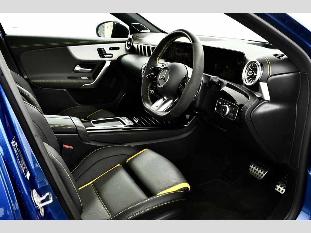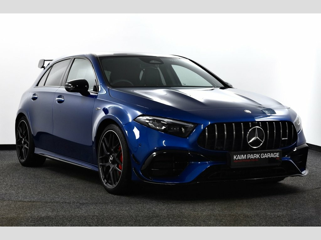 ***JUST LANDED .. AWAITING PREPARATION .. HD IMAGES & VIDEO TO FOLLOW .. PLEASE CALL 01506 676811**... Spectral Blue metallic with Two tone leather - Titanium Grey Pearl/Black with yellow stitching + contrast stitching on dashboard and door panel, 1 Owner covered only 5k miles & backed with Full Mercedes Service History, We are delighted to offer to the market this Gorgeous and rare A45 AMG S Plus finished in the best colour combo and complemented with Massive Specification, Simply Stunning! SPECIFICATION INCLUDES - Panoramic sliding sunroof, Head up Display, AMG real performance exhaust sound system, Aerodynamic pack, AMG Driver's pack, AMG night pack, Light and sight pack, Mirror package, Parking pack with 360 degree camera, AMG performance high-end seat pack, AMG DYNAMIC SELECT with drive modes(Slippery, Comfort, Sport, Sport+, Individual and Race) incl drift mode via steering wheel shift paddles+Race Start, AMG high performance brake system with red painted brake callipers, AMG menu with sporty additional information, Blind spot assist, Easy pack tailgate hands-free access, Lane keeping system, AMG performance 4MATIC+ with torque control, AMG suspension including AMG specific axles and sporty spring/damper setup, Suspension with adaptive damping system, AMG A45 S bodystyling -rear apron, four vertical fins, side sill panels, roof spoiler lip, specific front apron, diffuser look and S label on boot lid, Electric adjustable and heated door mirrors with integr Spectral Blue, Two-Tone Leather - Titanium Grey Pearl -