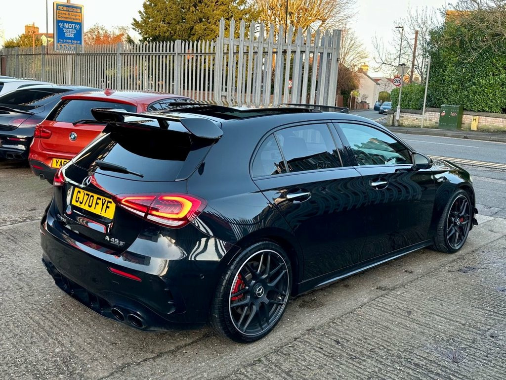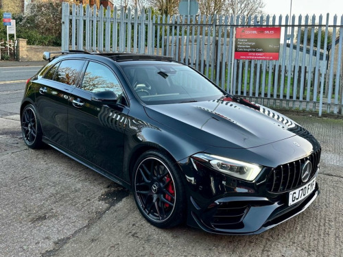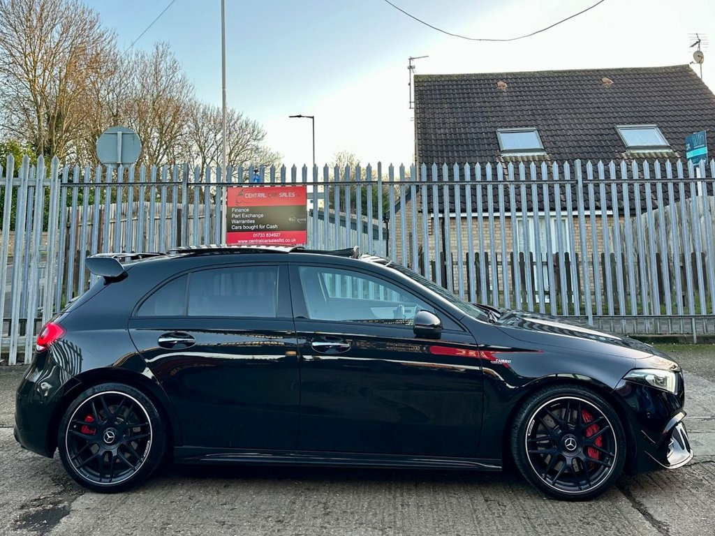 3 MONTHS WARRANTY+FULL MERCEDES SERVICE HISTORY+1 FORMER KEEPER+UPGRADED SPORTS EXHAUST+TILT/SLIDE PANORAMIC GLASS ROOF+BURMESTER SOUND SYSTEM+KEYLESS ENTRY/KEYLESS START+FULL BLACK/YELLOW AMG BUCKET SEATS+ELECTRIC MEMORY SEATS+HEATED SEATS+ELECTRIC FOLDING MIRRORS+10.25-INCH TOUCHSCREEN SATELLITE NAVIGATION SYSTEM+APPLE CAR PLAY+ANDROID AUTO+AMBIENT LIGHTING+AMG AERO KIT+AMG STEERING WHEEL BUTTONS+AMG NIGHT PACKAGE+AMG RED CALIPERS+AMG ADAPTIVE DAMPING SUSPENSION+REVERSE CAMERA+FRONT/REAR PARKING SENSORS+LED DAYTIME RUNNING LIGHTS+XENON HEADLIGHTS+CRUISE CONTROL+MULTI FUNCTIONAL STEERING WHEEL+PADDLESHIFT GEAR SELECTORS+RADIO/CD/USB/BLUETOOTH+PRIVACY GLASS+AMG FORGED CROSS SPOKE 19" ALLOYS+2 KEYS+FIRST TO SEE WILL DEFINITELY BUY!!+HPI Clear, Vosa verified mileage, Cheaper Insurance Tax Band, Excellent mpg!!!...P/X POSSIBLE...ANY INSPECTION/TRIAL WELCOME...Very clean car inside and out, Ready to drive away, After hours viewing available by appointment call on 01733 834927...This vehicle comes with a 3 MONTHS ENGINE AND GEARBOX BACK TO BASE WARRANTY, OPEN 7 DAYS TO APPLY FOR FINANCE SIMPLY VISIT www.centralcarsalesltd.co.uk AND FILL THE FINANCE CALCULATOR UNDER YOUR CHOSEN VEHICLE!+Black, Upgrades - Two-Tone Leather - Titanium Grey Pearl - Black with Yellow Stitching, Standard Features - 10.25in Media Display, 19in Alloy Wheels - AMG Forged Cross-Spoke - Painted Matt Black with a High-Sheen Rim Flange, ABS - Anti-Lock Braking System with BAS - Brake Assist, AMG A 45 S Bod 10.25in Media Display, 19in Alloy Wheels - AMG Forged Cross-Spo, ABS - Anti-Lock Braking System with BAS , AMG A 45 S Bodystyling, AMG Aerodynamics Package, AMG Bodystyling - Front and Rear Apron, AMG Centre Console - Decidedly Sporty wi, AMG Centre Console is Finished with Trim, AMG Drive Unit including AMG Dynamic Sel, AMG Drivers Package with Top Speed of 17, AMG Dynamic Select with a Choice of Driv, AMG High-Performance Braking System with, AMG Instrument Cluster with Colour Displ, AMG Leather Package, AMG Night Package, AMG Speed-Sensitive Steering with Two Se, AMG Sports Pedals in Brushed Stainless S, AMG Sports Suspension, AMG Track Pace - Records Lap Times on th, ATTENTION Assist, Ac