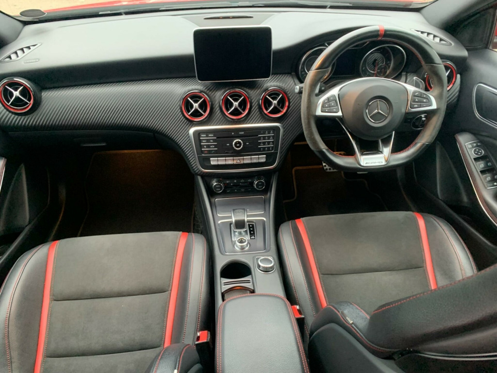 IN JUPITER RED WITH LEATHER & ALCANTARA HEATED SPORTS SEATS WITH RED SEAT BELTS, SATELLITE NAVIGATION, TOUCH SCREEN MEDIA WITH BLUE TOOTH CONNECTIVITY, CAR PLAY, A BEAUTIFUL STANDARD EXAMPLE WITH MERCEDES FULL SERVICE HISTORY - LOW RATE FINANCE AVAILABLE tico leather-dinamica microfibre - black with red contrast stitching, 18in alloy wheels - amg 10 spoke design - painted in titanium grey with high-sheen finish, 4matic badge on boot lid, 8-inch tablet-style colour display, abs - anti-lock braking system, amg a-wing front air intake, amg bodystyling - front and rear apron, amg bodystyling - side skirts, amg diffuser-look rear apron, amg drive unit including amg dynamic select controller, amg instrument cluster with colour display and amg menu, amg performance seats - contoured seat shape - head restraints and amg badge, amg radiator grille with twin louvre in silver chrome and amg lettering, asr - acceleration skid control, attention assist, active bonnet - pedestrian safety measure which detects an impact and raises bonnet by 65mm, active park assist with parktronic, adaptive brake assist with hold function and hill start assist, adaptive brake lights, air vents with high gloss black surround - red insert and cruciform nozzle, airbag - drivers knee, airbag - dual-stage - front passenger, airbags - dual-stage - driver, airbags - head for driver and front passenger, airbags - windowbags for driver and front passenger, alarm system with interior protection, ambient lighting - 12 colours, ambient lighting - interior door handles, ambient lighting in front and rear headrests, audio 20 radio-cd-mp3 compatibility, auto dimming rear view mirror, automatic child seat recognition sensor, bas - brake assist, beltline strips - chrome, bluetooth, brake calipers - red with amg lettering, brushed stainless steel sports pedals with rubber studs, bumpers - body-coloured, centre armrest - front with storage, childproof locks - manually operated for rear doors and electrically operated for rear power windows, chrome-effect electronic key - master key with amg emblem, collision prevention assist plus, controller on centre console with chrome surround, crash sensor with emergency opening function for doors, crash-responsive emergency lighting, cruise control with speedtronic variable speed limiter, cup holder - twin, dab digital radio tuner, door handles - body-coloured, door mirrors - body coloured, door mirrors - drivers automatically dimming, door mirrors - electrically folding, door mirrors - integrated led indicators, door sill panels - illuminated with amg lettering in front, dynamic select with a choice of driving modes - eco-comfort-sport+-individual, esp - electronic stability programme, esp cornering dynamics assist, electric parking brake, exhaust system - amg with two chrome-plated tailpipes, first aid kit, floor mats - red stitched edging - amg lettering, fluid level warning indicator for fuel - oil - coolant and washer fluid, footwell lighting - front and rear, glove compartment - illuminated, headlight assist - automatic headlight activation, headlights - adaptive high beam assist, headlights - integrated daytime running lights - led, headlights - led, heated rear window with timer control, heated windscreen washer system, high level third brake light - led, isofix and top-tether child seat fixing points in rear - two outer seats, illuminated storage compartment in centre console, illuminated vanity mirrors, immobiliser, indicators - lane change function, instrument cluster with 4 analogue dials and needles suspended in six-o-clock position, light failure indicator, load-securing rings in luggage compartment, luggage compartment cover, media interface, mercedes me connect, outside temperature gauge, parking sensor - front, parking sensor - rear, power steering - amg speed sensitive sports, race start function, radio aerial roof spoiler, rain-sensing windscreen wipers, reading lights - front and rear, rear seats - split folding 1-3 - 2-3, rear tail lights - led, rear windscreen wiper, remote central locking, reversing camera with parking guidelines - 180 degree view, roof lining - black, sd memory card slot, satellite navigation - garmin map pilot, seat belt reminder - front and rear, seat comfort package, seat occupancy sensor - front passenger seat, seats - cushion angle adjustment for front, seats - front manually adjustable, seats - heated front, seats - height adjusters, service indicator assyst, side skirts - body-coloured, sidebags for driver and front passenger, speakers x6, steering column - manually adjustable for height and reach, steering wheel - 3 spoke amg performance trimmed in nappa leather-dinamica microfibre, steering wheel - aluminium gear shift paddles, steering wheel - multi-function, steering wheel - red 12 o'clock marker and amg lettering, sun visors with illuminated vanity mirrors, suspension - amg sports, tirefit tyre-sealant kit, telephone keypad, thermotronic automatic climate control - two zone, trim - carbon-fibre look, trip computer, twin radio tuner - fm-am, tyre pressure monitoring system, usb ports in centre console x2, voice control, warning triangle, windows - electric x4, designo seat belts - red, ecall - emergency call system