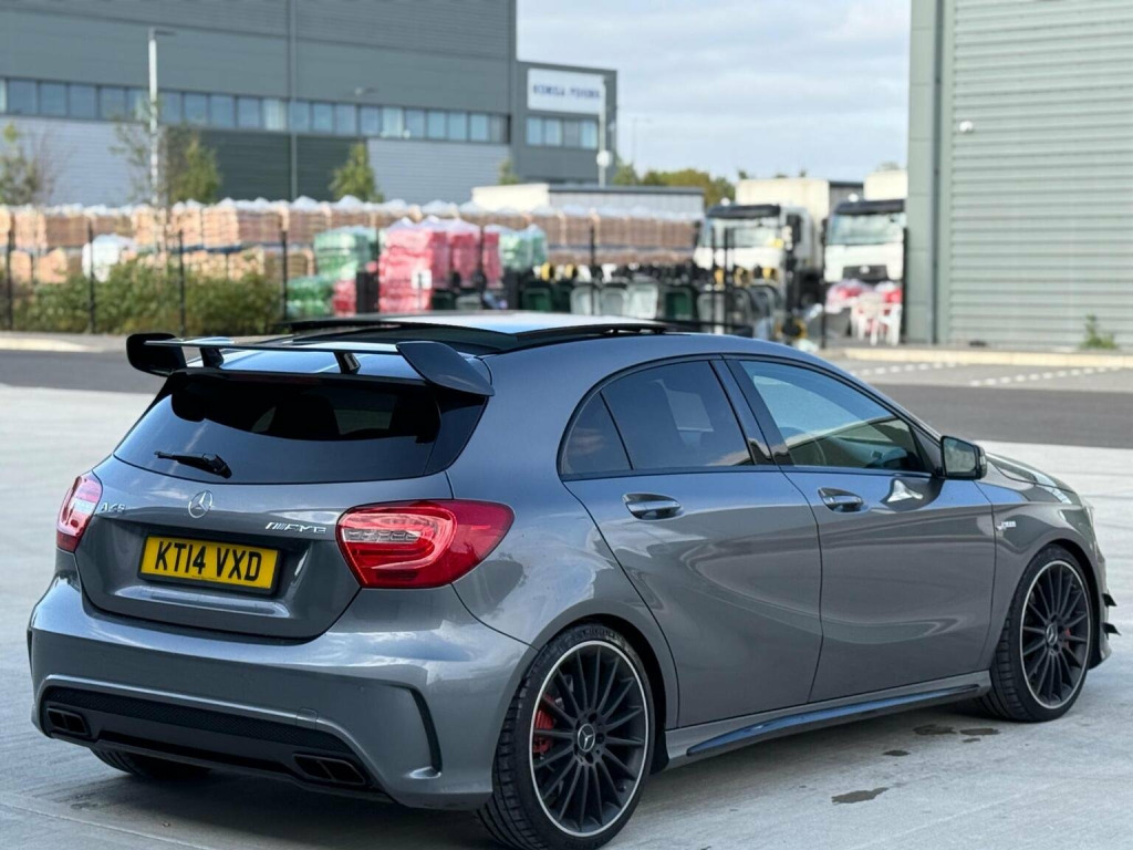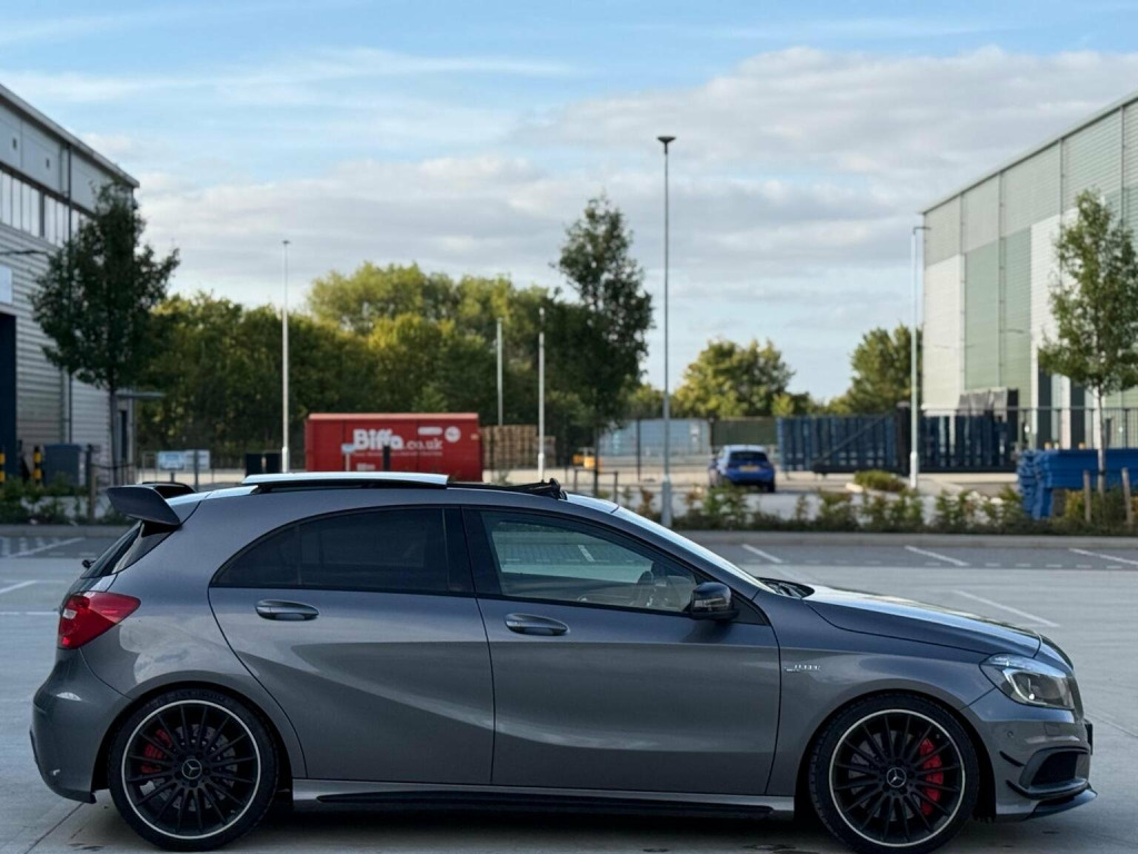 This 2014 Mercedes-Benz A-Class 2.0 A45 AMG SpdS DCT 4MATIC Euro 6 (s/s) 5dr Hatchback is currently available for £14,594 in Buckinghamshire with Petrol engine and Auto Clutch Manual gearbox. For more information or to arrange a viewing, click here to send us an email using form below.