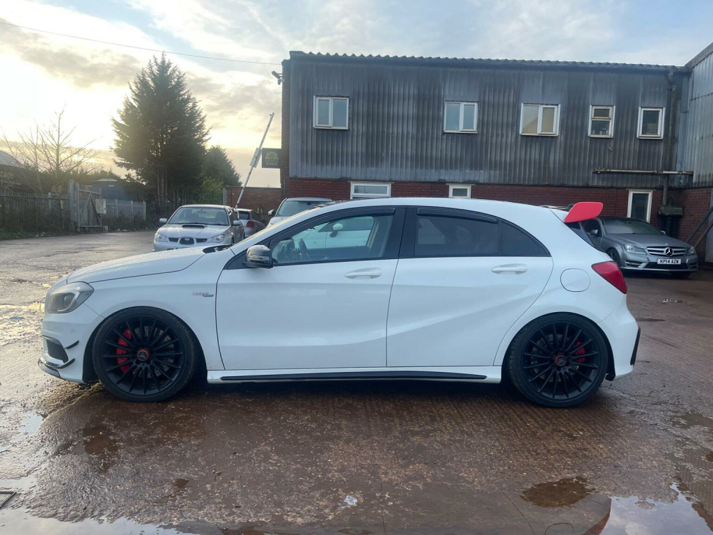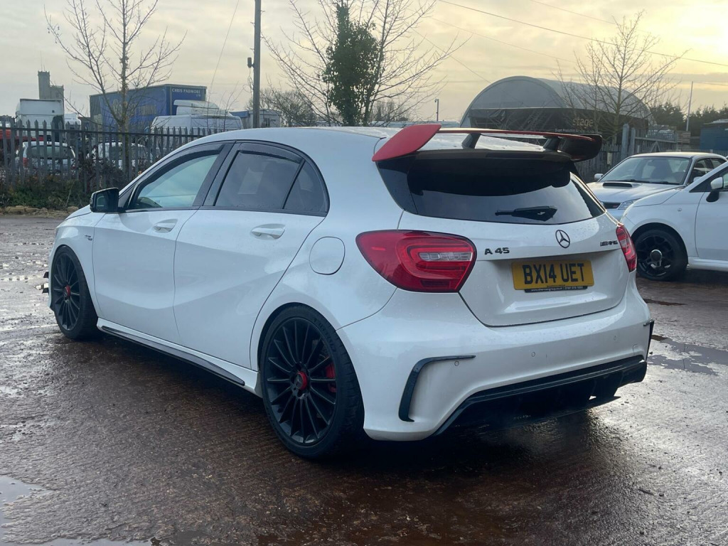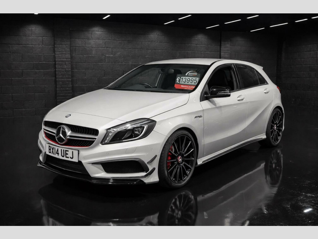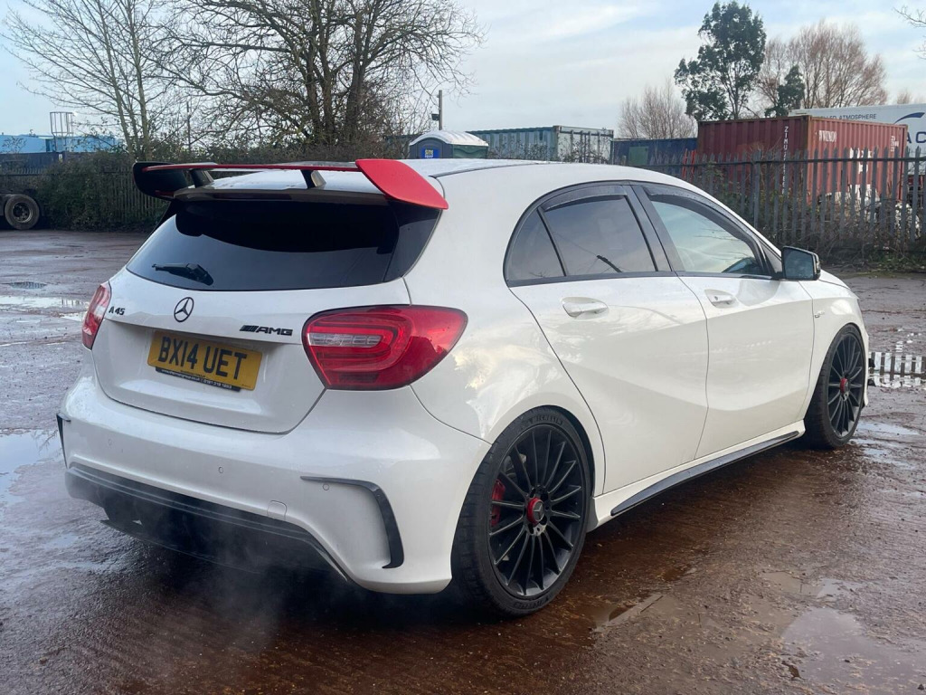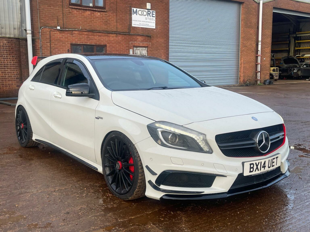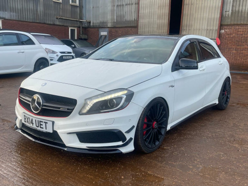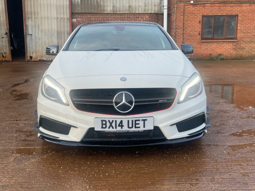 This 2014 Mercedes-Benz A-Class 2.0 A45 AMG SpdS DCT 4MATIC Euro 6 (s/s) 5dr Hatchback is currently available for £13,995 in Peterborough Cambridgeshire with Petrol engine and Auto Clutch Manual gearbox. For more information or to arrange a viewing, click here to send us an email using form below.