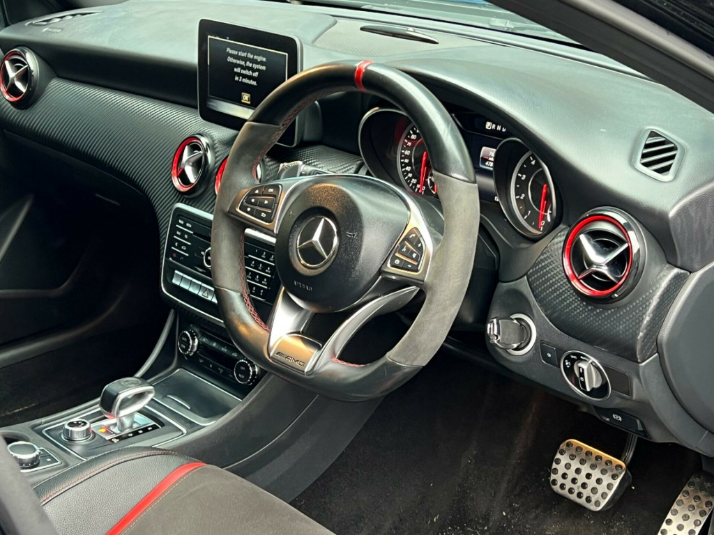This 2017 Mercedes-Benz A-Class 2.0 A45 AMG SpdS DCT 4MATIC Euro 6 (s/s) 5dr Hatchback is currently available for £19,490 in Halifax West Yorkshire with Petrol engine and Automatic gearbox. For more information or to arrange a viewing, click here to send us an email using form below.