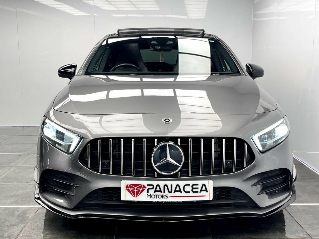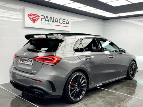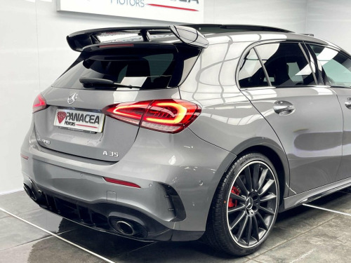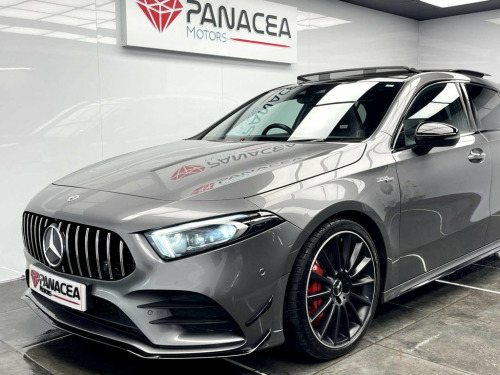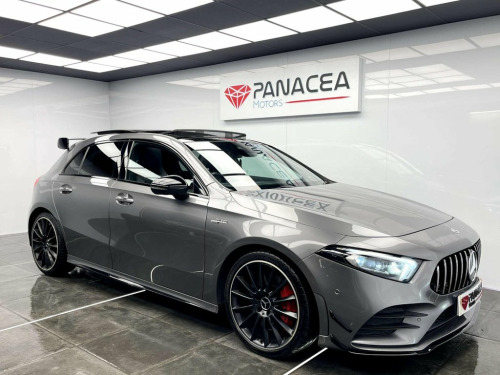 MERCEDES BENZ A-CLASS A35 AMG AMG LINE HATCHBACK 5DR PETROL 7G-DCT EURO 6 306BHP FINISHED IN EXCLUSIVE GREY WITH FULL BLACK LEATHER INTERIOR. THIS HIGH SPECIFICATION EXAMPLE BOASTS THE FULL SERVICE RECORD. THIS VEHICLE INCLUDES | TILT AND SLIDE PANORAMIC GLASS ROOF | VIRTUAL DASHBOARD | UPGRADED 19INCH AMG ALLOYS | HEADS UP DISPLAY | HEATED SEATS | AMG AERO PACK | LAIN ASSIST | REVERSE CAMERA | MEMORY SEATS | REAR PARKING SENSORS | KEYLESS GO | BLACK STYLING PACK | BLACK REAR SPOILER | APPLE CAR PLAY | DAB | CRUISE CONTROL | BE FAST. - A RARE FIND IN THIS SPECIFICATION AND NOT TO BE MISSED.... Further to this all vehicles are provided with a comprehensive AA Dealer Care Extended Guarantee and Full AA Roadside, Recovery and Home Start & Onward travel (where not covered under the manufactures own warranty). HPI checks are carried out making sure all cars are clear from any concern, offering you total piece of mind. Every vehicle's mileage is fully guaranteed as genuine. Included with your purchase you will receive a minimum of 3 months Warranty with the option to extended and tailor your package at the time of purchase. Our vehicles are supplied fully valeted to the highest standards and include up to date servicing with a minimum of 9 months MOT. We are regulated by the FCA and can provide a range of flexible finance options, tailoring a package to your needs. We aim to a make the numbers work for you, including 0% deposit deals! We also offer a selection of other pro 18in Alloy Wheels - AMG 5 Twin Spoke Des, ABS - Anti-Lock Braking System with BAS , Active Bonnet - Pedestrian Safety Measur, Active Brake ASSIST, Active Lane Keeping Assist, Adaptive Brake Assist with Hold Function, Adaptive Brake Lights, Advanced Connectivity Package, Air Conditioning - THERMOTRONIC Luxury A, Air Vents with Surround and Cruciform No, Airbag - Kneebag for Driver, Airbags - Dual Stage - Driver and Front , Airbags - Head and Sidebags - Driver and, Airbags - Windowbags for Driver and Fron, Alarm System with Immobiliser and Interi, AMG Advanced Navigation Package, AMG Bodystyling - Front and Rear Apron a, AMG Night Package, AMG Radiator Grille with Twin Blade Lame, AMG Style Pa