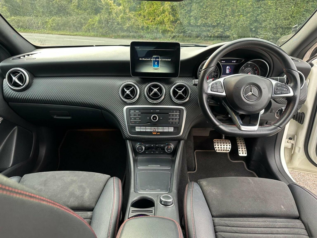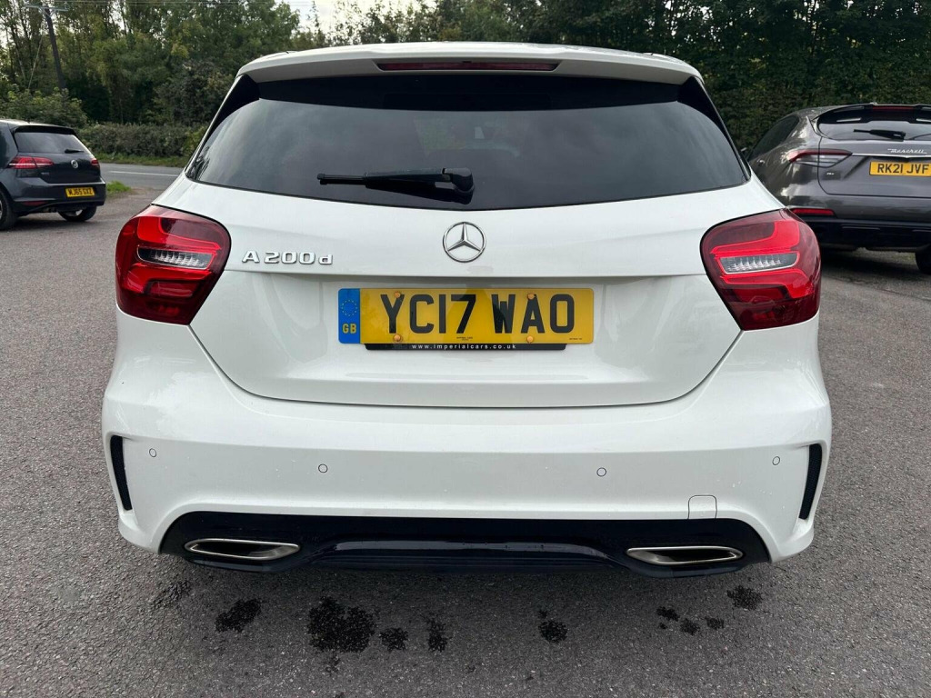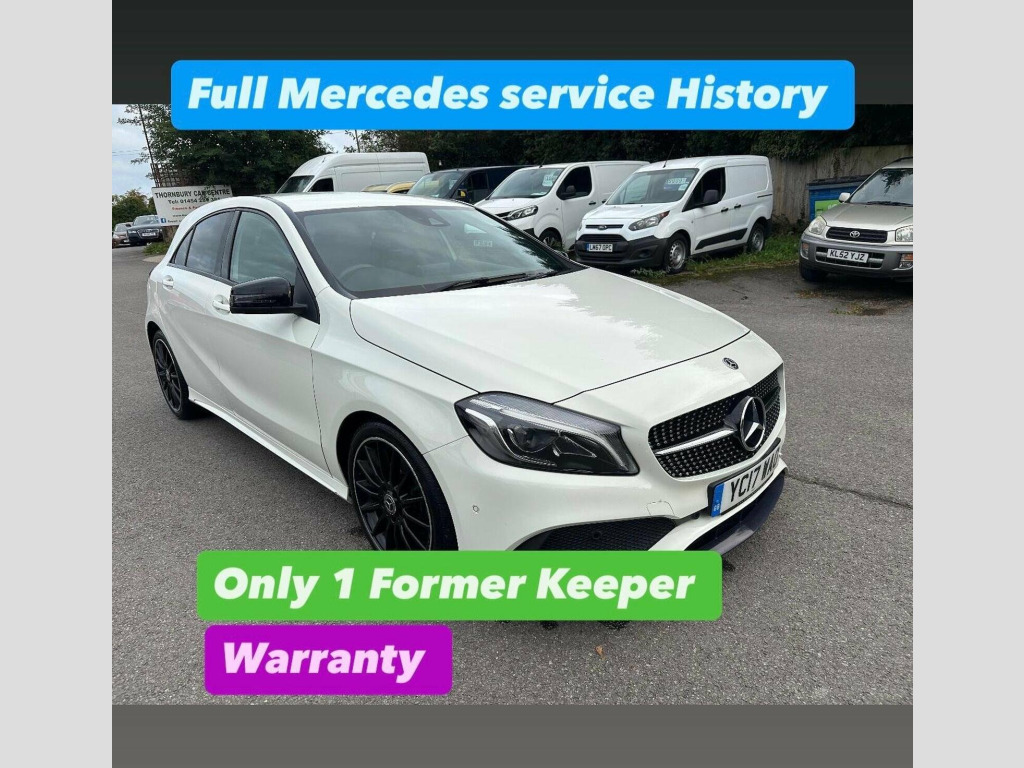 1 former keeper,full mercedes benz service history,This 2017 Mercedes Benz A Class A200d AMG Line (Premium) boasts a full dealership service history, with its last service completed on 20th August 2025 at 77,098 miles, and an MOT valid until April 2026.  This Euro 6 compliant 2.1L diesel engine is presented in the sought after AMG Line trim, enhanced by the desirable Night Package and AMG Exclusive Package.  Inside, youll find the premium experience amplified by the Lane Tracking Package, which includes Blind Spot Assistance, and a superb Harman Kardon Logic 7 surround sound system with Dolby Digital 5.1 and DTS. Remote Online Services are also included for added convenience. This A Class offers impressive efficiency, achieving a remarkable 71 miles per gallon, which is significantly better than many similar vehicles. Its low CO2 emissions further contribute to its economical running costs, alongside its low insurance group rating. Performance is also a strong point, with a brisk 0 to 62mph acceleration time of just 8.8 seconds, demonstrating a good balance of power and efficiency. Furthermore, youll appreciate the generous boot space, making it a practical choice for everyday use and longer journeys.