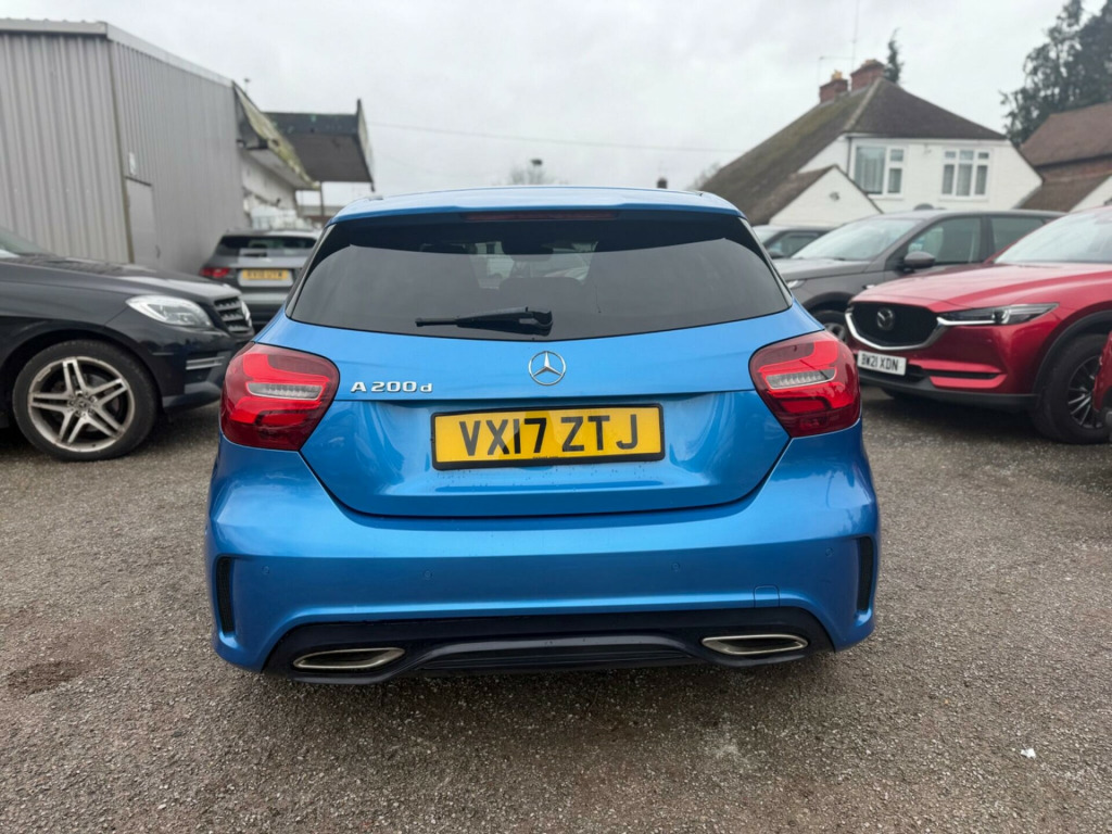 This 2017 Mercedes Benz A Class A200d AMG Line (Premium) boasts a clear vehicle history, offering peace of mind for its next owner. Powered by a 2.1 litre Euro 6 diesel engine, this model combines efficiency with performance, reaching 0-62mph in 9.3 seconds. The AMG Line trim enhances its sporty appeal, while the Premium designation adds desirable features such as front and rear parking sensors, a 180 degree reversing camera with guidelines, and heated front seats for added comfort. Bluetooth connectivity ensures seamless integration with your devices.This Mercedes Benz A Class stands out with its practical advantages, including a generous boot space that makes it ideal for everyday use and longer journeys. Furthermore, its placement in a low insurance group indicates that running costs are kept to a minimum, making it an economical choice compared to many other vehicles in its class. These highlights demonstrate the thoughtful design and value offered by this well equipped A200d AMG Line. in alloy wheels - amg 5-twin-spoke design - painted in titanium grey with a high sheen finish, 8-inch tablet-style colour display, abs - anti-lock braking system, amg bodystyling - front and rear apron, amg bodystyling - side skirts, asr - acceleration skid control, attention assist, active bonnet - pedestrian safety measure which detects an impact and raises bonnet by 65mm, active park assist with parktronic, adaptive brake assist with hold function and hill start assist, adaptive brake lights, air vents with black surround - petrol green insert and cruciform nozzle, airbag - drivers knee, airbag - dual-stage - front passenger, airbags - dual-stage - driver, airbags - head for driver and front passenger, airbags - windowbags for driver and front passenger, alarm system with interior protection, ambient lighting - 12 colours, ambient lighting - interior door handles, ambient lighting in front and rear headrests, audio 20 radio-cd-mp3 compatibility, auto dimming rear view mirror, automatic child seat recognition sensor, bas - brake assist, beltline strips - chrome, bluetooth, brake calipers - mercedes-benz lettering on front, brake-pad wear warning indicator, brushed stainless steel sports pedals with rubber studs, bumpers - body-coloured, centre armrest - front with storage, childproof locks - manually operated for rear doors and electrically operated for rear power windows, collision prevention assist plus, controller on centre console with chrome surround, crash sensor with emergency opening function for doors, crash-responsive emergency lighting, cup holder - twin, door handles - body-coloured, door mirrors - body coloured, door mirrors - drivers automatically dimming, door mirrors - electrically folding, door mirrors - integrated led indicators, door sill panels - mercedes-benz lettering - illuminated, dynamic select with a choice of driving modes - eco-comfort-sport and individual, esp - electronic stability programme, esp cornering dynamics assist, electric parking brake, electronic key - chrome surround, exhaust system - twin trapezoidal tailpipes in polished stainless steel, first aid kit, floor mats - red stitched edging - amg lettering, fluid level warning indicator for fuel - oil - coolant and washer fluid, footwell lighting - front and rear, gear shift trimmed in leather, glove compartment - illuminated, headlight assist - automatic headlight activation, headlights - halogen, headlights - high beam assist, headlights - integrated daytime running lights, headlights - led, heated rear window with timer control, high level third brake light - led, isofix and top-tether child seat fixing points in rear - two outer seats, illuminated storage compartment in centre console, illuminated vanity mirrors, immobiliser, indicators - lane change function, instrument cluster with 4 analogue dials and needles suspended in six-o-clock position, integrated head restraints, light failure indicator, load-securing rings in luggage compartment, luggage compartment cover, media interface, mercedes me connect, outside temperature gauge, parking sensor - front, parking sensor - rear, pre-wiring for garmin map pilot navigation system, premium package, radiator grille - diamond with pins in chrome and silver louvre with chrome insert, radio aerial roof spoiler, rain-sensing windscreen wipers, reading lights - front and rear, rear seats - split folding 1-3 - 2-3, rear windscreen wiper, remote central locking, reversing camera with parking guidelines - 180 degree view, roof lining - black, sd memory card slot, satellite navigation - garmin map pilot, seat belt reminder - front and rear, seat comfort package, seat occupancy sensor - front passenger seat, seats - cushion angle adjustment for front, seats - front cushion length adjustment, seats - front manually adjustable, seats - heated front, seats - height adjusters, seats - sports, service indicator assyst, shift indicator, side skirts - body-coloured, sidebags for driver and front passenger, speakers x6, sports direct steering - speed-sensitive power steering, steering column - manually adjustable for height and reach, steering wheel - 3-spoke leather with flattened lower section and perforated grip area, steering wheel - multi-function, storage compartment beneath load compartment floor, sun visors with illuminated vanity mirrors, suspension - comfort - lowered by 15mm, tirefit tyre-sealant kit, tail lights - partial led, telephone keypad, thermotronic automatic climate control - two zone, trim - carbon-fibre look, trip computer, twin radio tuner - fm-am, tyre pressure monitoring system, usb ports in centre console x2, voice control, warning triangle, windows - electric x4, ecall - emergency call system