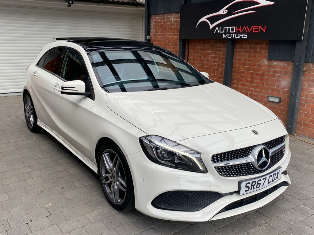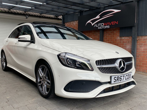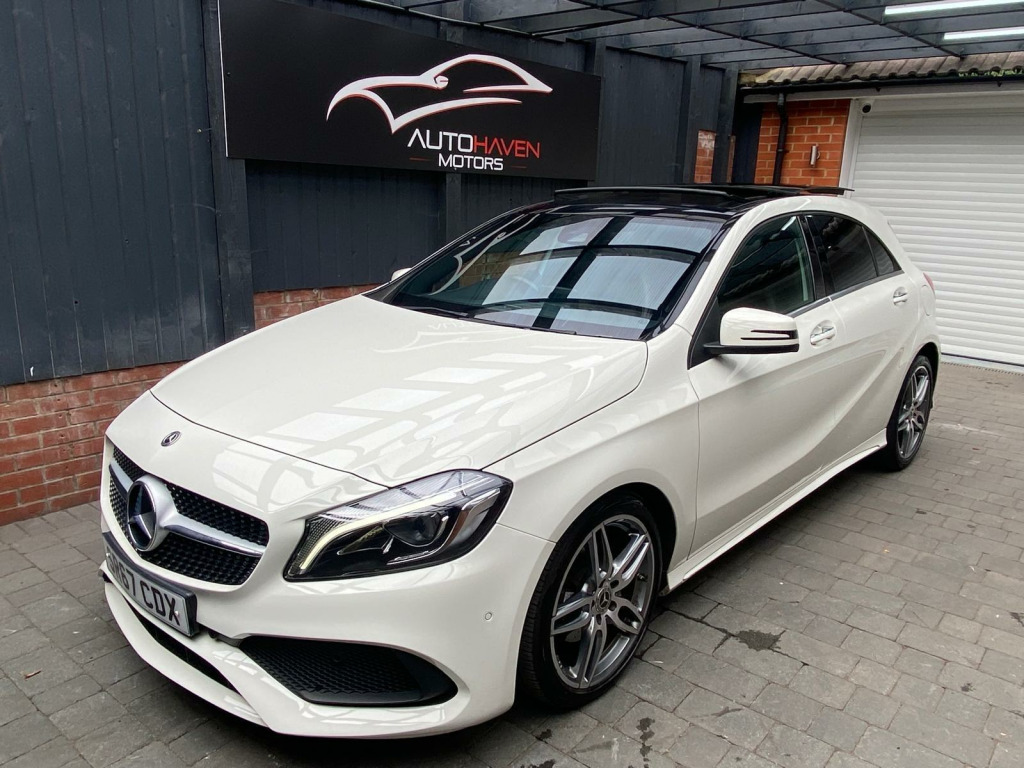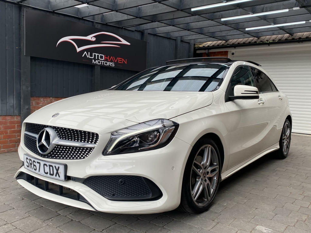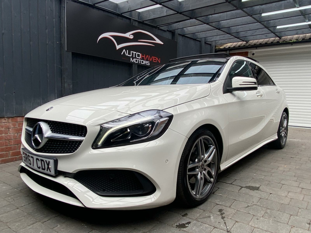 Autohaven Motors Limited are delighted to be offering a lovely 2018/67 Plate Mercedes-Benz A Class 2.1 A200d AMG Line (Premium Plus) 7G-DCT Euro 6 (s/s) 5dr. This is a 2 OWNER CAR FROM NEW.This 2018 Mercedes Benz A Class A200d AMG Line (Premium Plus) boasts an exceptionally low mileage of just 44,005 miles, significantly less than expected for its age, and benefits from a full service history with its last service completed on 21 10 2025 at 43,995 miles. This Euro 6 compliant 2.1L diesel engine is presented with a clear vehicle history check and an MOT valid until October 2026, offering peace of mind alongside a 3 month warranty. The AMG Line trim enhances its sporty appeal, while notable features include THERMOTRONIC luxury automatic climate control for two zones, a 180 degree reversing camera with parking guidelines, and automatic headlamp activation for convenience. It also comes with the PANARAMIC GLASS SUNROOF which looks superb and comes with the interior LED lights with changeable colour moods.This A Class stands out with its impressive fuel economy, achieving an excellent 71 mpg, and its low CO2 emissions make it an environmentally conscious choice. The acceleration is brisk, reaching 0-62mph in just 8.8 seconds, demonstrating a good balance of performance and efficiency. Furthermore, its low insurance group rating suggests lower running costs, and the large boot space provides practical versatility for everyday needs and longer journeys, making this Mercedes Benz A Class a compelling option compared to similar vehicles.Comes with 2 KEYS all the manuals. OUR CARS ARE READY TO BE DRIVEN AWAY SAME DAY. Please call for more info. VIEWING BY APPOINTMENT ONLY. AVAILABLE MONDAY- SUNDAY 9AM TILL LATE. **PRICED VERY COMPETITIVELY** NATIONWIDE DELIVERY AVAILABLE. in alloy wheels - amg 5-twin-spoke design - painted in titanium grey with a high sheen finish, abs - anti-lock braking system with bas - brake assist, amg bodystyling - front and rear apron and side skirts, attention assist, active bonnet - pedestrian safety measure which detects an impact and raises bonnet by 65mm, active braking assist, adaptive brake assist with hold function and hill start assist, adaptive brake lights, air vents with surround and cruciform nozzle in silver chrome, airbags - dual stage - driver and front passenger, airbags - head and sidebags - driver and front passenger, airbags - windowbags for driver and front passenger, alarm system with immobiliser and interior protection - thatcham category 1, ambient lighting in headrests and interior door handles, audio 20 radio-cd-mp3 compatibility, automatic child seat recognition sensor, beltline strips - chrome, bodystyling - side skirts - body-coloured, brake calipers - mercedes-benz lettering on front, brake-pad wear warning indicator, brushed stainless steel sports pedals with rubber studs, bumpers - body coloured, centre armrest - front with stowage, childproof locks - manually operated for rear doors and electrically operated for rear power windows, controller on centre console with chrome surround, crash-responsive emergency lighting, cruise control with limiter, cup holder - double - front, direct select shift lever with steering wheel shift paddles, direction indicators with lane-changer function, door handles - body coloured, door mirrors - electrically adjustable and heated with integrated led indicators, door mirrors - mirror housing in body-colour, drivers kneebag, dynamic select with a choice of driving modes - eco-comfort-sport and individual, esp - electronic stability programme with asr - acceleration skid control, esp cornering dynamics assist, electric parking brake, electric windows - 4, electronic key - chrome surround, exhaust system - twin trapezoidal tailpipes in polished stainless steel, first aid kit and warning triangle, floor mats - red stitched edging - amg lettering, fluid level warning indicator for fuel - oil - coolant and washer fluid, footwell lighting - front and rear, glass - rear windscreen - heated with timer control, glove compartment - illuminated, headlamp assist - automatic headlamp activation, high level third brake light - led, isofix and top-tether child seat fixing points in rear - two outer seats, illuminated front door sills with mercedes-benz lettering, illumination - storage compartment, instrument cluster with four analogue dials and needles suspended in six-o-clock position, keyless-go starting function, light failure indicator, lighting in stowage compartment and vanity mirrors, luggage compartment cover, media display - 8in, media interface, mercedes connect me, outside temperature gauge, part led tail lights, power steering - sports direct steer system with speed sensitive servo assistance, premium plus package, radiator grille - diamond with pins in chrome and silver louvre with chrome insert, radio aerial roof spoiler, rain-sensing windscreen wipers with two sensitivity settings, reading lights and console light in front and rear, rear fog light, rear seats - split folding 1-3 2-3, rear view mirror - additional lighting, rear windscreen wiper, remote central locking and crash sensor with emergency opening function, reversing camera with parking guidelines - 180 degree view, roof lining - black, seat belts - rear three-point - 3, seat belts reminder - front and rear, seat comfort package, seat occupancy sensor - front passenger seat, seats - front cushion length adjustment, seats - front manually adjustable, service indicator assyst, smartphone integration, sports seats with integrated head restraints, steering column - manually adjustable for height and reach, steering wheel - 3-spoke multi-function - trimmed in leather with perforated leather in grip area and flattened bottom section, storage compartment beneath load compartment floor, suspension - comfort - lowered by 20mm front and 15mm rear, thermotronic luxury automatic climate control - two-zone with display, tirefit tyre-sealant kit, trim - carbon-fibr