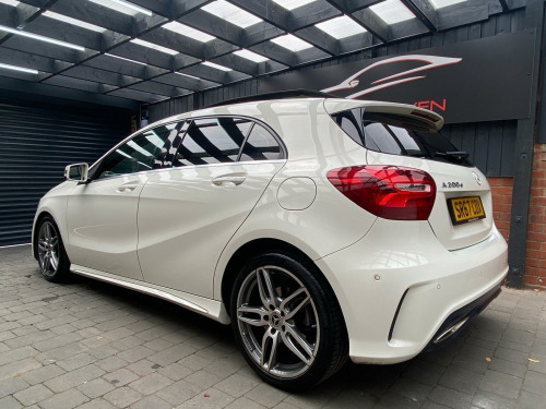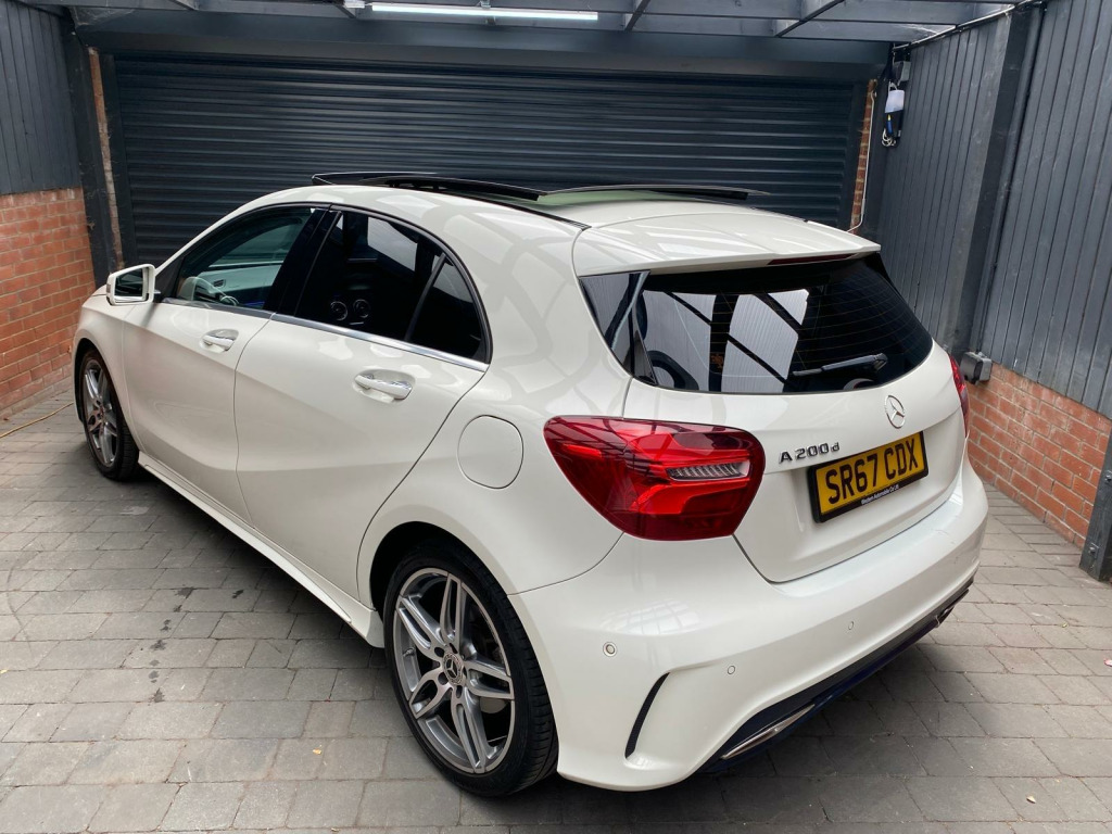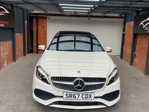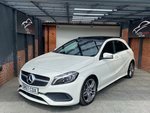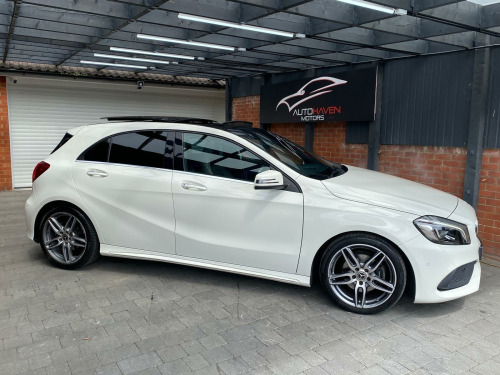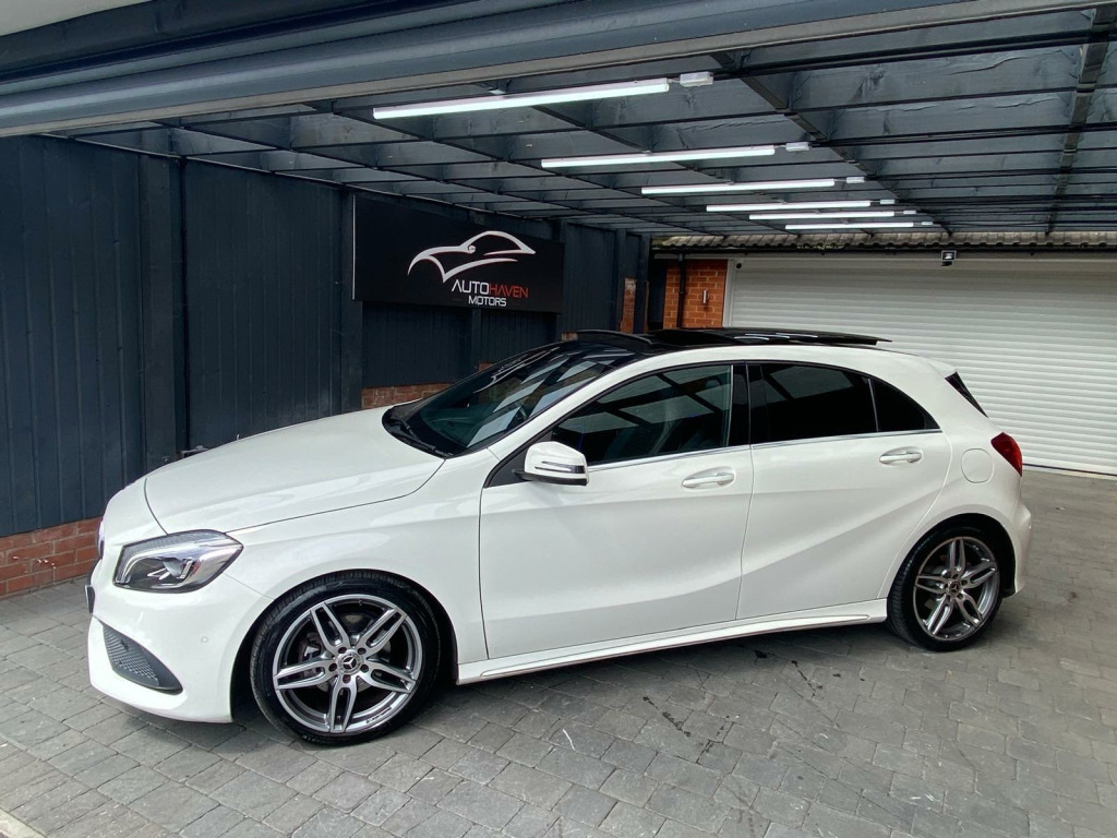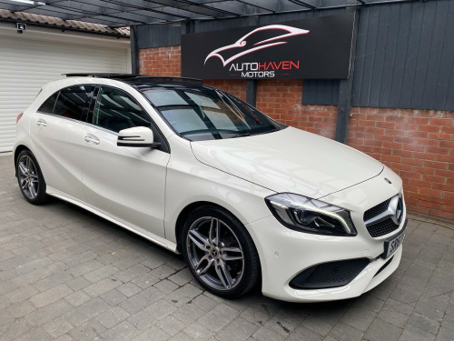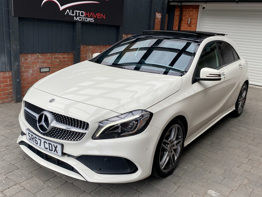 Autohaven Motors Limited are delighted to be offering a lovely 2018/67 Plate Mercedes-Benz A Class 2.1 A200d AMG Line (Premium Plus) 7G-DCT Euro 6 (s/s) 5dr. This is a 2 OWNER CAR FROM NEW.This 2018 Mercedes Benz A Class A200d AMG Line (Premium Plus) boasts an exceptionally low mileage of just 44,005 miles, significantly less than expected for its age, and benefits from a full service history with its last service completed on 21 10 2025 at 43,995 miles. This Euro 6 compliant 2.1L diesel engine is presented with a clear vehicle history check and an MOT valid until October 2026, offering peace of mind alongside a 3 month warranty. The AMG Line trim enhances its sporty appeal, while notable features include THERMOTRONIC luxury automatic climate control for two zones, a 180 degree reversing camera with parking guidelines, and automatic headlamp activation for convenience. It also comes with the PANARAMIC GLASS SUNROOF which looks superb and comes with the interior LED lights with changeable colour moods.This A Class stands out with its impressive fuel economy, achieving an excellent 71 mpg, and its low CO2 emissions make it an environmentally conscious choice. The acceleration is brisk, reaching 0-62mph in just 8.8 seconds, demonstrating a good balance of performance and efficiency. Furthermore, its low insurance group rating suggests lower running costs, and the large boot space provides practical versatility for everyday needs and longer journeys, making this Mercedes Benz A Class a compelling option compared to similar vehicles.Comes with 2 KEYS all the manuals. OUR CARS ARE READY TO BE DRIVEN AWAY SAME DAY. Please call for more info. VIEWING BY APPOINTMENT ONLY. AVAILABLE MONDAY- SUNDAY 9AM TILL LATE. **PRICED VERY COMPETITIVELY** NATIONWIDE DELIVERY AVAILABLE. in alloy wheels - amg 5-twin-spoke design - painted in titanium grey with a high sheen finish, abs - anti-lock braking system with bas - brake assist, amg bodystyling - front and rear apron and side skirts, attention assist, active bonnet - pedestrian safety measure which detects an impact and raises bonnet by 65mm, active braking assist, adaptive brake assist with hold function and hill start assist, adaptive brake lights, air vents with surround and cruciform nozzle in silver chrome, airbags - dual stage - driver and front passenger, airbags - head and sidebags - driver and front passenger, airbags - windowbags for driver and front passenger, alarm system with immobiliser and interior protection - thatcham category 1, ambient lighting in headrests and interior door handles, audio 20 radio-cd-mp3 compatibility, automatic child seat recognition sensor, beltline strips - chrome, bodystyling - side skirts - body-coloured, brake calipers - mercedes-benz lettering on front, brake-pad wear warning indicator, brushed stainless steel sports pedals with rubber studs, bumpers - body coloured, centre armrest - front with stowage, childproof locks - manually operated for rear doors and electrically operated for rear power windows, controller on centre console with chrome surround, crash-responsive emergency lighting, cruise control with limiter, cup holder - double - front, direct select shift lever with steering wheel shift paddles, direction indicators with lane-changer function, door handles - body coloured, door mirrors - electrically adjustable and heated with integrated led indicators, door mirrors - mirror housing in body-colour, drivers kneebag, dynamic select with a choice of driving modes - eco-comfort-sport and individual, esp - electronic stability programme with asr - acceleration skid control, esp cornering dynamics assist, electric parking brake, electric windows - 4, electronic key - chrome surround, exhaust system - twin trapezoidal tailpipes in polished stainless steel, first aid kit and warning triangle, floor mats - red stitched edging - amg lettering, fluid level warning indicator for fuel - oil - coolant and washer fluid, footwell lighting - front and rear, glass - rear windscreen - heated with timer control, glove compartment - illuminated, headlamp assist - automatic headlamp activation, high level third brake light - led, isofix and top-tether child seat fixing points in rear - two outer seats, illuminated front door sills with mercedes-benz lettering, illumination - storage compartment, instrument cluster with four analogue dials and needles suspended in six-o-clock position, keyless-go starting function, light failure indicator, lighting in stowage compartment and vanity mirrors, luggage compartment cover, media display - 8in, media interface, mercedes connect me, outside temperature gauge, part led tail lights, power steering - sports direct steer system with speed sensitive servo assistance, premium plus package, radiator grille - diamond with pins in chrome and silver louvre with chrome insert, radio aerial roof spoiler, rain-sensing windscreen wipers with two sensitivity settings, reading lights and console light in front and rear, rear fog light, rear seats - split folding 1-3 2-3, rear view mirror - additional lighting, rear windscreen wiper, remote central locking and crash sensor with emergency opening function, reversing camera with parking guidelines - 180 degree view, roof lining - black, seat belts - rear three-point - 3, seat belts reminder - front and rear, seat comfort package, seat occupancy sensor - front passenger seat, seats - front cushion length adjustment, seats - front manually adjustable, service indicator assyst, smartphone integration, sports seats with integrated head restraints, steering column - manually adjustable for height and reach, steering wheel - 3-spoke multi-function - trimmed in leather with perforated leather in grip area and flattened bottom section, storage compartment beneath load compartment floor, suspension - comfort - lowered by 20mm front and 15mm rear, thermotronic luxury automatic climate control - two-zone with display, tirefit tyre-sealant kit, trim - carbon-fibr