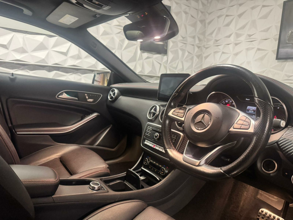 * NEW BRAKE DISCS AND BRAKE PADS FITTED *This 2016 Mercedes Benz A Class A200d AMG Line (Premium Plus) boasts exceptionally low mileage for its age, having covered just 58,257 miles. This Euro 6 compliant model features a 2.1L diesel engine and comes equipped with the desirable Night Package and the AMG Exclusive Package, which includes striking black red cut perforation leather with contrast stitching. Further enhancing its appeal are full LED headlights for superior visibility and rear parking sensors to aid manoeuvrability. The Premium Plus trim also benefits from Keyless Go for effortless entry and starting.The A200d AMG Line offers a compelling blend of performance and efficiency, achieving an impressive 0-62mph in just 8.8 seconds while delivering an outstanding fuel economy of up to 71 mpg, indicating it is more economical than many similar vehicles. Its low insurance group also suggests lower running costs. Furthermore, this Mercedes Benz provides generous boot space, making it a practical choice for everyday use and longer journeys, setting it apart from other cars in its class.. 18in Alloy Wheels - AMG 5-Twin-Spoke Design - Painted in Titanium Grey with a High Sheen Finish, 8-inch Tablet-Style Colour Display, ABS - Anti-Lock Braking System, AMG Bodystyling - Front and Rear Apron, AMG Bodystyling - Side Skirts, ASR - Acceleration Skid Control, ATTENTION Assist, Active Bonnet - Pedestrian Safety Measure which Detects an Impact and Raises Bonnet by 65mm, Active Park Assist with Parktronic, Adaptive Brake Assist with Hold Function and Hill Start Assist, Adaptive Brake Lights, Air Vents with Black Surround - Petrol Green Insert and Cruciform Nozzle, Airbag - Drivers Knee, Airbag - Dual-Stage - Front Passenger, Airbags - Dual-Stage - Driver, Airbags - Head for Driver and Front Passenger, Airbags - Windowbags for Driver and Front Passenger, Alarm System with Interior Protection, Ambient Lighting - 12 Colours, Ambient Lighting - Interior Door Handles, Ambient Lighting in Front and Rear Headrests, Audio 20 Radio-CD-MP3 Compatibility, Auto Dimming Rear View Mirror, Automatic Child Seat Recognition Sensor, BAS - Brake Assist, Beltline Strips - Chrome, Bluetooth, Brake Calipers - Mercedes-Benz Lettering on Front, Brake-Pad Wear Warning Indicator, Brushed Stainless Steel Sports Pedals with Rubber Studs, Bumpers - Body-Coloured, Centre Armrest - Front with Storage, Childproof Locks - Manually Operated for Rear Doors and Electrically Operated for Rear Power Windows, Collision Prevention Assist Plus, Controller on Centre Console with Chrome Surround, Crash Sensor with Emergency Opening Function for Doors, Crash-Responsive Emergency Lighting, Cruise Control with SPEEDTRONIC Variable Speed Limiter, Cup Holder - Twin, Direct Select Gearshift Lever, Door Handles - Body-Coloured, Door Mirrors - Body Coloured, Door Mirrors - Drivers Automatically Dimming, Door Mirrors - Electrically Folding, Door Mirrors - Integrated LED Indicators, Door Sill Panels - Mercedes-Benz Lettering - Illuminated, Dynamic Select with a Choice of Driving Modes - ECO-Comfort-Sport and Individual, ESP - Electronic Stability Programme, ESP Cornering Dynamics Assist, Electric Parking Brake, Electronic Key - Chrome Surround, Exhaust System - Twin Trapezoidal Tailpipes in Polished Stainless Steel, First Aid Kit, Floor Mats - Red Stitched Edging - AMG Lettering, Fluid Level Warning Indicator for Fuel - Oil - Coolant and Washer Fluid, Footwell Lighting - Front and Rear, Four-Way Lumbar Support, Glove Compartment - Illuminated, Headlight Assist - Automatic Headlight Activation, Headlights - Halogen, Headlights - High Beam Assist, Headlights - Integrated Daytime Running Lights, Headlights - Integrated Daytime Running Lights - LED, Headlights - LED, Heated Rear Window with Timer Control, High Level Third Brake Light - LED, ISOFIX and Top-Tether Child Seat Fixing Points in Rear - Two Outer Seats, Illuminated Storage Compartment in Centre Console, Illuminated Vanity Mirrors, Immobiliser, Indicators - Lane Change Function, Instrument Cluster with 4 Analogue Dials and Needles Suspended in Six-o-Clock Position, Integrated Head Restraints, Keyless Go, Light Failure Indicator, Load-Securing Rings in Luggage Compartment, Luggage Compartment Cover, Media Interface, Mercedes Me Connect, Outside Temperature Gauge, Panoramic Sliding Sunroof, Parking Sensor - Front, Parking Sensor - Rear, Pre-Wiring for Garmin Map Pilot Navigation System, Premium Plus Package, Radiator Grille - Diamond with Pins in Chrome and Silver Louvre with Chrome Insert, Radio Aerial Roof Spoiler, Rain-Sensing Windscreen Wipers, Reading Lights - Front and Rear, Rear Seats - Split Folding 1-3 - 2-3, Rear Windscreen Wiper, Remote Central Locking, Reversing Camera with Parking Guidelines - 180 Degree View, Roof Lining - Black, SD Memory Card Slot, Satellite Navigation - Garmin Map Pilot, Seat Belt Reminder - Front and Rear, Seat Comfort Package, Seat Occupancy Sensor - Front Passenger Seat, Seats - Cushion Angle Adjustment for Front, Seats - Front Cushion Length Adjustment, Seats - Front Electrically Ad. Full service history