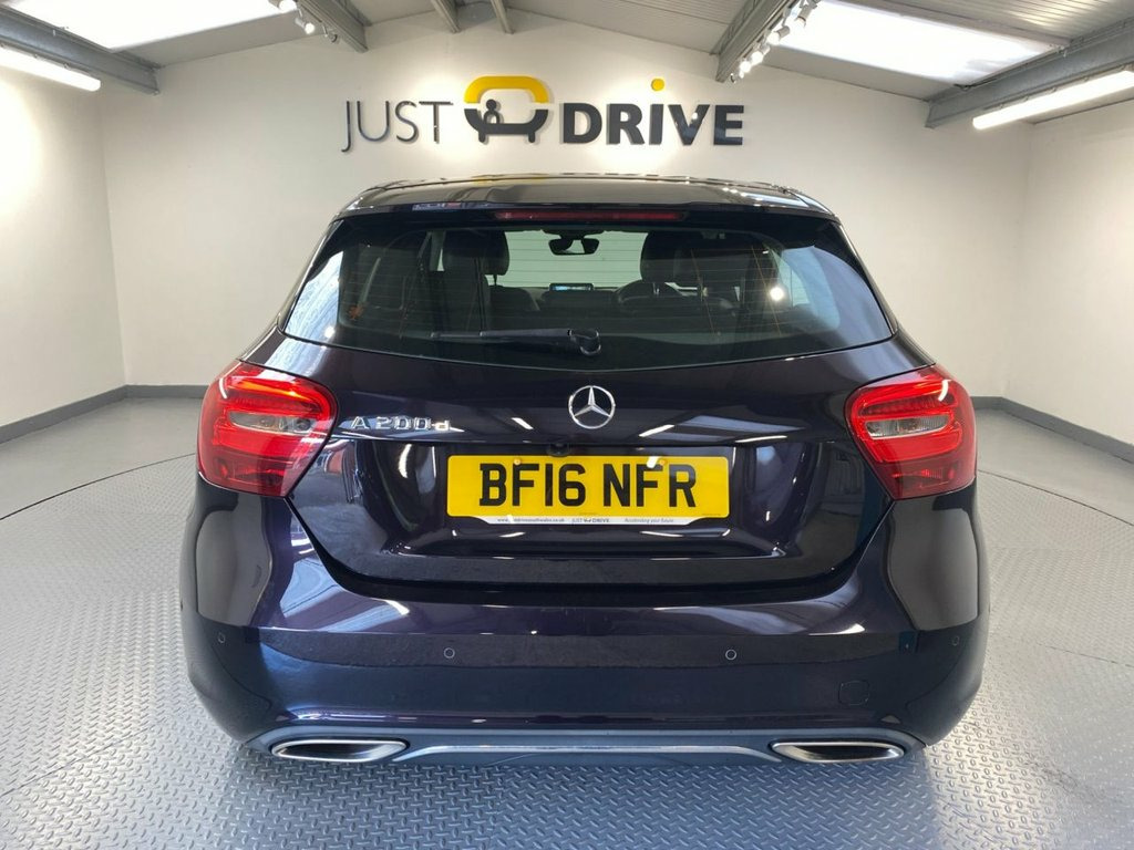This premium hatchback provides a smooth, refined driving experience with wind and road noise almost imperceptible from within the confines of the reassuringly expensive-feeling cabin. It's finished in Northern Lights Violet metallic and comes with 17" alloy wheels together with a high level rear spoiler - it's a classy package. Passenger space and comfort levels are first class with plenty of room for three adults in the rear. The extendable sports seats are trimmed in Artico leather-effect upholstery and have 3-stage electric heating - perfect for the colder weather. The A Class also has navigation, dual zone climate control, front / rear Parktronic with camera, a CD system and automatic headlights. Audio and Bluetooth phone connection are easily accessed via the leather multi-function steering wheel. It's highly economical too with the reliable 2.1 diesel engine capable of up to 78 mpg and annual road tax is just £35. The mileage is very sensible for a 2016 model at just over 71,000 and this is backed up with detailed service history. 12V Socket, 12V Socket in Luggage Compartment, 17in Alloy Wheels - 5-Twin-Spoke Design, 8-inch Frameless Tablet-style Colour Dis, ABS - Anti-Lock Braking System with BAS , ATTENTION Assist, Active Bonnet - Pedestrian Safety Measur, Active Braking Assist, Adaptive Brake Assist with Hold Function, Adaptive Brake Lights, Air Vents with Surround and Cruciform No, Airbags - Dual Stage - Driver and Front , Airbags - Head and Sidebags - Driver and, Airbags - Windowbags for Driver and Fron, Alarm System with Immobiliser and Interi, Audio 20 Radio-CD-MP3 Compatibility, Automatic Child Seat Recognition Sensor, Beltline Strips - Chrome, Bodystyling - Side Skirts - Body-Coloure, Brake-Pad Wear Warning I