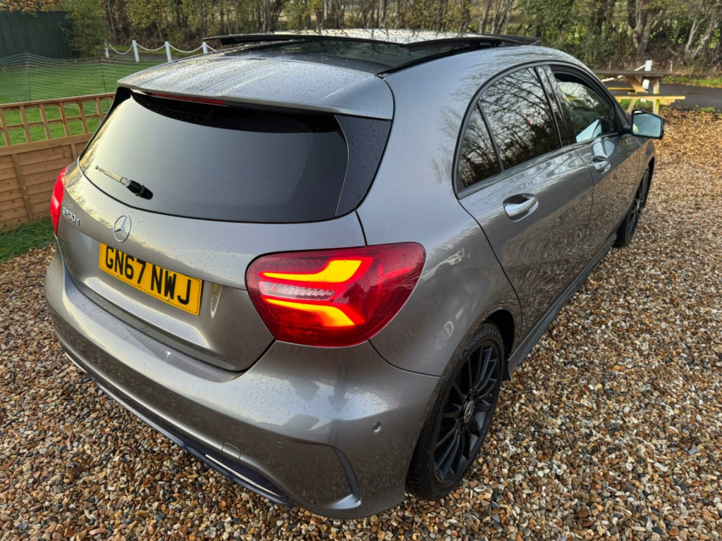 In Mountain grey metallic, this 2017 Mercedes-Benz A Class A200d WhiteArt (Premium Plus) boasts a clear vehicle history, offering you peace of mind. Comes with service history including 6 services recorded on the Mercedes digital service record and an up to date service by ourselves. October 2026 mot. This stylish hatchback features a 2.1L Euro 6 diesel engine, delivering an impressive 0-62mph in just 8.8 seconds. The Premium Plus Package enhances your driving experience with LED headlights, keyless entry, and a panoramic opening sunroof. Inside, you'll find heated front seats with memory function, dual zone climate control, and smartphone integration for both Android Auto and Apple CarPlay, all managed through the Audio 20 radio system with Bluetooth connectivity.This A Class WhiteArt stands out with its exceptional fuel economy, achieving a remarkable 71 mpg, which is significantly better than many other vehicles in its class. Its low CO2 emissions and low insurance group further contribute to its cost effectiveness. You'll also appreciate the generous boot space, making it practical for everyday use and longer journeys. These highlights demonstrate how this Mercedes-Benz A Class offers a superior combination of performance, efficiency, and comfort. tico leather-dinamica microfibre - black with grey stitching and grey-white stripes, dab digital radio tuner, abs - anti-lock braking system with bas - brake assist, amg bodystyling - front and rear apron and side skirts, artico leather upper dash trim with crystal grey contrast stitching, attention assist, active bonnet - pedestrian safety measure which detects an impact and raises bonnet by 65mm, active braking assist, adaptive brake assist with hold function and hill start assist, adaptive brake lights, airbags - dual stage - driver and front passenger, airbags - head and sidebags - driver and front passenger, airbags - windowbags for driver and front passenger, alarm system with immobiliser and interior protection - thatcham category 1, ambient lighting - 12 colours, ambient lighting in headrests and interior door handles, armrest in the doors and centre console with crystal grey contrast stitching, audio 20 radio-cd-mp3 compatibility, auto dimming rear view mirror, automatic child seat recognition sensor, bodystyling - side skirts - body-coloured, brake calipers - mercedes-benz lettering on front, brake-pad wear warning indicator, brushed stainless steel sports pedals with rubber studs, bumpers - body coloured, centre armrest - front with stowage, childproof locks - manually operated for rear doors and electrically operated for rear power windows, controller on centre console with chrome surround, crash-responsive emergency lighting, cruise control with limiter, cup holder - double - front, direct select shift lever with steering wheel shift paddles, direction indicators with lane-changer function, door handles - body coloured, door mirrors - electrically folding and auto-dimming on drivers side, door mirrors - mirror housing in body-colour, drivers kneebag, dynamic select with a choice of driving modes - eco-comfort-sport and individual, esp - electronic stability programme with asr - acceleration skid control, esp cornering dynamics assist, electric parking brake, electric windows - 4, electronic key - chrome surround, exhaust system - twin trapezoidal tailpipes in polished stainless steel, first aid kit and warning triangle, floor mats with edition lettering and edging in crystal grey, fluid level warning indicator for fuel - oil - coolant and washer fluid, footwell lighting - front and rear, garmin map pilot navigation system, glass - rear windscreen - heated with timer control, glove compartment - illuminated, headlamp assist - automatic headlamp activation, heated front seats, high level third brake light - led, isofix and top-tether child seat fixing points in rear - two outer seats, illuminated front door sills with mercedes-benz lettering, illumination - storage compartment, instrument cluster with four analogue dials and needles suspended in six-o-clock position, keyless-go starting function, led high performance headlights with integrated led daytime running lights and high beam assist, light failure indicator, lighting in stowage compartment and vanity mirrors, luggage compartment cover, media display - 8in, media interface, mercedes connect me, night package, outside temperature gauge, parking pilot, part led tail lights, power steering - sports direct steer system with speed sensitive servo assistance, premium plus package, privacy glass, radiator grille - diamond with pins in chrome and silver louvre with chrome insert, radio aerial roof spoiler, rain-sensing windscreen wipers with two sensitivity settings, reading lights and console light in front and rear, rear fog light, rear seats - split folding 1-3 2-3, rear view mirror - additional lighting, rear windscreen wiper, remote central locking and crash sensor with emergency opening function, reversing camera with parking guidelines - 180 degree view, roof lining - black, seat belts - rear three-point - 3, seat belts reminder - front and rear, seat comfort package, seat occupancy sensor - front passenger seat, seatbelts in black with white highlight stripes, seats - front cushion length adjustment, seats - front manually adjustable, service indicator assyst, smartphone integration, sports seats with integrated head restraints, steering column - manually adjustable for height and reach, steering wheel - 3-spoke multi-function - trimmed in leather with perforated leather in grip area and flattened bottom section, storage compartment beneath load compartment floor, suspension - comfort - lowered by 20mm front and 15mm rear, thermotronic luxury automatic climate control - two-zone with display, tirefit tyre-sealant kit, trim - aluminium with trapeze cut, trip computer in multi-function display, tyre pressure monitoring system