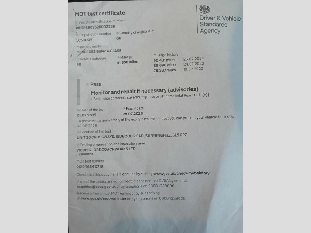 For sale is a 2003 Mercedes-Benz A Class 2.1 A210 Evolution SWB Hatchback with 91000 miles on the clock. This petrol vehicle comes with a MOT that is valid until 25/07/2026. It has 5 doors and 5 seats, making it a practical choice for families or those in need of extra space. The automatic transmission and 140 bhp engine make for a smooth and enjoyable driving experience, while emitting 197 g/km of CO2. With its compact hatchback design, this car is ideal for navigating city streets and tight spaces, while still offering ample room for passengers and cargo. Don't miss out on this reliable and versatile vehicle.