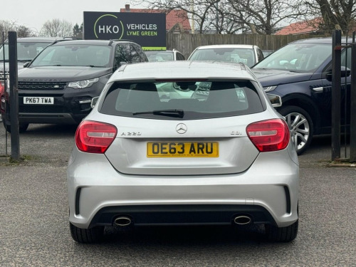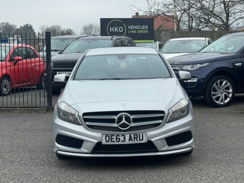 Welcome to HKO Vehicles Lyme Green ? we are pleased to offer this stylish and well-maintained 2014 Mercedes-Benz A Class A220 CDI AMG Sport, finished in elegant silver and presented in excellent condition. This premium hatchback combines sporty AMG styling with comfort, efficiency, and Mercedes-Benz engineering, making it a great all-rounder. This vehicle has covered 80,000 miles and has had four owners. Powered by the strong and efficient 2.1 CDI diesel engine, paired with the smooth 7G-DCT automatic transmission, it delivers responsive performance with impressive fuel economy. The vehicle is also ULEZ compliant, making it suitable for city driving without additional charges. As the desirable AMG Sport specification, this A Class comes with a high level of factory equipment, including: ? AMG Sport exterior styling ? AMG alloy wheels ? AMG sports interior with half leather trim ? Sports seats ? Satellite navigation system ? Colour infotainment display ? Bluetooth connectivity ? Cruise control and speed limiter ? Climate control ? Paddle shift steering wheel ? Automatic headlights and wipers ? LED daytime running lights This vehicle will be supplied with a 12 Months MOT and includes a 3 Months Warranty for added peace of mind. We are proud to be an AA Approved Dealer, ensuring all vehicles are fully inspected and prepared to the highest standard before sale. Finance is available ? please apply via our website or contact our friendly sales team on (01260) 54494 ABS - Anti-Lock Braking System, ASR - Acceleration Skid Control, ATTENTION Assist, Air Conditioning, Air Vents with Chrome Surround and Cruci, Audio 20 Radio-CD, Automatic Child Seat Recognition Sensor, BAS - Brake Assist, Beltline Strips - Chrome, Centre Armrest - Front with Storage, Childproof Locks - Manually Operated for, Collision Prevention Assist, Controller on Centre Console with Chrome, Crash-Responsive Emergency Lighting, Cruise Control with SPEEDTRONIC Variable, Cup Holder - Twin, ESP - Electronic Stability Programme, Electric Parking Brake, First Aid Kit, Gear Shift Trimmed in Leather, High Level Third Brake Light - LED, Illuminated Headrests on Driver and Fron, Immobiliser, Ligh
